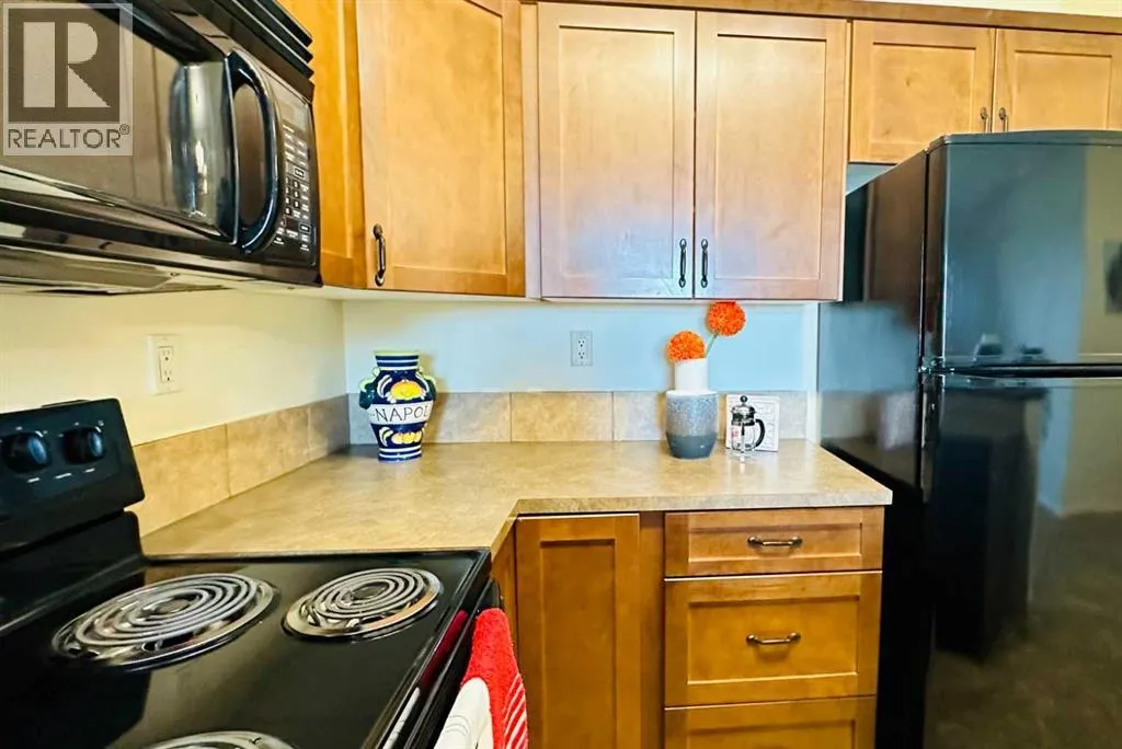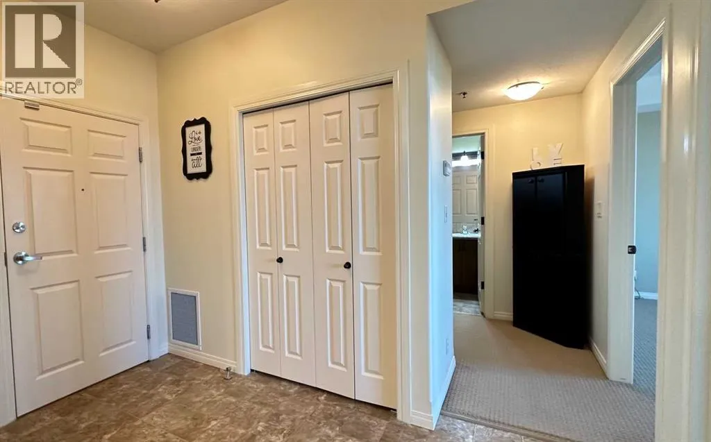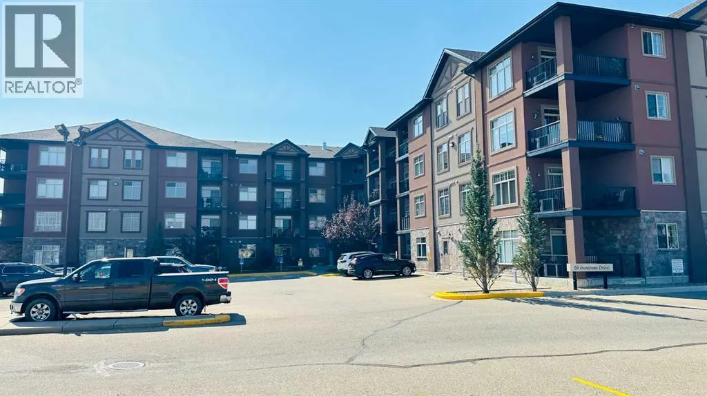 Price reduced for quick sale. Step inside and be impressed! This bright and inviting condo offers a warm and move-in ready feel. The unit is part of a well-cared-for complex in the desirable Ironstone community in southeast Red Deer, known for its quiet surroundings, safe environment, and excellent accessibility.The open-concept layout creates a natural flow between the living, dining, and kitchen areas, making the space both functional and welcoming. The kitchen features a raised eating bar and generous cabinet storage, perfect for easy meal prep or casual gatherings. The living room is filled with natural light from large patio doors that open onto a west-facing balconyâan ideal place to relax at sunset or enjoy a quiet moment outdoors.Both bedrooms are generously sized with ample closet space, complemented by a full four-piece bathroom and convenient in-suite laundry with stacking washer and dryer. Extra storage is also included, ensuring daily life stays organized and clutter-free.Comfort is built into every detail: central A/C keeps you cool through the summer, while heated underground parking makes winter living effortless. The building is pet-friendly (with Board approval), offering flexibility for pet owners.The location adds to the appeal, with shopping, schools, and the Collicutt Centre all close by, making errands, recreation, and community life easy and convenient.This home combines comfort, security, and lifestyle in one beautiful package. Donât miss the chance to make it yours! (id:27476)