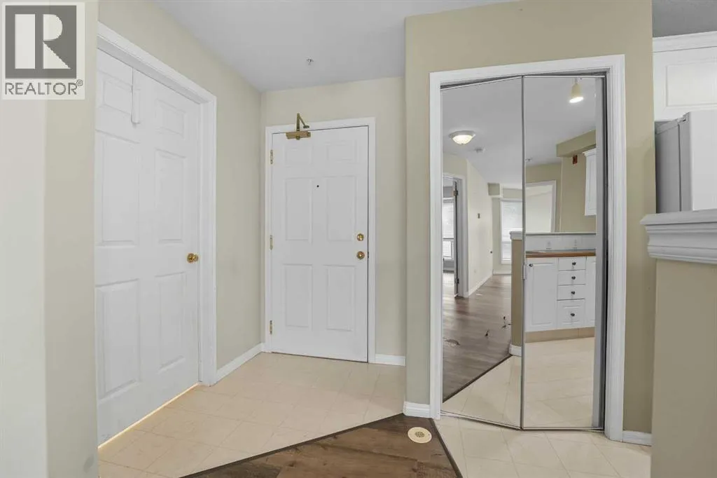 Beautifully maintained 2 bedroom, 2 bathroom condo in the desirable 55+ Montfort Heights building. This second-floor unit features an open-concept layout, a cozy fireplace, in-suite laundry, and a spacious kitchen. The primary bedroom includes a walk-in closet and 3-piece ensuite, while the second bedroom offers its own walk-in closet and large windowâideal as a guest room or home office. Enjoy over 400 sq ft of private outdoor space on the expansive balcony, perfect for relaxing or entertaining. This unit also comes with a separately titled detached garage, offering secure parking and storage. Residents enjoy access to excellent amenities including a gym, party room, and rentable guest suite. Centrally located near shopping, walking trails, restaurants, and public transit. Condo living with space, comfort, and convenienceâdonât miss out! (id:27476)