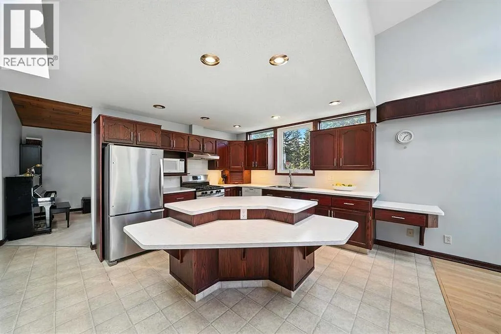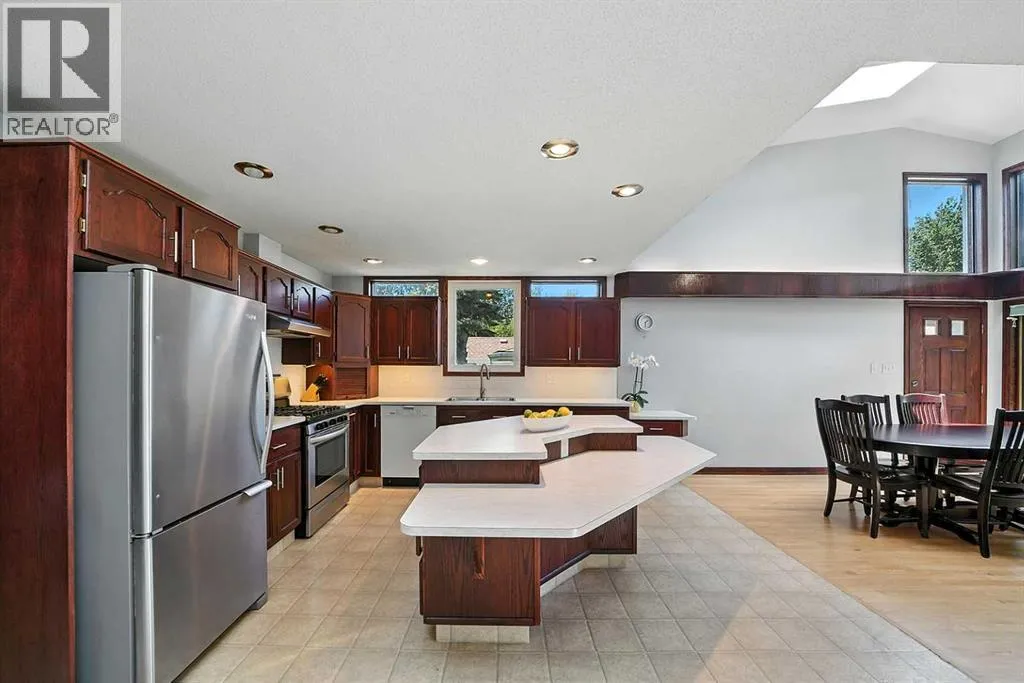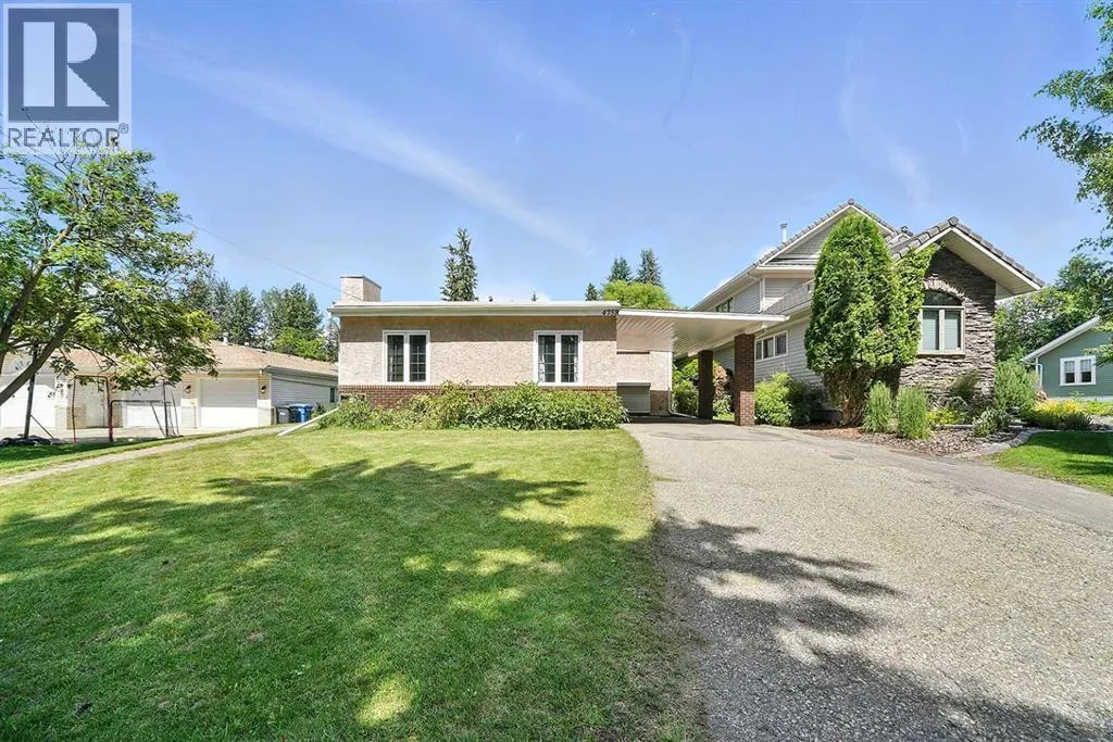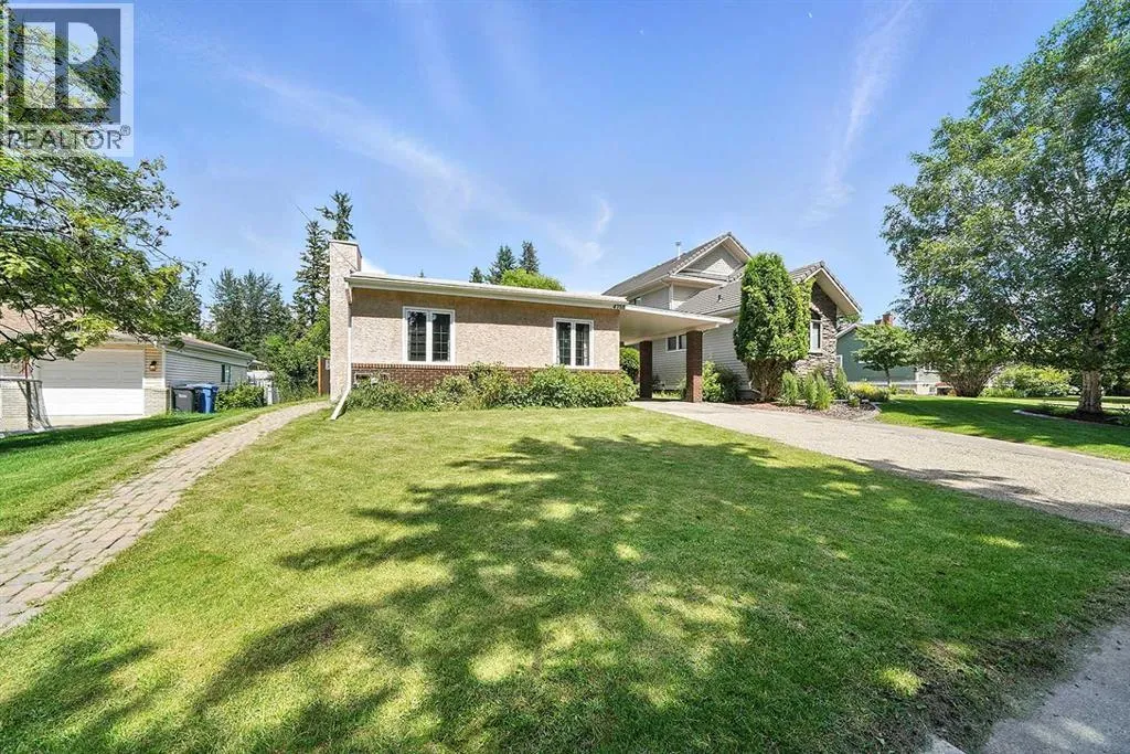Located in a serene and secure community, this home offers a TRUE SENSE OF BELONGING~ where neighbors know each other, kids play freely, and life moves at just the right pace! Nestled just off the banks of the Red Deer River, and just minutes from downtown amenities, it is perfect blend of peaceful living and EVERYDAY CONVENIENCE! Imagine living in a location that is conveniently located in the heart of our city~ and steps to Waskasoo trails and parks! This OVER-SIZED 250ft deep lot has plenty to offer a growing family, from incredible privacy and 2 sheds for storage, to having your own space for gardening! This floor plan is truly one of a kind, and a very rare find. Homes in this area rarely become available. The spacious front entrance features a closet, new lockers with storage and a skylight,. Other great features include: upgraded kitchen with lots of counter space, huge island, cherry stained cabinets, and a large walk-in pantry. The dining boasts soaring high ceilings, with massive windows overlooking the mature backyard. The main floor also has an office and a cozy formal living room featuring a gas fireplace, perfect for cold winter nights. Step upstairs where there are two bedrooms, and a four-piece bathroom. The primary bedroom is located at the back, with a cheater door to the bathroom and features his/her closets and your very own PRIVATE BALCONY. The third level has another bedroom, bathroom, and large family room. Outside metal roller shades offer additional privacy, security, as well as black-out options for family movie night and the perfect nightâs sleep! Basement has a home gym/flex room, laundry, and plenty of storage. Upgraded furnace, hot water on demand, and permanent membrane roof. Pride of ownership is very evident inside and out, no pets and no smoking home. Get excited about living in the city on a third of an acre, no neighbors behind you ever. A remarkable location awaits its new family. This home and LOCATION is very DESIRABLE, complet ely turnkey and QUICK possession. (id:27476)
