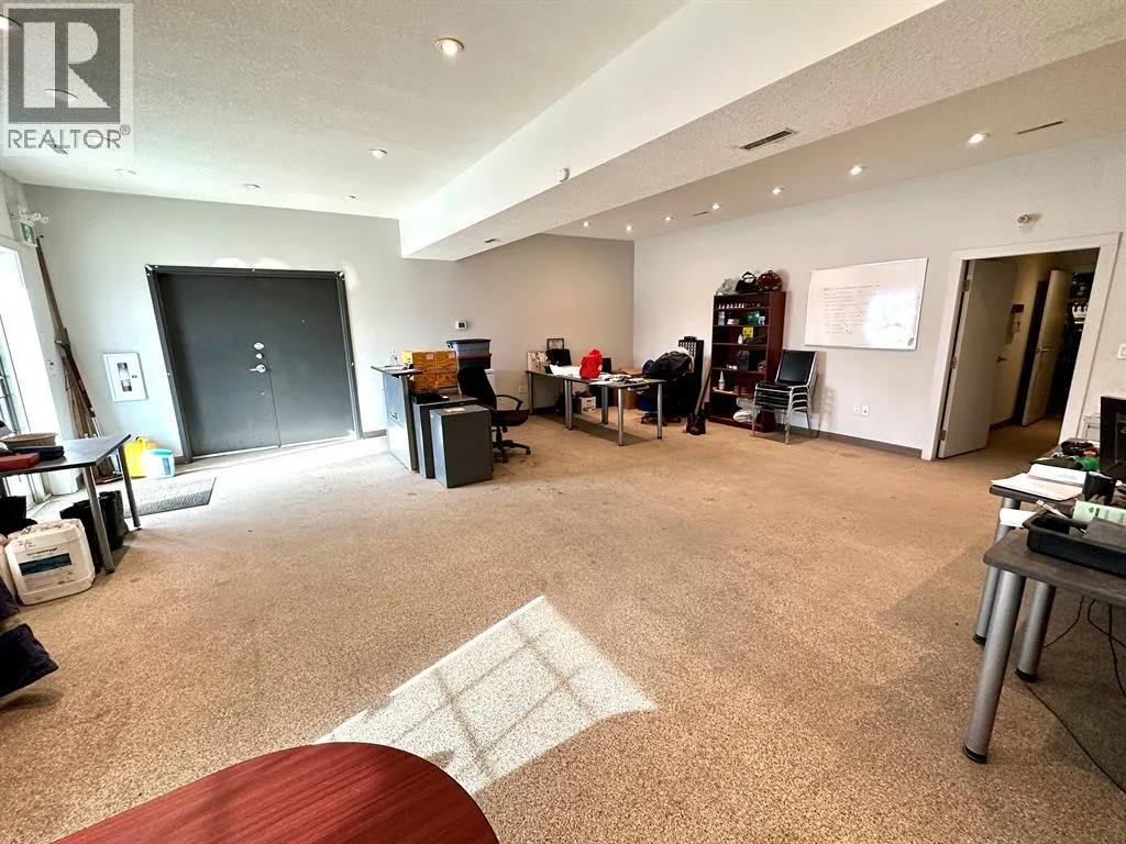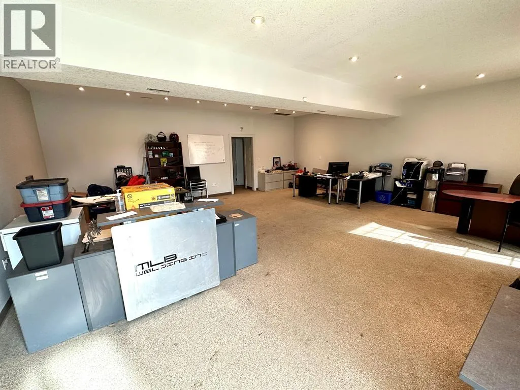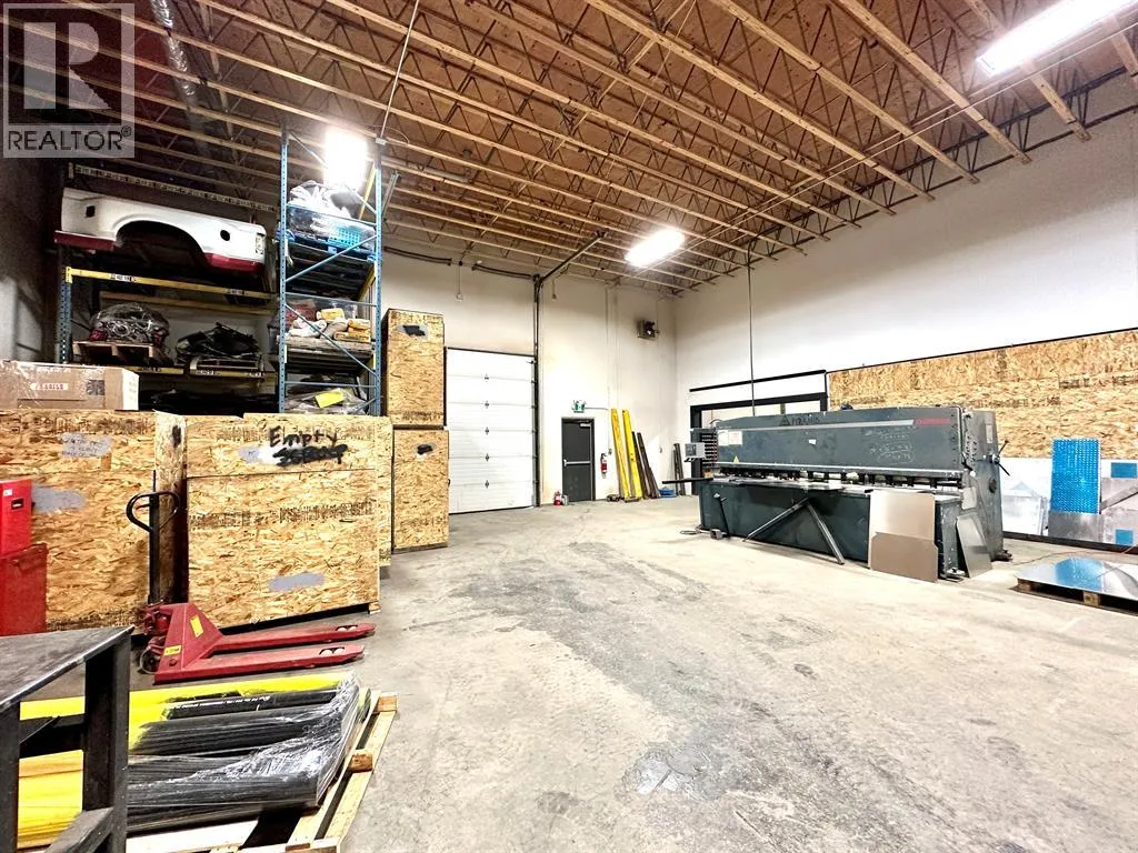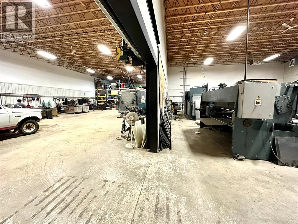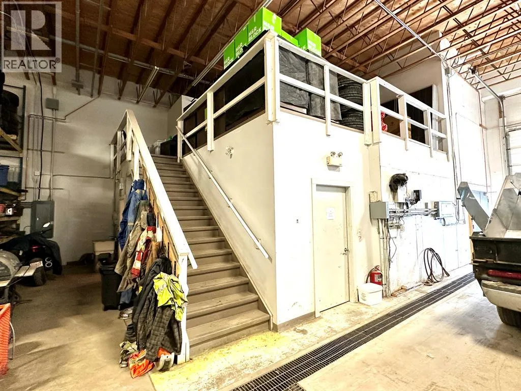 COMPLETELY RENOVATED SHOP/ OFFICE SPACE in Riverside Light Industrial Park. The bay 5 (5,178 sq ft) and a part of the back of bay 6 (2,454 sq ft) is comprised of a total of 7,632 SF on the main shop, office space that includes a reception area, office, storage room and a total of three washrooms and 6700+/- sq ft of total shop space. There is one 14' high overhead door at the front, two additional 12' OHD's at the rear, a dual compartment sump w/ oil separator and grating for floor drains, lots of paved parking out front with newer asphalt. secured yard space around the back/ side. In addition, there's a 510 SF developed, mezzanine, that includes an open space, two offices for staff room, kitchen area or just more office space and another washroom w/ shower. This condo bay is perfect for any Fabrication, mechanic or Tradesman (plumbing, electrical or auto body shop. Loads of power and 220v plugs everywhere, air/ water lines plumbed in throughout, Overhead Resnor shop heaters, roof-top HVAC units for office heat/ AC. Additional rent of $3.75 for the 2025 budget year. (id:27476)