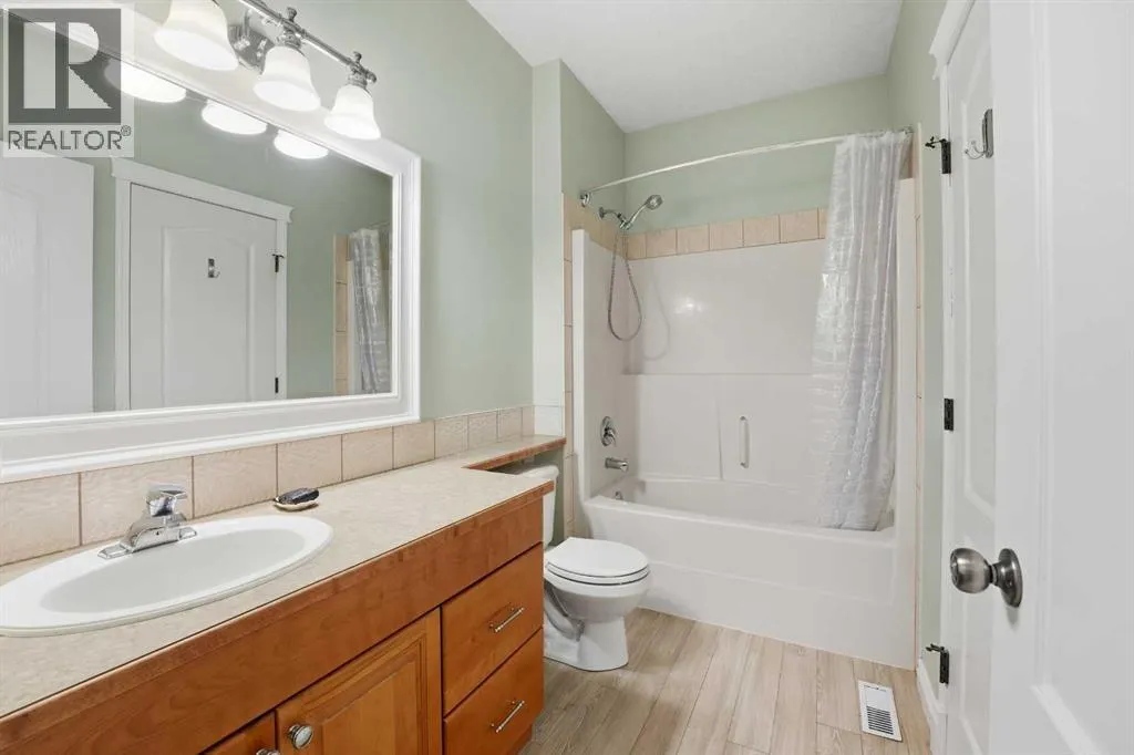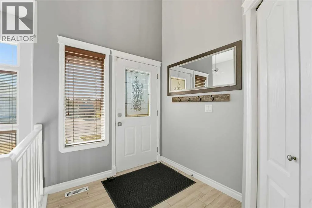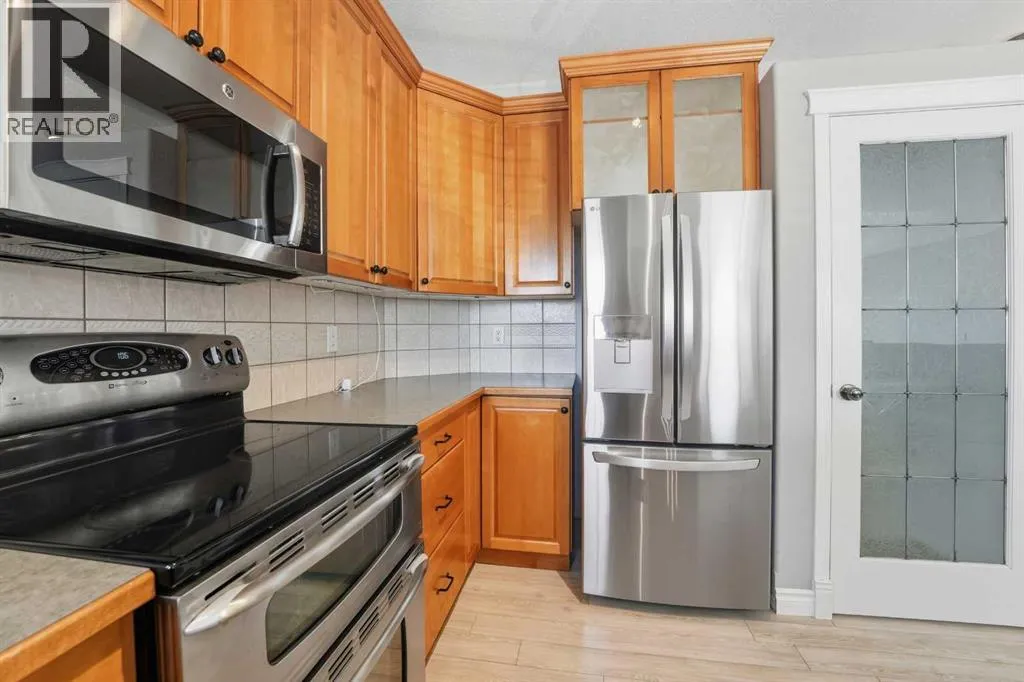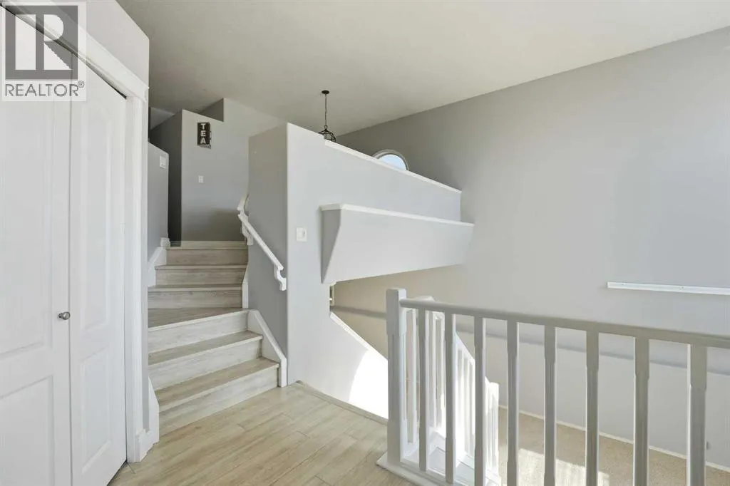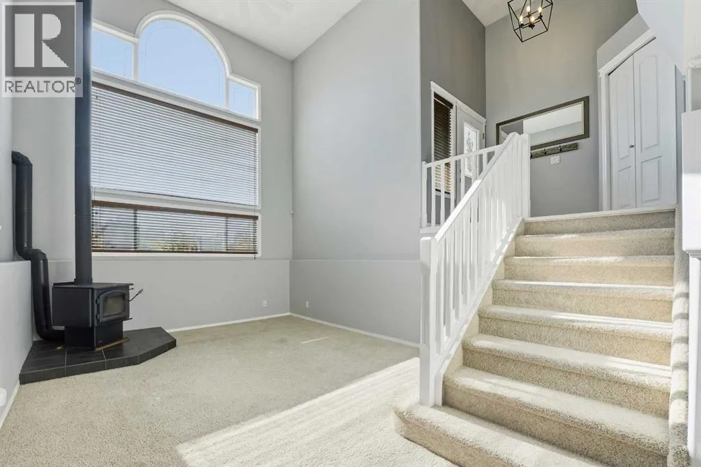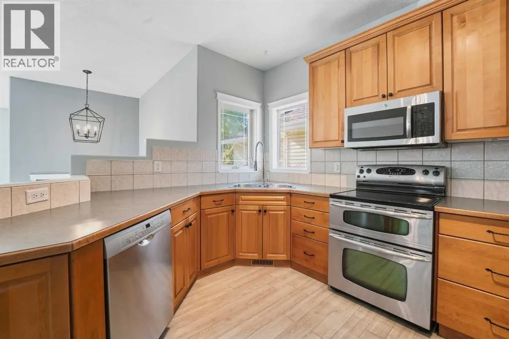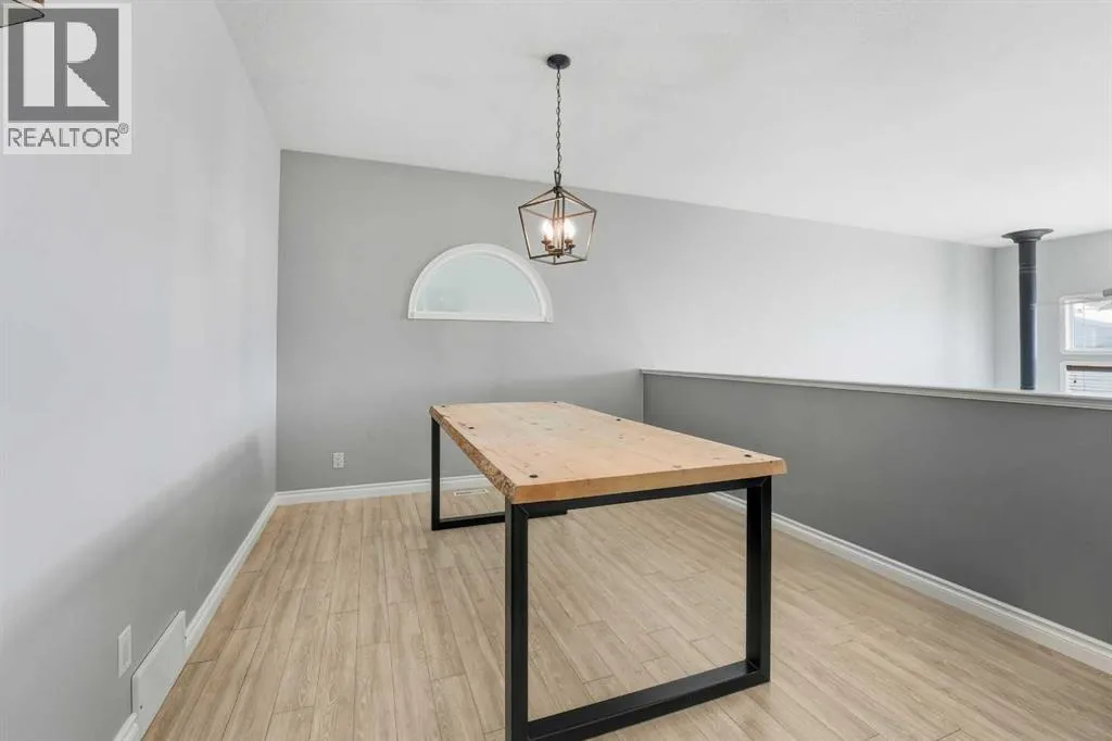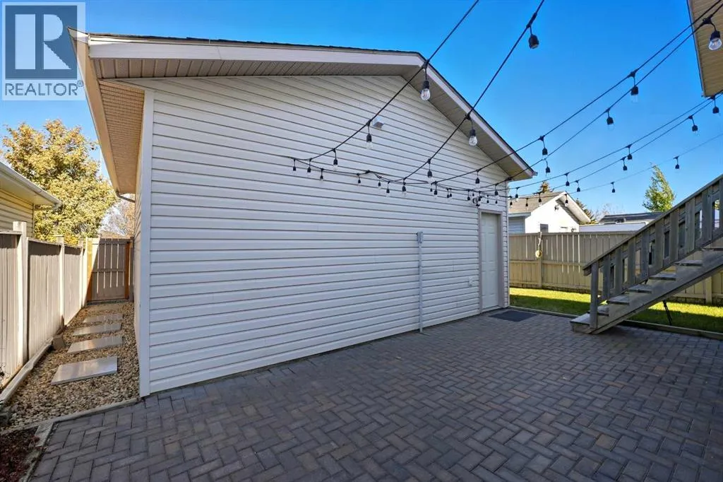 A fully developed bi-level with 2024 square feet of developed space and a detached double car garage on a crescent facing a green space. The curb appeal is accented by the large front windows and covered front porch. The entryway greets you to the unique open style floor plan that is flooded with natural light. Maple kitchen cabinets are accented by crown mouldings, full tile backsplash, stainless steel appliances (nw fridge), pot/pan drawers, some decorative glass front cabinets and a pantry. The large eating area is lofted down to the lower level. There are 2 bedrooms upstairs both with shiplap feature walls. The primary bedroom has a cheater door to the 4 piece bathroom. The basement boasts a family room with a wood burning stove (wett inspection from 2017) that is open to the upper floor and towering stacked windows. There is a games room, a 3rd bedroom, a 4 piece bathroom and a utility room that has a storage area and laundry. The yard features a covered deck with storage underneath, a unistone patio with patio lights strung above, a garden area & a detached double car garage that has a new garage door opener and 220V wiring. The shingles were replaced in August 2025 on the house and garage with 50 year shingles. The large front window is on order to be replaced and the glass in the window with the broken seal above the kitchen sink is also ordered to be replaced. The carpets were all just professionally steam cleaned. A fantastic location on a crescent across from a greenspace and park. (id:27476)