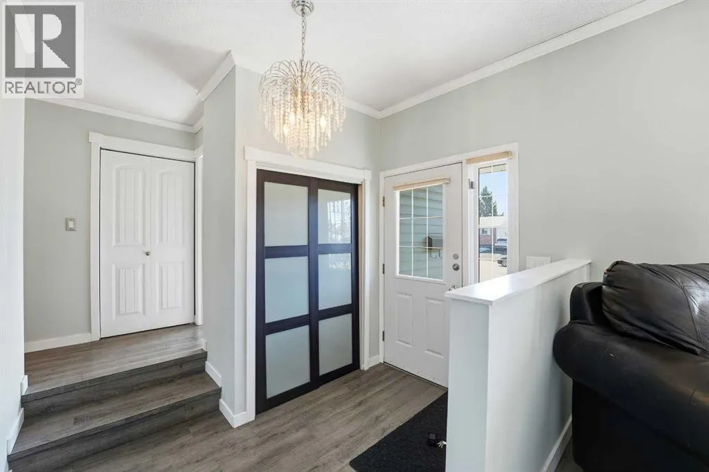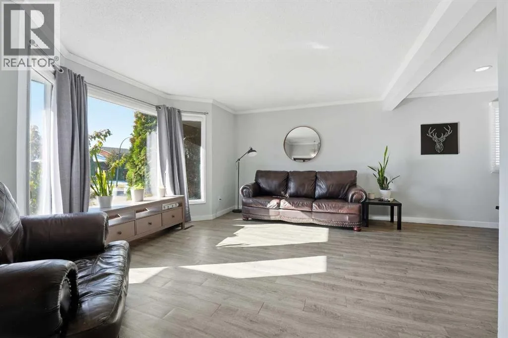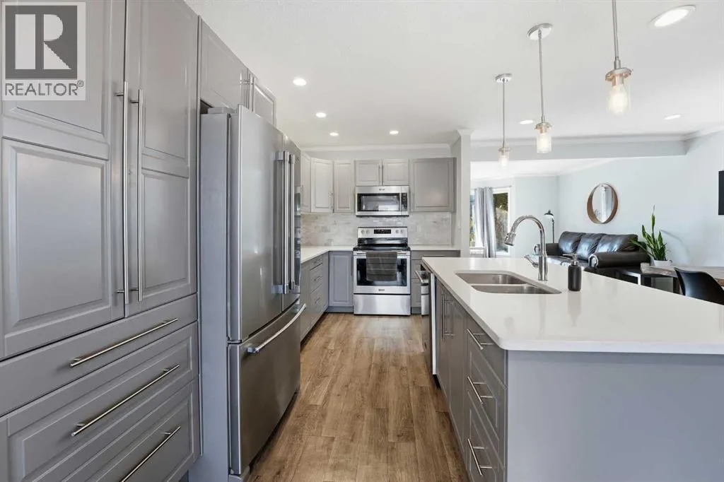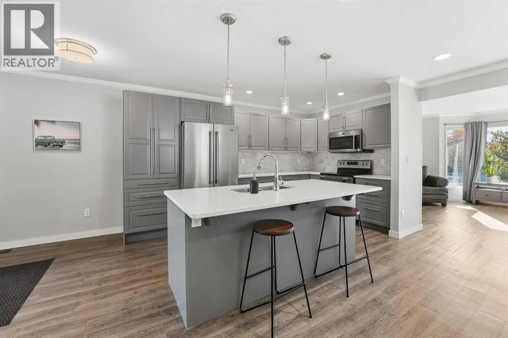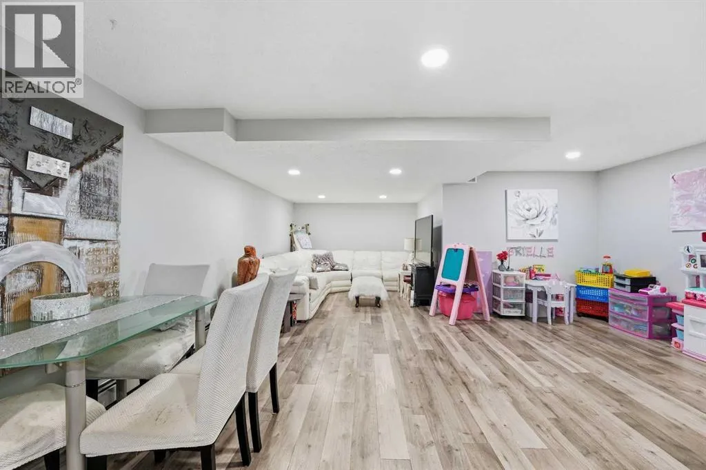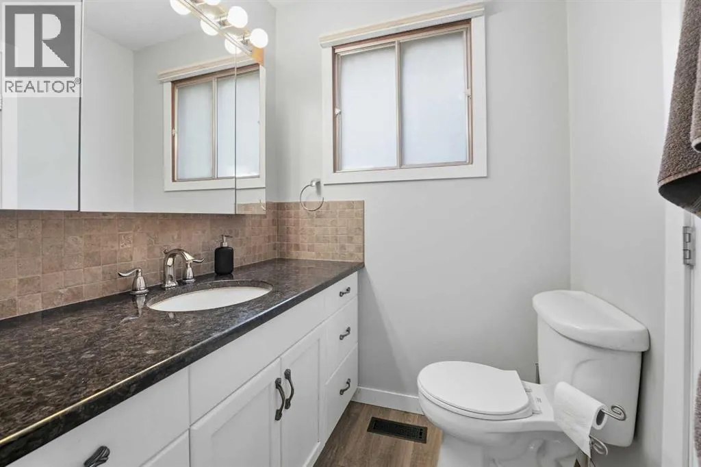 A legally suited home in Bower! The curb appeal is accented by the dark vinyl siding. The front entryway greets you to the living room that has vinyl plank flooring that runs through to the dining room. Newer (2019-2020) grey toned soft close kitchen cabinets are complemented by quartz countertops, stainless steel appliances, pantry style cupboards, full tile backsplash, an island eating bar and patio doors out to the back deck. There is a family room with a wood burning fireplace featuring a painted brick surround. The primary bedroom has his/hers closets, a fan, a vinyl window and a 3 piece ensuite with granite countertops. There are 2 additional bedrooms and a 4 piece bathroom with granite countertops. There is a back entryway that leads to the basement with a shared laundry area. The legal suite has a large family room, a games area, a dining room, a kitchen with white cabinets & stainless steel appliances, 2 bedrooms and a 4 piece bathroom with a furniture style vanity. The fully landscaped yard is fenced, has a double car garage & additional parking. A fantastic location minutes from walking trails, parks and amenities. Most interior renovations including the suite were done between 2018-2020. (id:27476)
