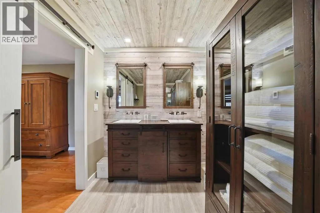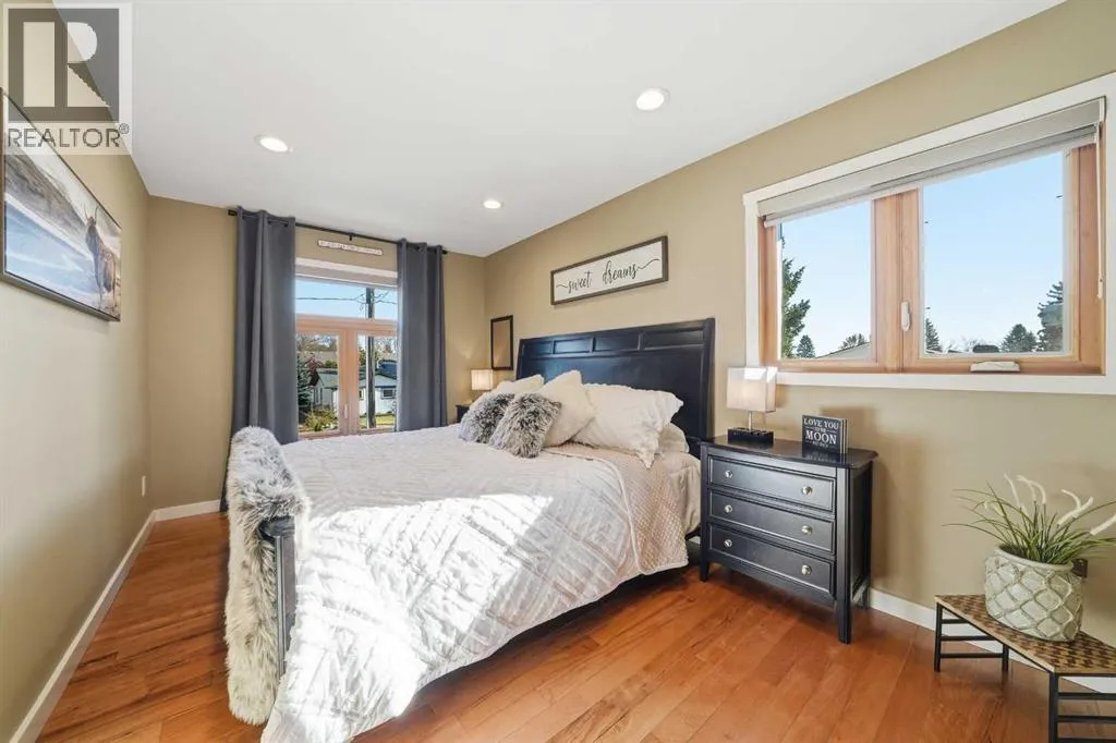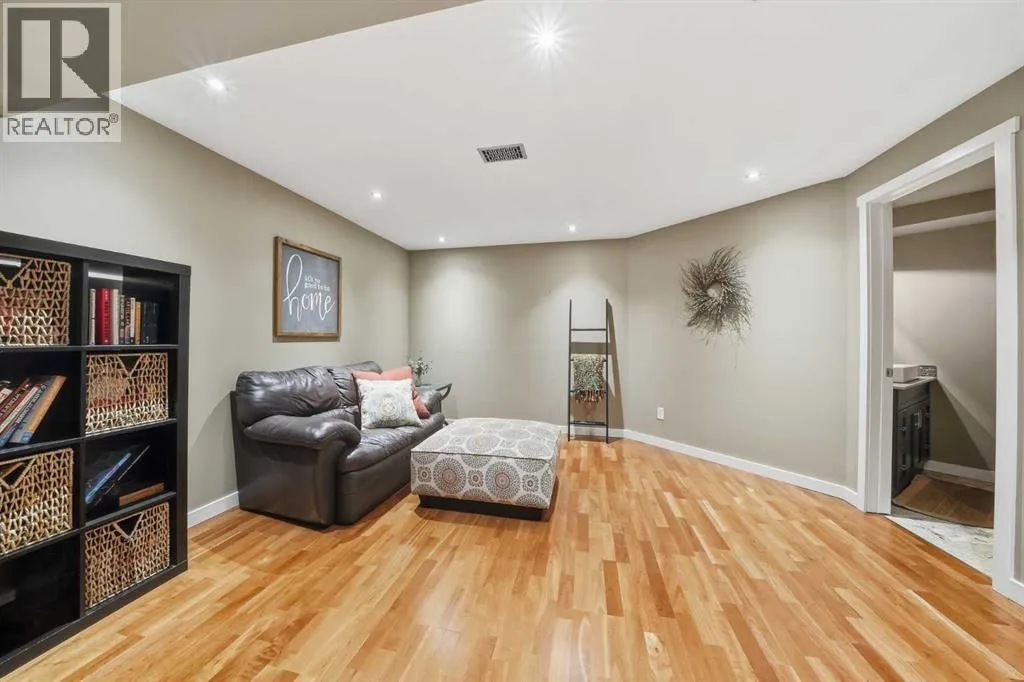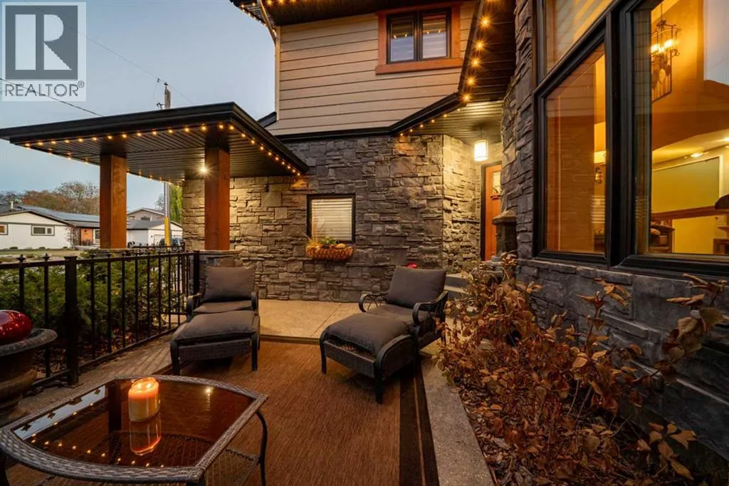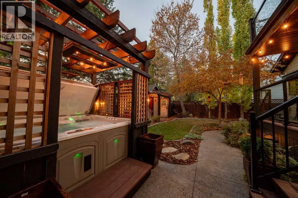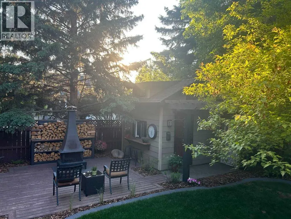 Immaculate 1 1/2 storey in the sought-after Mountview area. Close to schools and the Waskasoo recreation & trail system. This home offers luxury modern amenities and privacy. Fully developed with a gorgeous kitchen with plenty of alder cabinets, quartz countertops, eating bar, wall oven, built-in cooktop and stainless steel appliances. Dining area is a large size, big enough to fit a family-size table and a gas fireplace with a rustic log mantle & custom bookshelves on both sides & patio doors to a covered deck for outdoor cooking, a lower patio space and a pergola that surrounds the hot tub. Custom shed with lots of storage. This is all surrounded by numerous mature trees and beautiful outdoor lighting, custom concrete work in the private front patio area and back has been updated as well. Main floor laundry with cupboards and coat hooks/ cubbies for extra storage. Another 2pc bathroom is on the main floor. The updates continue throughout the home. Upstairs has 2 large bedrooms with walk-in closets and custom shelving, a 4pc bath with heated tile floor & quartz counters with a soaker tub. The primary bedroom is king sized with garden doors to its private maintenance-free deck, a walk in closet, spa-like ensuite with custom tiled shower, sun tunnel for extra natural lighting, a built-in armoire closet, dual vanities & heated tile floor. The basement is fully developed with a large family room with surround sound & a gas fireplace, a workout room , and a 3pc bath with heated tile floor. More upgrades include, heated garage with storage cupboards, HE furnace & hot water tank, Pure Air Purification System, solid wood doors, custom window coverings (including remote control), Gemstone lighting, new maintenance-free eavestroughs, Hardie Board siding, beautiful stone work and a custom wrought iron gate in the front. A Must See ! (id:27476)