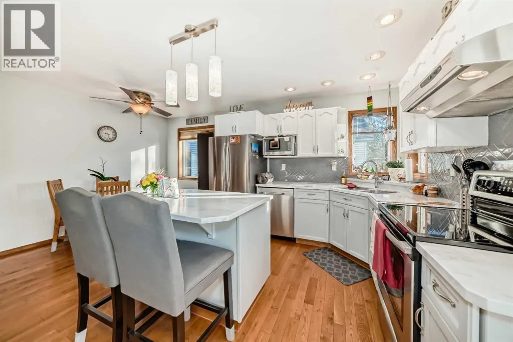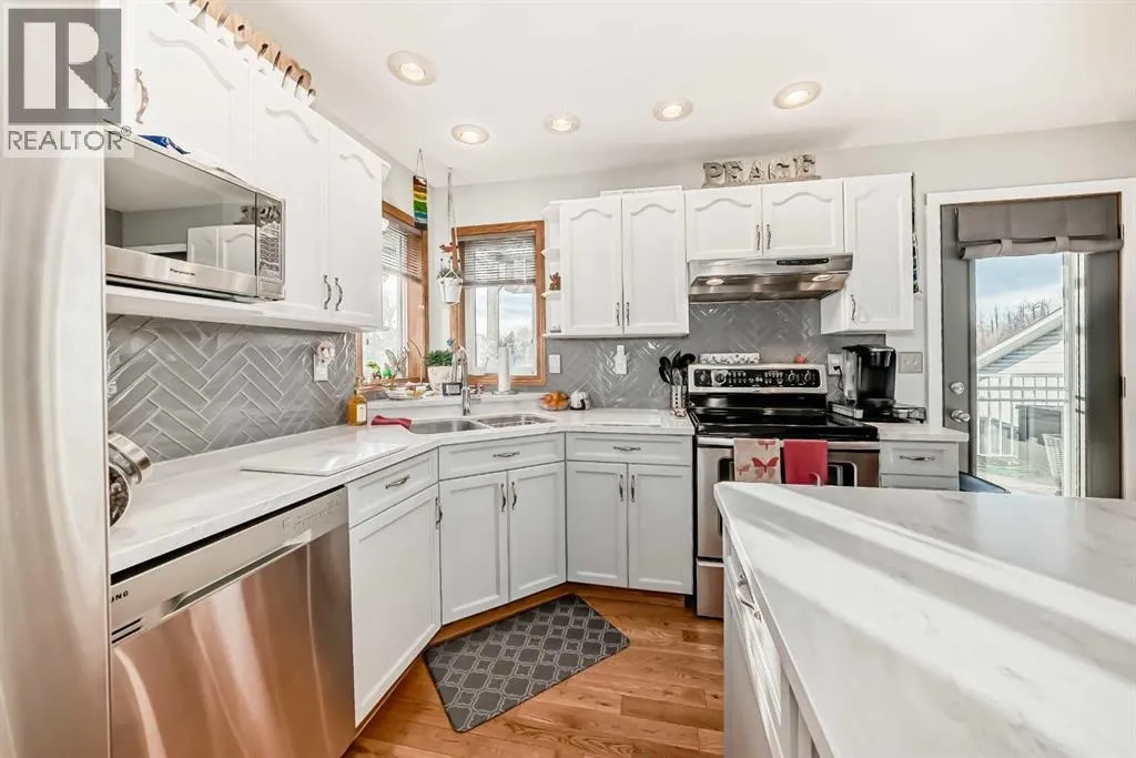 Well kept and ready to move in. This is the perfect home for a growing family. Located just steps from a school and large playground. Features include stainless steel appliances, corian counter tops, beautiful hardwood flooring throughout, and a fully developed basement. The primary bedroom is spacious and includes a 3 piece ensuite and a door leading to the rear deck. The basement has a great family room for entertaining, 2 more bedrooms, a full bathroom, storage, and a laundry room. The front entrance is adorned by a covered patio great for morning relaxation. Around the back there's a large south facing deck with a gazebo and a insulated double garage. This home has been very well cared for and is truly move in ready. (id:27476)