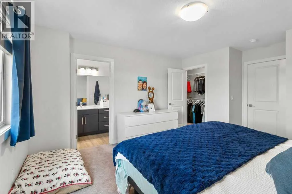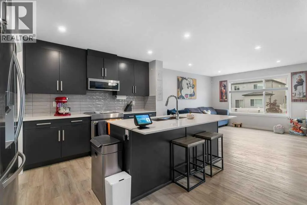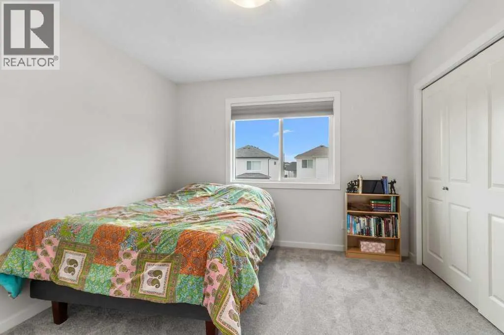 Welcome to this beautifully finished semi-detached duplex built by Bedrock Homes, perfectly situated on a quiet close in the desirable Evergreen community. This modern home offers an inviting open-concept layout filled with natural light from the many large windows and comes complete with window coverings throughout. The stunning kitchen features quartz countertops, a central island, custom modern cabinetry, an induction stove, and a walk-in pantryâideal for both everyday living and entertaining. The spacious living room impresses with its high ceilings and an electric fireplace, while the adjacent dining area offers direct access to the back deck. The main floor also includes a boot room area and a convenient half bath, adding practicality and style to the homeâs design. Upstairs, youâll find a well-designed layout featuring four bedrooms, including a spacious primary suite with a walk-in closet and a private three-piece ensuite bathroom. The additional bedrooms share a four-piece bathroom, while a bonus room and a laundry room on the second floor add to the homeâs functionality and appeal. The professionally finished basement expands your living space even further, featuring a large family room with a TV area, a spacious bar with cabinetry, and a bedroom perfect for guests. The 4 piece bathroom showcases custom cabinetry and beautiful tilework, adding a touch of modern luxury to this inviting lower level. Every detail has been thoughtfully designed to create a warm and functional space for relaxation or entertaining. The exterior is just as impressive with a south-facing backyard thatâs been professionally landscaped and includes garden boxes, a sunshade pergola, gemstone lighting, and smart exterior lighting controlled by an app. Enjoy summer evenings on the back deck or unwind in your fully fenced yard. The home also features vinyl siding with stone accents, a double attached garage, and a paved driveway. Located close to playgrounds, schools, shopping, and an e xtensive network of walking and biking paths, this property offers the perfect blend of style, comfort, and convenience in one of the cityâs most sought-after neighborhoods. (id:27476)