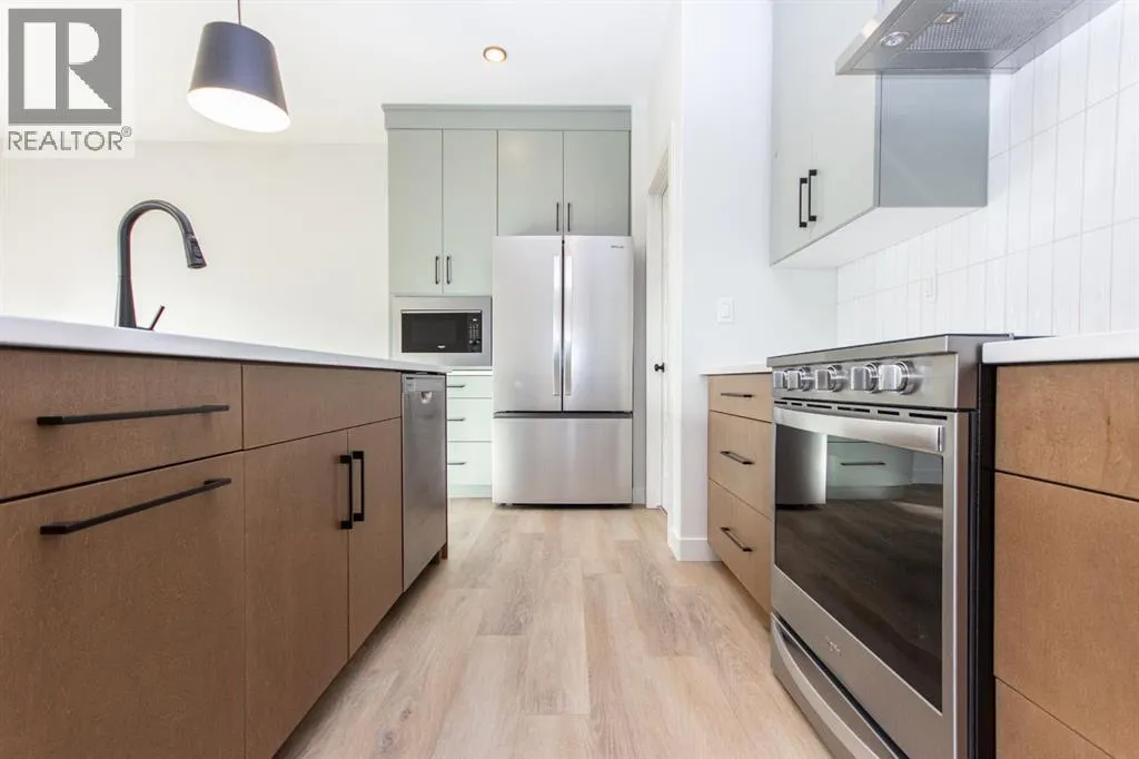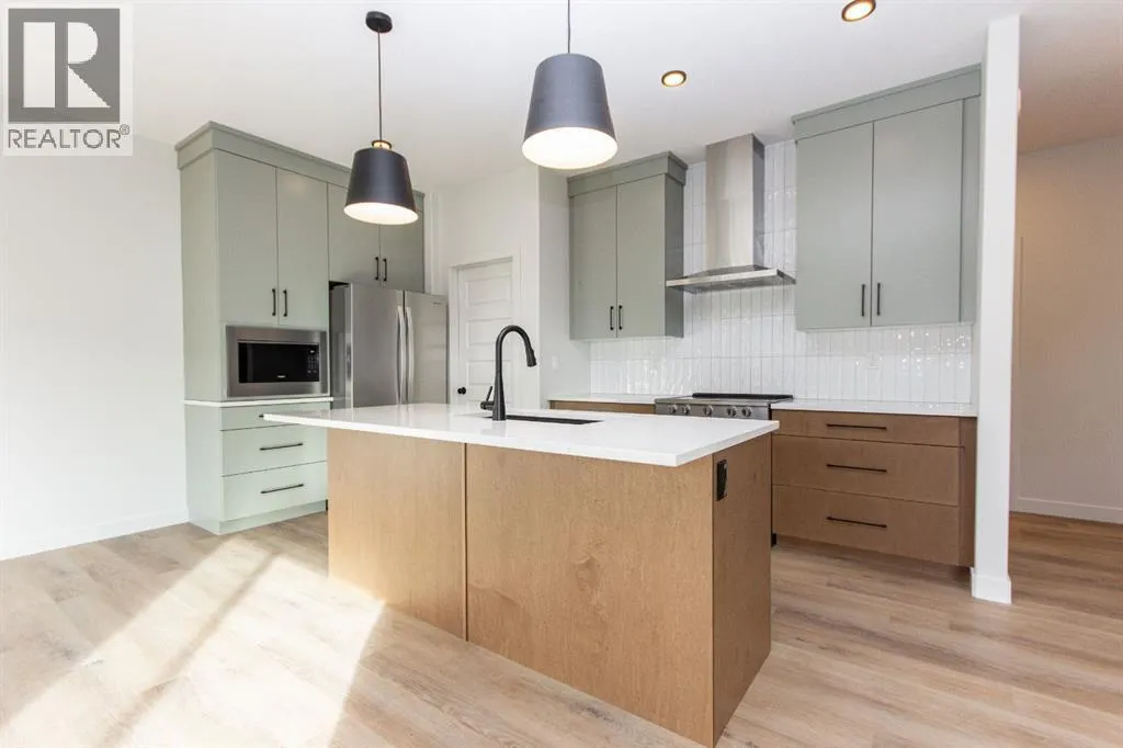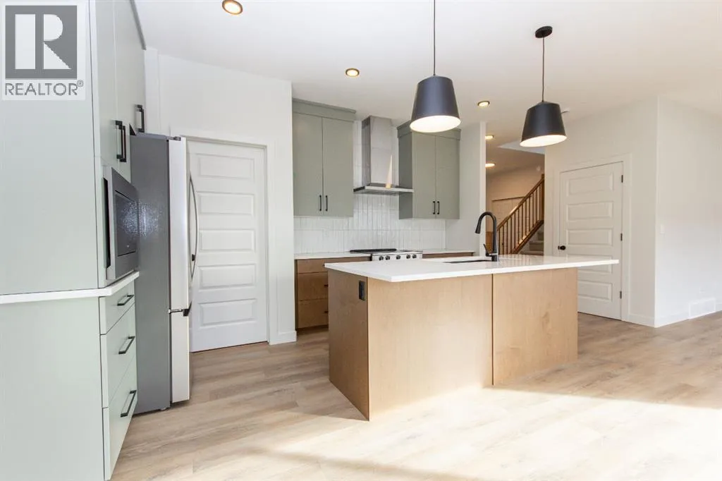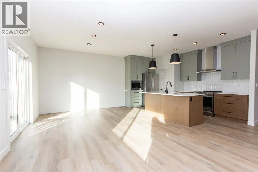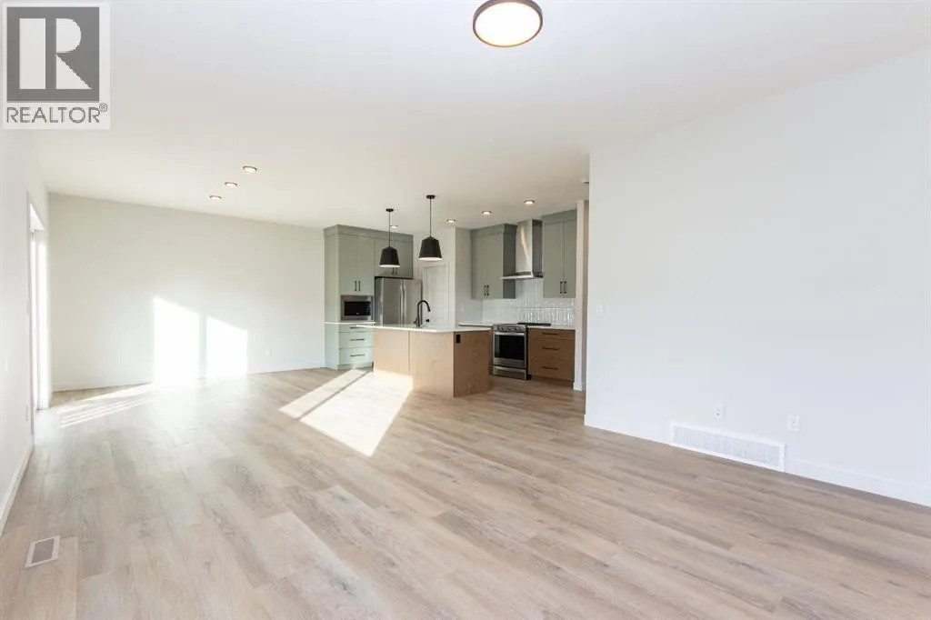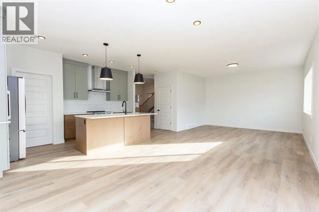 Situated close to the numerous amenities of Timberlands and Clearview Market, a school, and numerous parks and playgrounds, this brand new Laebon home is the perfect place to grow your family! This best selling floor plan offers 9' ceilings on the main floor, pot lighting, large windows, and a spacious open living space that is perfect for entertaining. Luxury vinyl plank runs throughout the main floor for the best in low maintenance and durability. This spacious kitchen offers raised two tone cabinetry, quartz counter tops, stainless steel appliances, island with eating bar and under mount granite sink, and a walk in pantry, while the adjacent eating area is large enough to accommodate the whole family. The living room and dining space enjoy views over the yard, and a sliding glass patio door provides access to the rear deck. The second floor offers a spacious and bright bonus room, two generously sized kids rooms that share a 4 pce bath, and convenient upper floor laundry. The primary suite is large, and the ensuite is a great place to start and end your day, with dual sinks, a freestanding soaker tub, oversized shower, water closet, and spacious walk in closet. The attached garage offers a floor sump and is insulated, drywalled, and taped. If you need more space, the builder can complete the basement development for you, and allowances can also be provided for blinds, and a washer and dryer to make this a completely move in ready package. 1 year builder warranty and 10 year Alberta New Home Warranty are included. Immediate possession is available, and GST is already included in the purchase price. Taxes have yet to be assessed. (id:27476)
