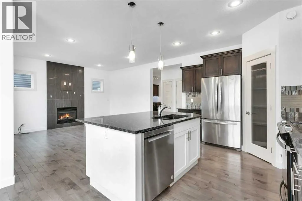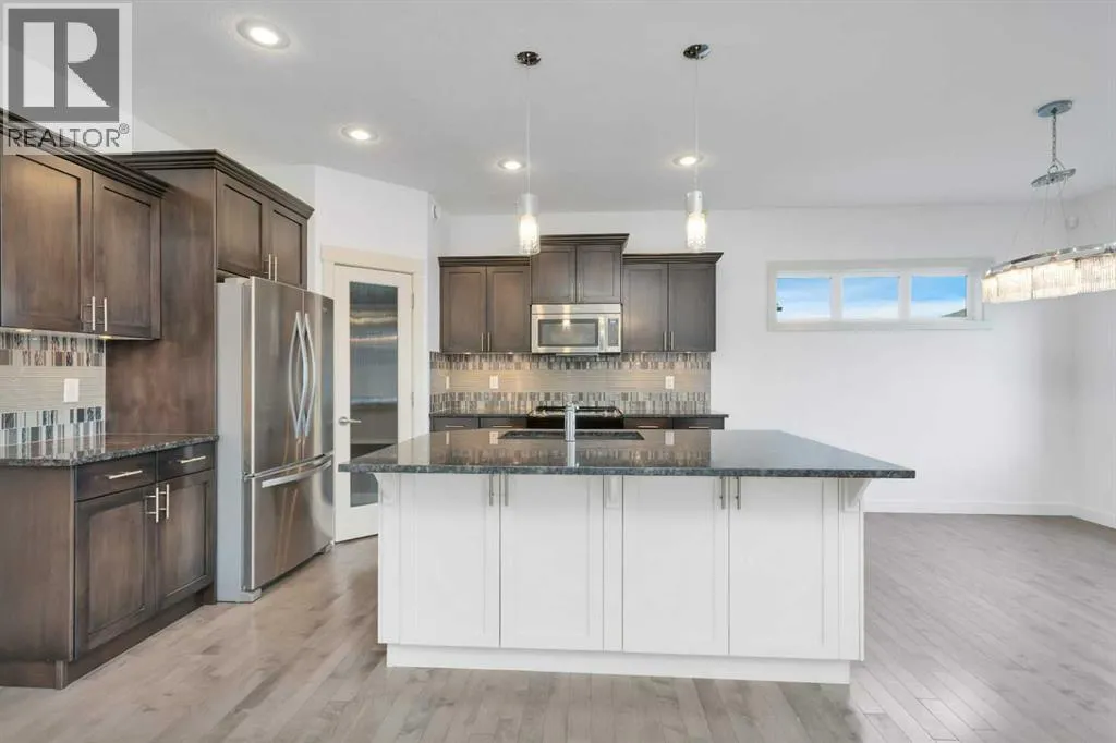 Freshly painted, move-in ready, and waiting for you! This beautiful 4-bedroom, 4-bathroom home in the heart of Laredo checks every box â style, space, comfort, and location. From the moment you walk in, you'll notice how bright and welcoming this home feels. The main floor offers a wide-open layout with 9-foot ceilings, big windows, and a cozy gas fireplace that instantly makes it feel like home. The kitchen is designed for both function and style, featuring granite countertops, rich maple cabinets, under-cabinet lighting, a full tile backsplash, a walk-in pantry, and a large island perfect for casual meals or entertaining friends. Just off the dining area, youâll find access to the backyard deck â complete with a gas line for your BBQ nights. Tucked away near the garage entrance is a smartly located laundry room and a 2-piece bath, keeping life practical and tidy. Upstairs, there's a spacious bonus room that can flex as a movie space, kids' zone, or cozy reading nook â whatever suits your lifestyle. The primary bedroom is a retreat, with a sparkling chandelier over the soaking tub, double sinks, a separate shower, and a walk-in closet. Two more bedrooms and a full bathroom complete the upper level. Downstairs, the fully finished basement offers even more living space â a large family room, fourth bedroom, and a full bathroom, giving everyone room to spread out. Outside, enjoy a fenced backyard with alley access, a handy storage shed, and space to relax. The heated, insulated, and drywalled garage comes with a floor drain â super convenient for winter. And here's the best part: the entire home has just been professionally painted from top to bottom and is available for immediate possession. All you have to do is move in and enjoy! Located close to parks, trails, and amenities in a family-friendly neighborhood, this one is truly ready for its next chapter â could it be yours? (id:27476)