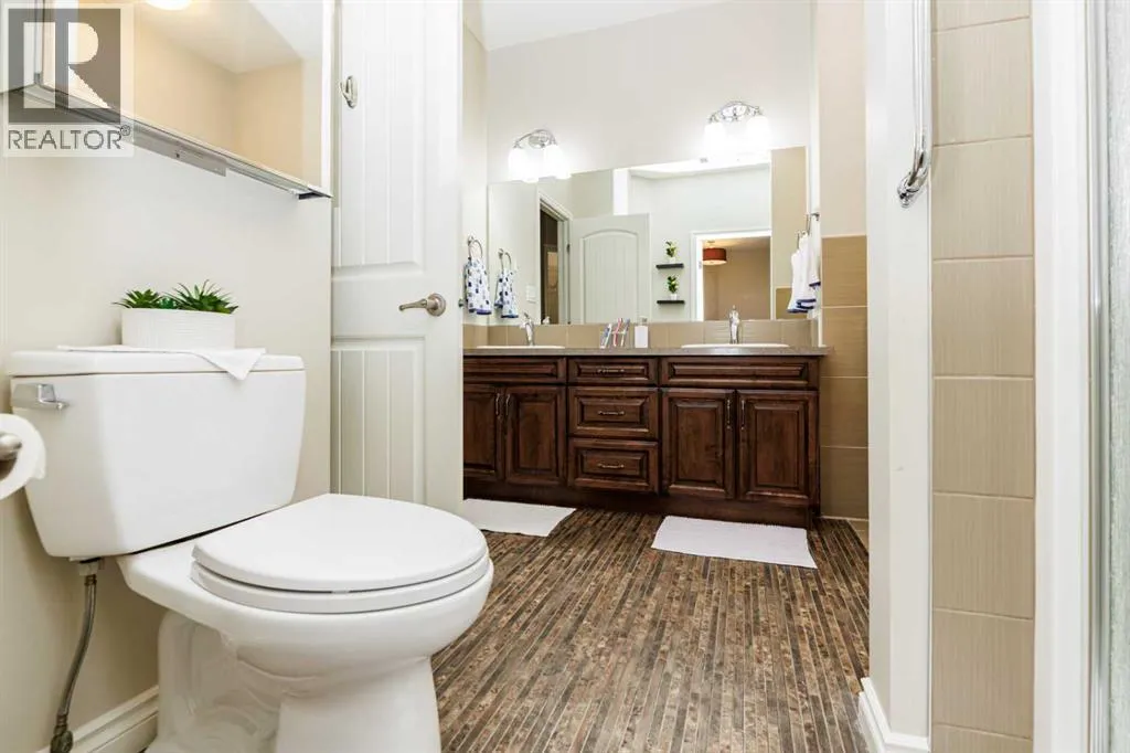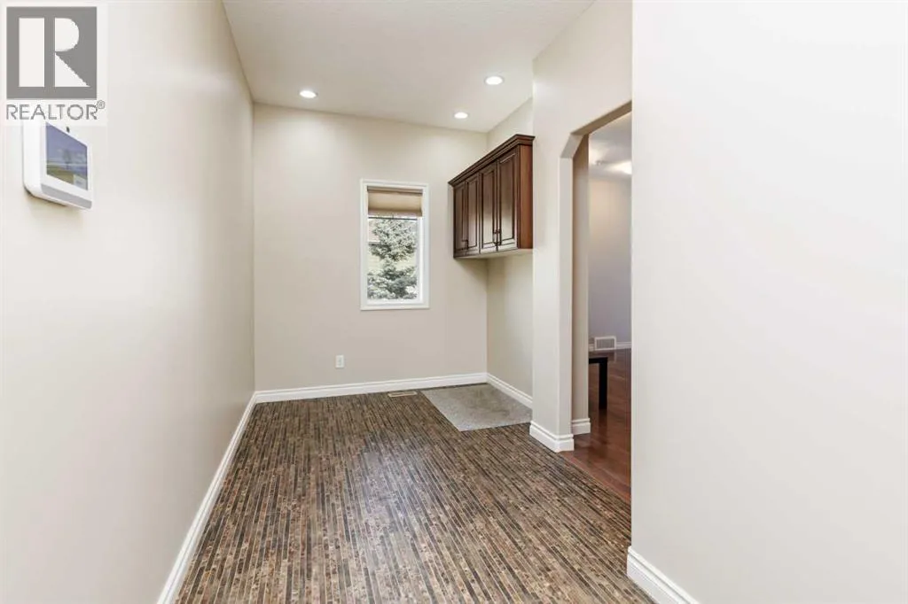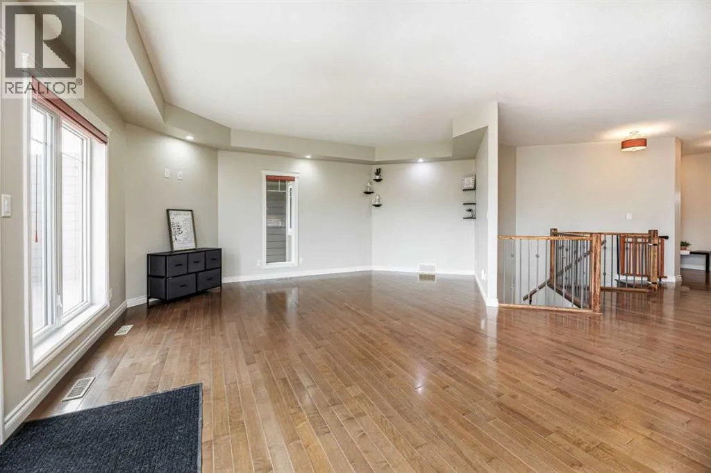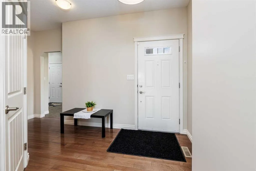 This beautifully maintained half duplex offers a bright, open layout and quality finishes throughout. The kitchen features a large island with eating bar, corner pantry, soft-close cabinetry, and plenty of storage, opening to the dining and living areas enhanced with power blinds for effortless comfort. From hereâor directly from the primary bedroomâstep out to the maintenance-free south-facing deck, perfect for morning coffee or evening relaxation.The front den includes a closet and can function as a guest bedroom or office, while the spacious primary suite offers a walk-in closet and an upgraded 5-piece ensuite with dual sinks and a senior-friendly walk-in tub. The main floor showcases engineered hardwood flooring, with main-floor laundry and an attached double garage adding convenience. Central air conditioning ensures year-round comfort.Downstairs, the basement features tile flooring, a large family room, guest bedroom, and 3-piece bath, plus a drywalled, taped, and mudded flex room ready for paint and flooringâideal as an entertainment space, hobby area, or playroom for grandchildren.Located in a quiet, adult-living bare-land condominium community near Red Deer Regional Hospital, walking trails, and local shopping. (id:27476)