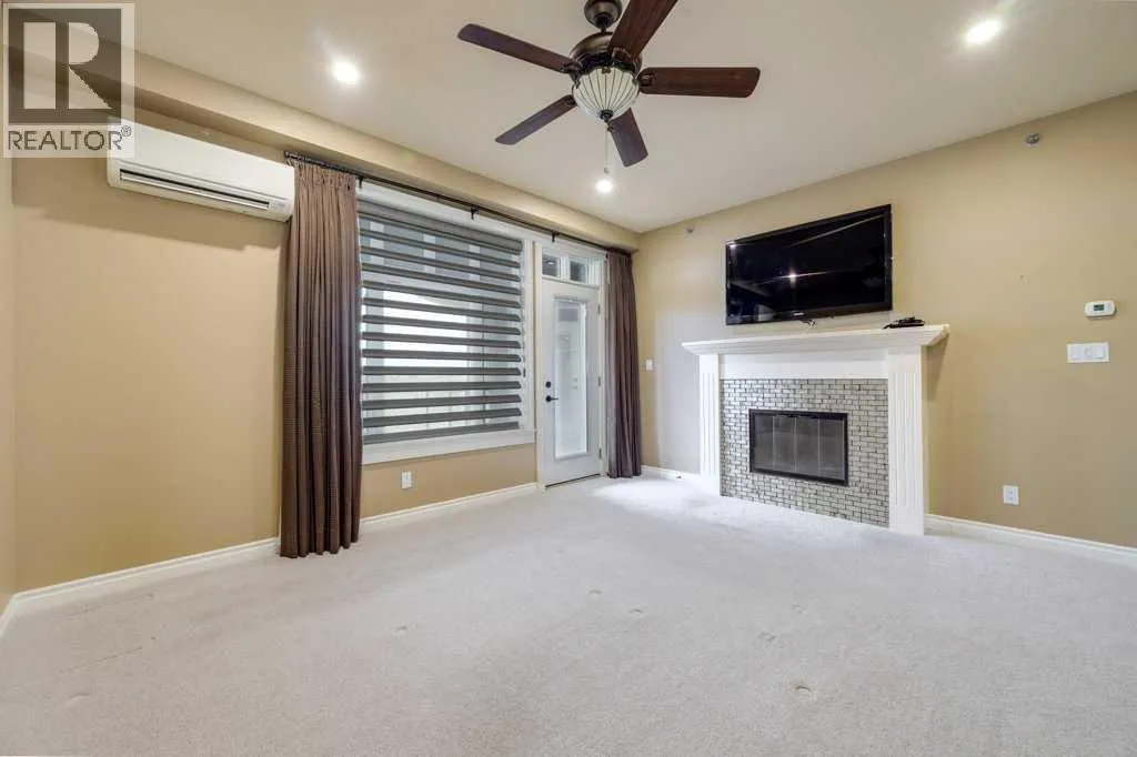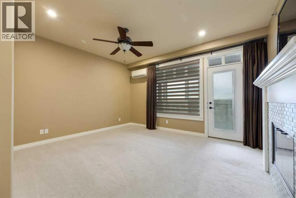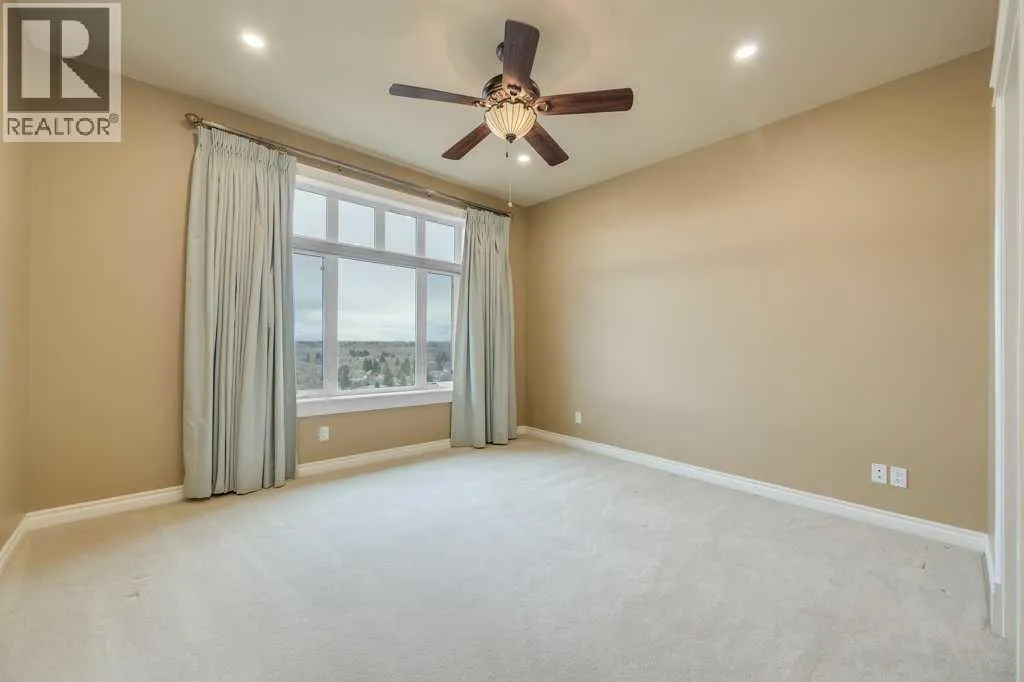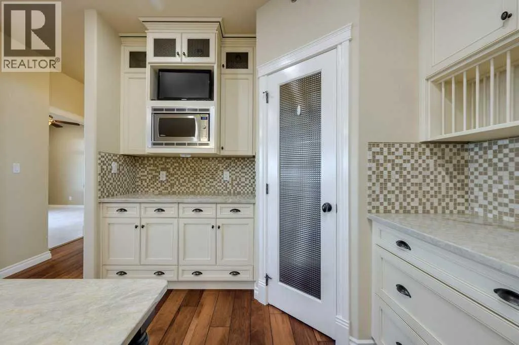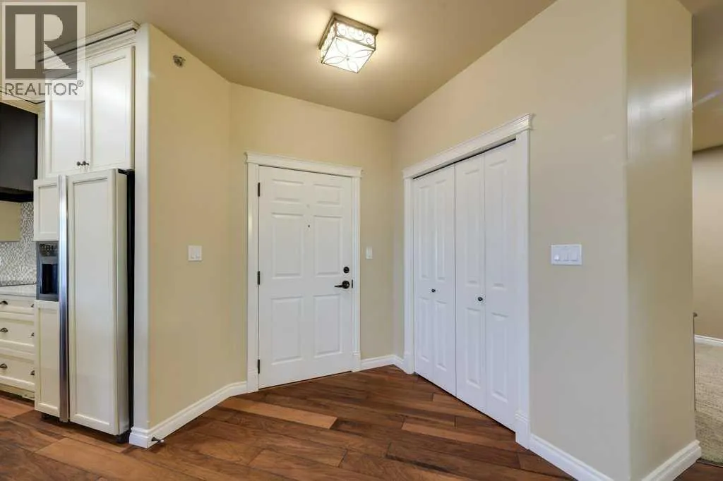 Experience luxurious condo living at its finest in one of Red Deerâs most prestigious buildings. This stunning top-floor unit offers nearly 1,950 sq ft of meticulously maintained living space, proudly presented by the original owners. Upon entering, youâll be captivated by the expansive open-concept layout, featuring a spacious living room, elegant dining area, and a beautifully upgraded kitchenâall enhanced by gleaming hardwood floors. The chef-inspired kitchen boasts a massive island, granite countertops, custom cabinetry, a full tile backsplash, and a convenient corner pantry. The living room is bright and inviting, bathed in natural light from the large south-facing windows, and offers plenty of space for entertaining or relaxing. The primary suite is a true retreat, complete with a two-sided fireplace, walk-in closet, and a luxurious 4-piece ensuite. Youâll also find a second generous bedroom, a separate den with custom built-in desk and cabinetry, and another well-appointed 4-piece bathroom. A spacious laundry room located just off the primary bedroom adds to the homeâs thoughtful design and convenience. Step out onto the large southwest-facing balcony and take in the incredible views, perfect for enjoying morning coffee or evening sunsets. This exceptional unit includes two titled underground parking stalls and access to superb building amenities such as a fitness centre and a multi-use party room. Offering a rare combination of size, style, and location, this immaculate condo truly defines luxury living in Red Deer. (id:27476)