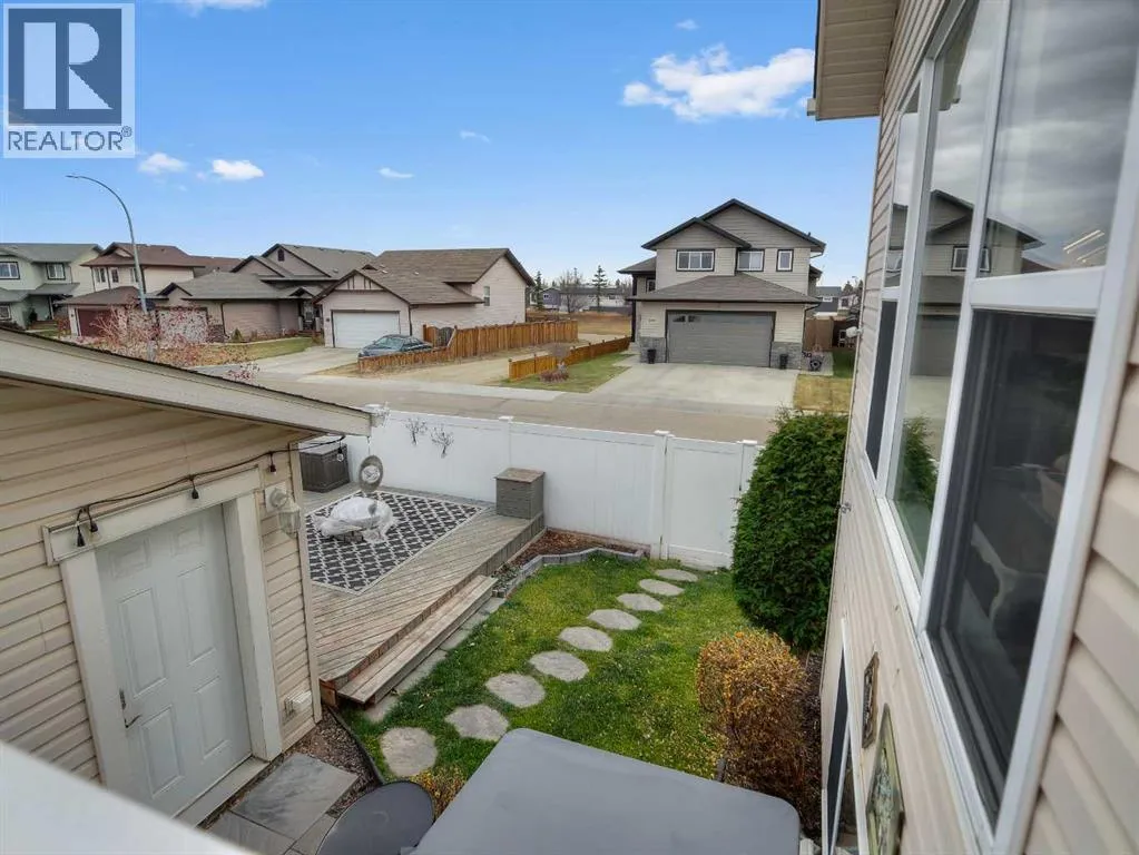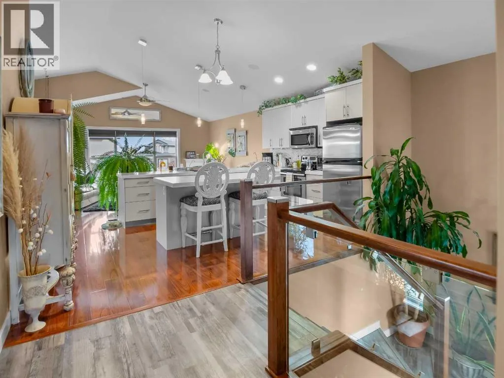 This isnât your average bi-level â itâs got presence. From the moment you step inside, the maple-and-glass railing and vaulted ceilings set the tone: modern, bright, and classy.The kitchen is a showpiece with floor-to-ceiling, soft-close drawers, full tile backsplash, stainless steel appliances, and a large island made for hanging out. The primary suite is oversized with a walk-in closet and spa-like ensuite.Every detail is dialed in â built-in sound system (inside and out), Wi-Fi access point that reaches the backyard, reverse osmosis water, on-demand hot water, built-in vac, alarm system, and even a timer for your exterior lights.The basement is partially developed: framing is complete for storage rooms, a 4th bedroom, and a family room area that can be designed exactly how you like it, with 9-ft ceilings, roughed-in in-floor heat, and big windows that let natural light pour in.Step out back, and it gets even better. The fenced yard is fully landscaped and complete with underground irrigation. Thereâs a raised deck off the back door for grilling (natural gas line ready to go), and a second raised patio with double hanging sun swings â perfect for late summer nights or lazy Sunday mornings. Add a 22â x 20â detached garage, and youâve got a home thatâs as functional as it is impressive.This one doesnât blend in â it stands out. (id:27476)