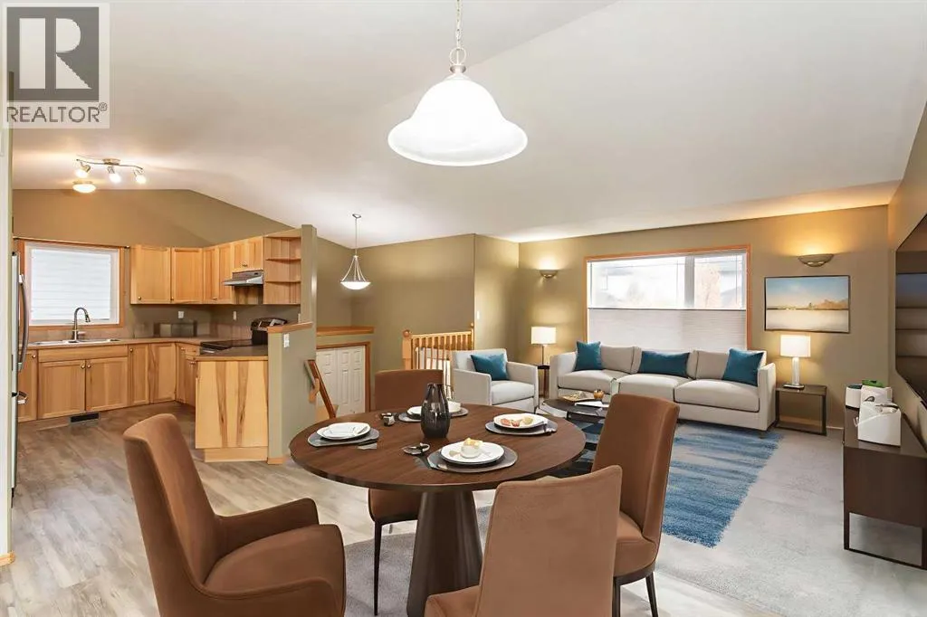 How about spending your very first family holiday in your new home? Low interest rates plus an incredible price makes this a wonderful opportunity for you to ease into home ownership. A fully developed 5 bedroom home offers plenty of room for a diverse family space. Whether you have young children, teens or even generational living there is enough space for everyone. Located in a beautiful close plus within walking distance to community schools and recreational facility. An open concept main floor design offers a spacious front facing living room with soaring vaulted ceilings. Delightful kitchen is enhanced with a blend of hickory cabinets, deep drawers, all matching stainless steel appliances plus plenty of counter space. A nice size dining area for the family to gather around which also has direct access from the garden door to side deck. Three bedrooms all on the main level is an excellent convenience for most options to utilize. Follow down to the fully developed basement which boasts a generous size family/games room perfect for hosting and entertaining. All laminate flooring throughout for not only ease of maintenance but durability. Two additional bedrooms and another three piece bathroom for extended family or guests. Plenty of additional storage under the stairs as well there is extra space in the laundry/furnace room area. A fully fenced yard which offers loads of room for future garage development plus still plenty of space left over for play center, trampoline or fire pit area. Large garden shed included for seasonal items as well. Great property with an immediate possession will appeal to a large sector of the market why not make it yours. (id:27476)