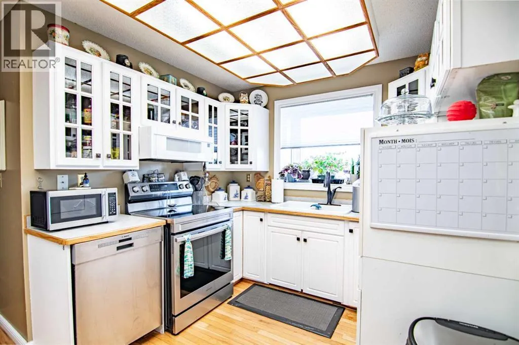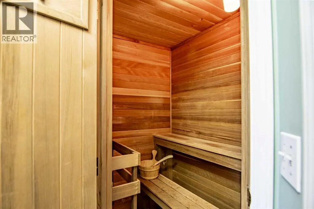 Welcome to this stunning bi-level home nestled on quiet Pearson Close in the prestigious mature Pines neighborhood. This home showcases exceptional curb appeal, featuring an inviting front verandahâperfect for enjoying your morning coffee while watching the sunrise. Step inside to discover gleaming hardwood floors that flow seamlessly throughout the main level, connecting the spacious living room, elegant dining room, and bright, welcoming kitchen. The rich hardwood continues into the generous primary bedroom, complete with a convenient 2-piece ensuite, plus two additional well-appointed bedrooms and a full 4-piece bathroom.The lower level offers incredible versatility with a spacious bedroom (currently serving as a tranquil yoga studio) and an expansive family room featuring a built-in wet bar and cozy gas fireplaceâideal for entertaining or relaxing during those crisp winter evenings. Additional amenities include a generously sized laundry room and a luxurious 3-piece bathroom complete with sauna and air conditioning for year-round comfort. The property is completed by an impressive finished and heated 22x24 garage, providing ample space for vehicles and storage. This exceptional home combines comfort, character, and convenience in one of Red Deer's most desirable neighborhoods. (id:27476)