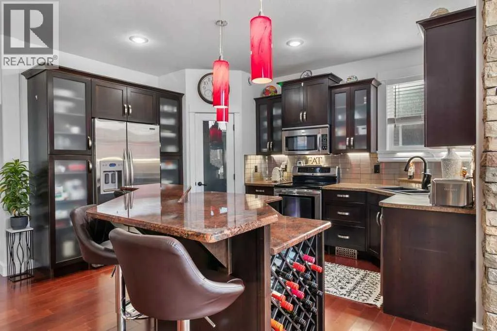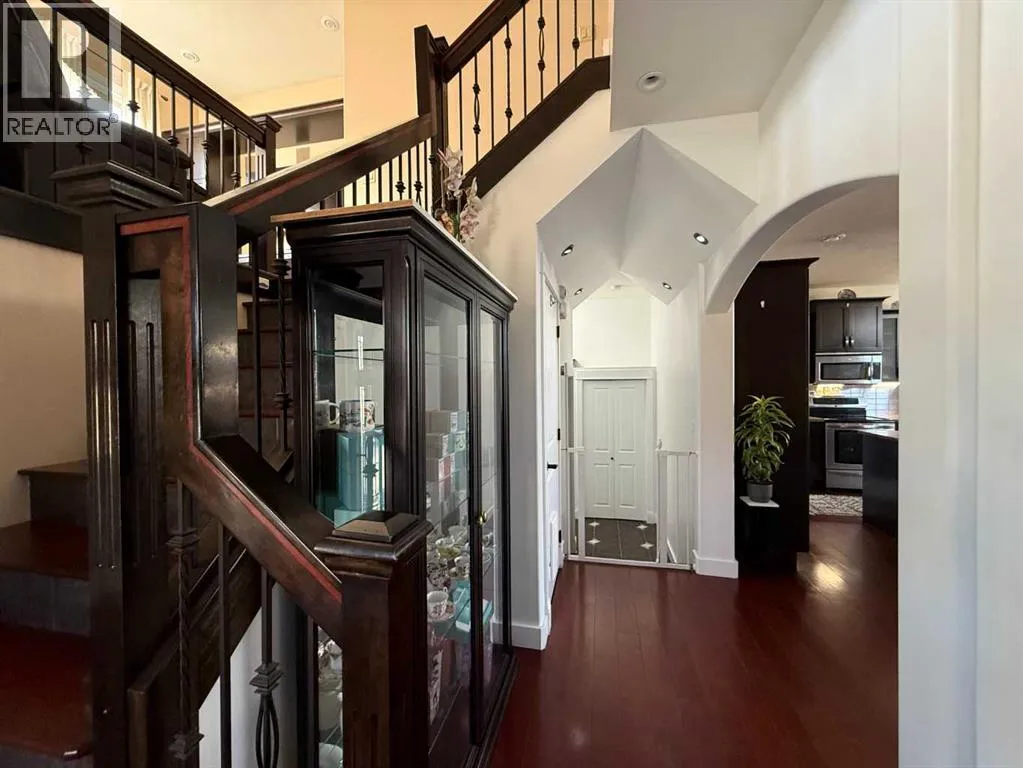 Welcome to 20 Oakfield Close, a stunning and luxurious two-story home tucked away on a quiet close in the desired subdivision of Oriole Park West. Ideally located near a park, playground, Ãcole Oriole Park elementary school as well as some of the best walking trails in the City along Maskepetoon Park. Step inside the spacious front entrance and you are greeted by elegant stained-glass, high ceilings, and beautiful hardwood floors that flow throughout the main level. The spacious kitchen features rich cabinetry, plenty of counterspace, large island with granite counter top, walk-in corner pantry and finished off with a high end appliance package. The kitchen area opens seamlessly to the dining and living areasâperfect for entertaining or family gatherings. The beautiful dining space is surrounded by oversized windows and exposed brick, leading to a gazebo overlooking the private yard. Upstairs offers a bonus room plus three generous bedrooms, including a primary suite with a spa-like ensuite and large walk-in closet. The fully finished basement includes a spacious recreation room, a fourth bedroom with a charming barn door, full bath, and ample storage. Enjoy your outdoor oasis with a pool and water fountain which backs onto a green belt/walking path . Additional features include central A/C, some electric blinds, rough-in for underfloor heat, and an attached double garage. A true blend of luxury and warmthâthis immaculate home in Oriole Park West offers the best of Red Deer living. (id:27476)