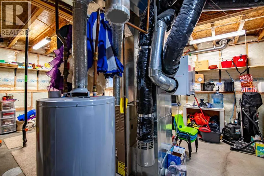 Check out this move in ready Bi-level home in Johnstone Park. Easy access to highway 2 and Edgar Industrial area! Walk upstairs and you will feel the open concept and space with vaulted ceilings, and the utility of 3 bedrooms on the main floor! Nice sized living room and kitchen with a walkout to the rear deck and a low maintenance backyard. The Primary room has it's own ensuite bathroom and 2 more bedrooms with another 4 pc bathroom complete the main floor. The basement is cozy with a large rec/family room and gas fireplace, featuring another bedroom and a massive storage/utility room that is pre plumbed for an extra bathroom and could even have a fifth bedroom or office added if desired. A 20x20 double detached garage completes the property and makes this home turn key and move in ready with the ability to add space as the years go by! (id:27476)