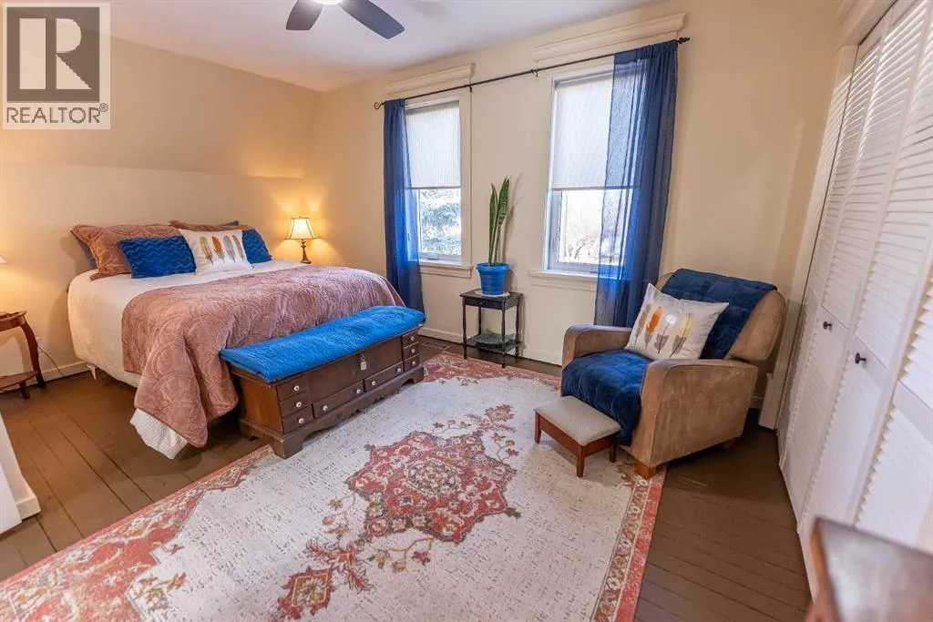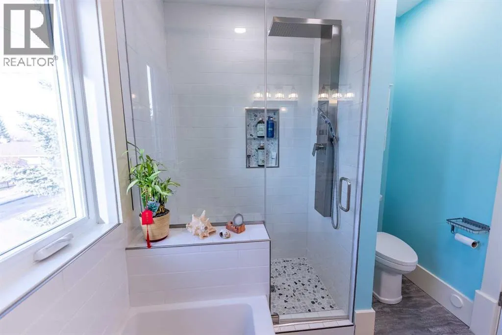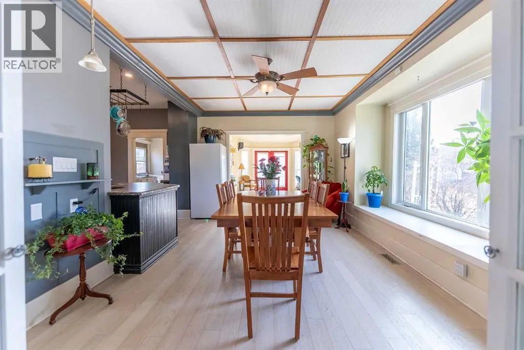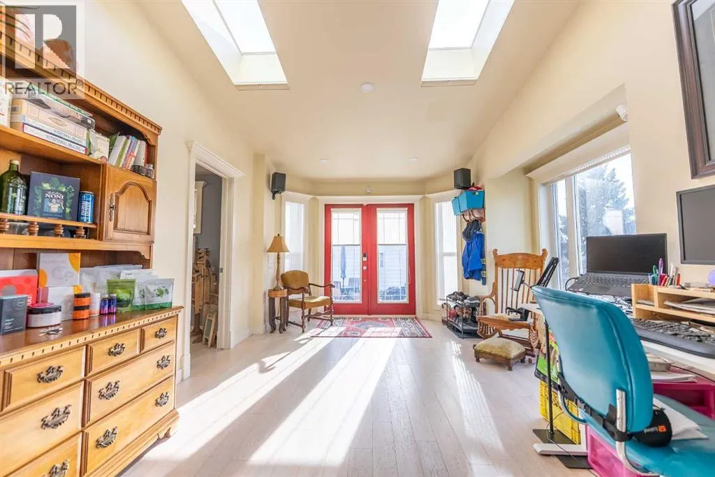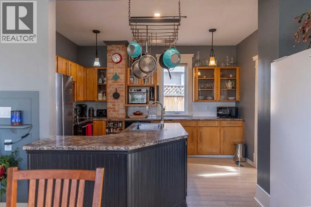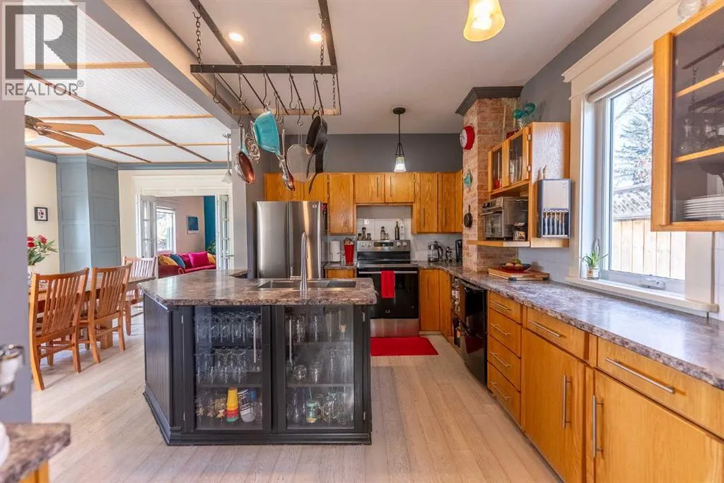 **Heritage Charm Meets Modern Luxury**Discover this one-of-a-kind, arched barn-style homeâa true piece of history! Thoughtfully upgraded for today's discerning buyer. Perfectly situated; you'll enjoy stunning west-facing views from your open dining room.Sophisticated Main Floor Living!Step up to the inviting front porch and into a home where historic character blends seamlessly with sleek, modern design. ⢠Designer Kitchen: The heart of the home features a large peninsula, abundant counter space, and a mix of classic and contemporary elements: Dual dishwasher drawers, clear front display cabinets and open shelving plus a unique, original brick chimney feature. ⢠Dining & Relaxation: The sunny, west-facing dining room is perfect for entertaining. Your favorite retreat will be the year-round back sunroom, boasting heated floors, two bright skylights, and patio doors leading to your private deck and backyard. ⢠Convenience: The main floor is completed with a half bath and a dedicated laundry room area Luxurious Upper Level Retreat!Ascend the stairs to find three lovely bedrooms and a spectacular newly renovated spa-like bathroom. Featuring a large, walk-in shower and soaking tub with custom tilework, this is a luxurious escape at the end of the day.Outdoor Oasis & Storage!The property features a mature, beautifully maintained yard and exceptional parking/storage with a massive 24'3" x 26'3" garage complete with 13' ceilings. Key Upgrades:Enjoy peace of mind with significant upgrades, including high-efficiency furnace and newly upgraded windows (except for LR). New shingles in 2019, New Fridge and Stove 2025. There are more improvements you can add to this beautiful home to increase its value.This is more than a house; it's a unique and exceptional home waiting for its next owner to cherish it.Don't miss the chance to own this architectural gem! It's a great home isn't it! Shouldn't it be yours? (id:27476)