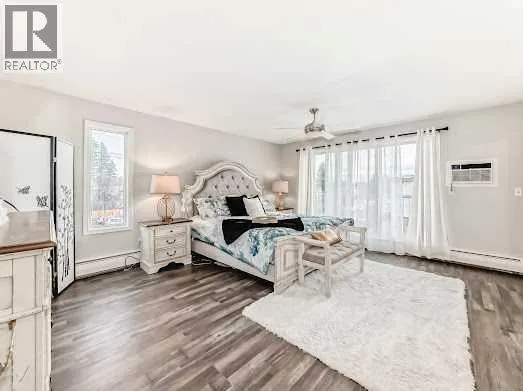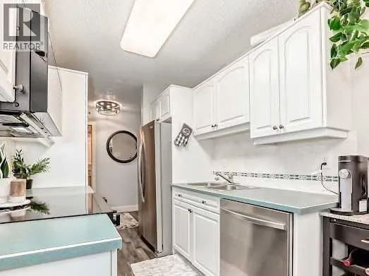 Spacious and bright end-unit condo offering two balconies, two bedrooms, two bathrooms, and two secured underground parking stalls. Larger than most suites in the building, this corner unit enjoys exceptional natural light thanks to its desirable south- and east-facing exposure. The oversized primary bedroom is a standout, featuring triple patio doors to a private sundeck, a generous walk-in closet, and a 4-piece ensuite complete with a jetted tub and separate shower. The second bedroom is bright, inviting, and has been tastefully updated. The functional kitchen offers ample white cabinetry and extra storage, while the spacious living roomâanchored by a cozy gas fireplaceâprovides a warm, welcoming place to unwind.Recent upgrades include new paint, vinyl plank flooring, updated baseboards, modern light fixtures, and newer appliances. Additional conveniences include in-suite laundry, a storage space, and elevator access. Ideally located within walking distance of restaurants, coffee shops, and numerous amenities, this home also offers easy access to Red Deerâs extensive trail system. Set in a quiet, well-maintained 30+ adult building (no children permitted), this condo provides comfort, convenience, and low-maintenance living in an excellent location. (id:27476)