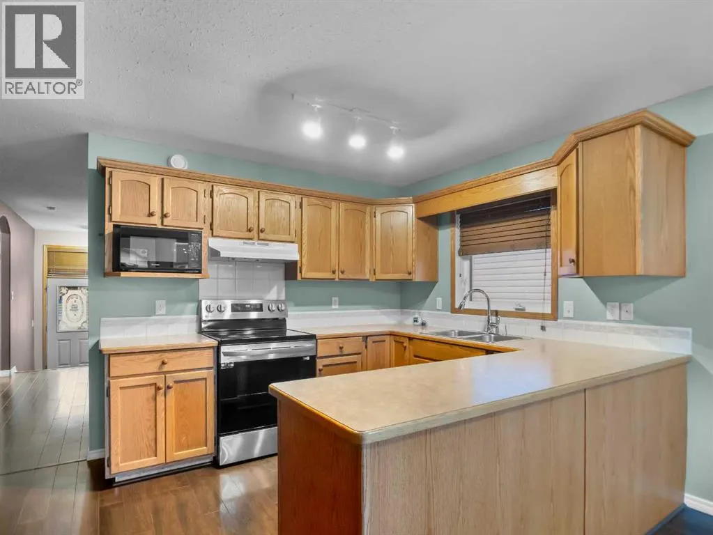 This Deer Park Close home is perfect for families seeking space, comfort, and convenience. With five bedrooms and three full bathrooms, including a private ensuite in the primary bedroomâa true retreatâyouâll have everything your family needs. The large oak kitchen offers ample storage and counter space, ideal for family meals and homework.The fully finished basement features new carpet and a spacious family room with a built-in projector and screen, perfect for movie nights. Step out onto the large deck overlooking the yard and insulated 22x22 garage. Recent updates include new carpet downstairs, a newer roof from 2017, and a fenced yard. Located close to parks, schools, and the Collicut Centre, this home is ready to welcome your familyâbook your visit today! (id:27476)