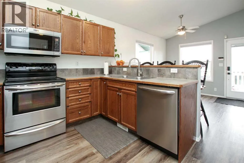 FULLY DEVELOPED BI-LEVEL ~ 4 BEDROOMS, 2 BATHROOMS ~ FULLY FENCED WEST FACING BACKYARD ~ GATED RV PARKING ~ Beautifully landscaped front yard offers eye catching curb appeal ~ Covered front entry leads to a sun filled foyer with high ceilings and a built in bench with shelving ~ Vaulted ceilings in the main living space offers a feeling of spaciousness ~ The living room is a generous size and features large windows that fill the space with natural light ~ The kitchen offers plenty of warm stained oak cabinets, ample counter space, tile backsplash, wall pantry and an eating bar ~ The dining room has more large windows that fill the space with natural light, plus garden door access to the sunny west facing deck with enclosed storage below ~ Two main floor bedrooms are both a generous size and are separated by the conveniently located main floor bathroom ~ The fully finished basement with large above grade windows offers a massive family room, 2 bedrooms, a 4 piece bathroom with a jetted soaker tub, laundry and space for storage ~ The backyard is landscaped, fully fenced with back alley access, has enclosed storage below the deck and gated RV parking ~ Located close to multiple schools, parks, green space, walking trails, shopping and all other amenities close by ~ Move in ready! (id:27476)