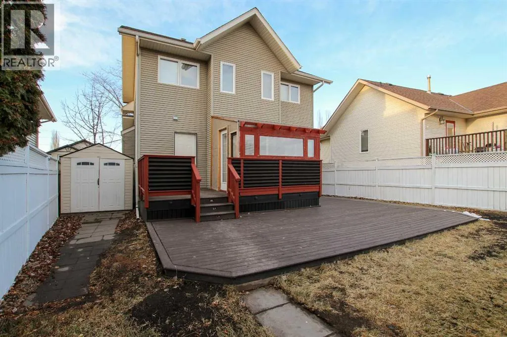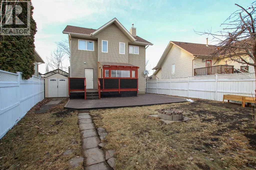 IMMEDIATE POSSESSION AVAILABLE ~ FULLY DEVELOPED 3 BEDROOM, 3 BATHROOM 2-STOREY IN WESTLAKE ~ 24' X 22' DETACHED GARAGE ~ Beautifully landscaped front yard with mature trees and shrubs offer eye catching curb appeal ~ Covered front veranda with space for a sitting area overlooks the front yard ~ Bright foyer with tile floors welcomes you and leads to the open concept main floor ~ The living room features hardwood flooring, large windows offering natural light, and is centred by a cozy gas fireplace with stone surround, mantle and TV niche above ~ Easily host large gatherings in the spacious dining room with more large windows and a wall pantry ~ The kitchen offers a functional layout and features warm stained extended height cabinets with crown moulding, full tile backsplash, window above the sink and ample counter space ~ Mud room has a built in bench and cabinets offers easy access to the huge two tiered deck and backyard ~ 2 piece main floor bathroom ~ The primary bedroom can easily accommodate a king size bed plus multiple pieces of furniture, and has dual closets ~ Two additional bedrooms are also a generous size with ample closet space ~ Oversized 4 piece bathroom centrally located to the bedrooms with a linen closet for storage ~ The fully finished basement offers plenty of additional space and includes a large family room, office nook with a built in desk, 3 piece bathroom with a walk in steam shower, laundry with a sink and space for storage ~ Also includes: central vacuum, window coverings ~ The backyard is landscaped with mature trees, has a fire pit, garden shed and tons of outdoor living space on the massive two tiered deck with a glass enclosed gazebo ~ 24' L x 22' W detached garage is insulated, finished with painted drywall, slatwall and wood paneling, has built in shelving/storage, and back alley access ~ Located on a tree-lined street and walking distance to multiple schools, parks, playgrounds, walking trails, Red Deer Poly, Heritage Ranch and wit h easy access to downtown and the highway ~ Immediate possession and move in ready! (id:27476)