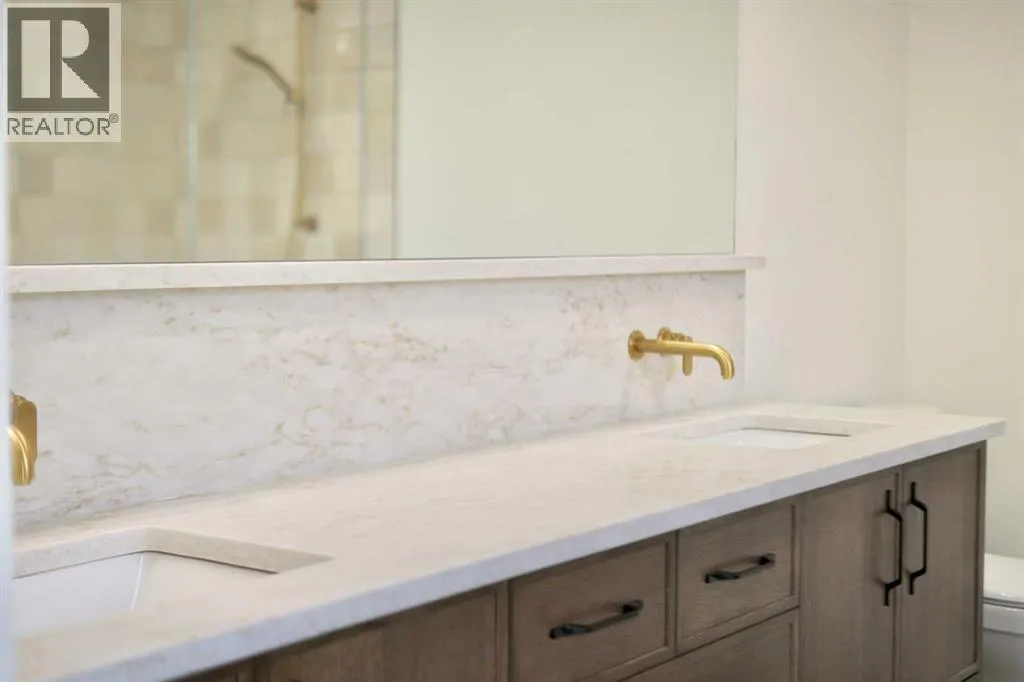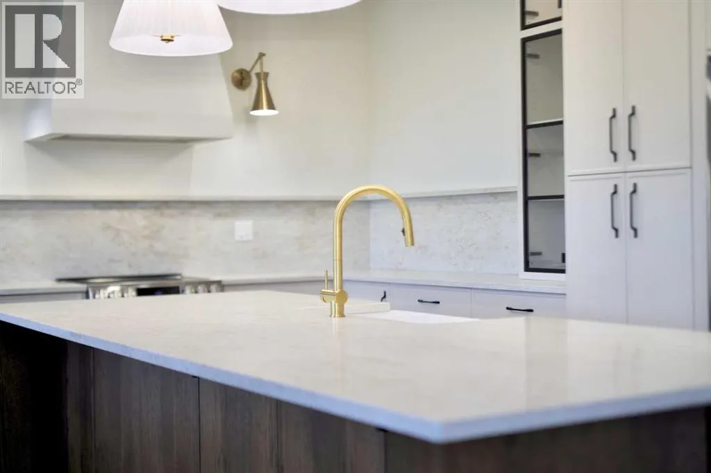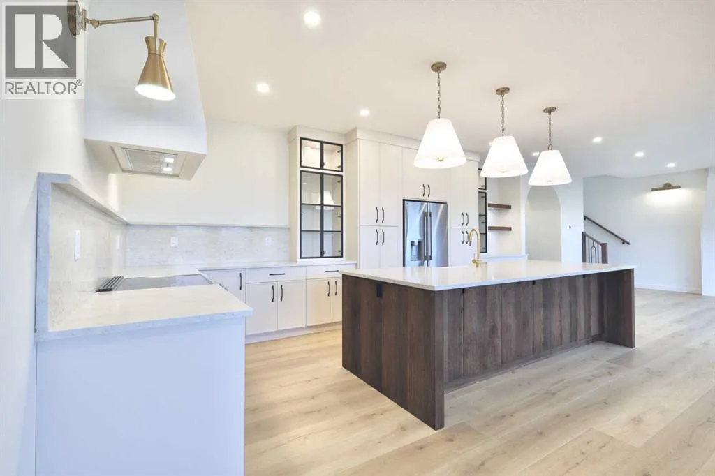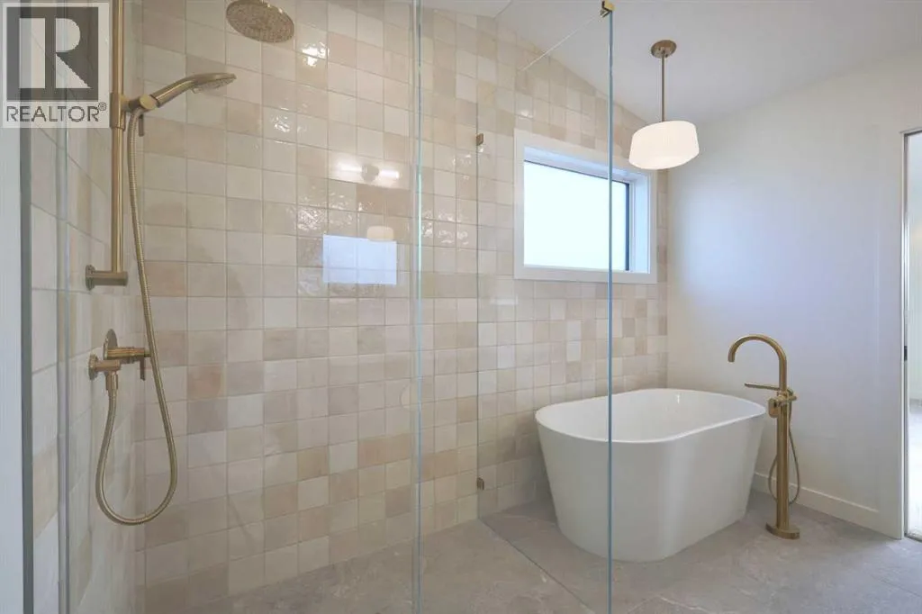 This stunning custom-built home by Avera Homes sits in the heart of Evergreen, one of Red Deer's most desirable and thoughtfully designed communities. Evergreen is where nature is at your door, and multi-use trails connect seamlessly to the cityâs renowned trail system making outdoor recreation an everyday experience. Featuring four spacious bedrooms, a large bonus room, and an upper floor laundry room with built-in sink, this home is designed for modern family living with elevated comfort and style. From the moment you arrive, youâll notice the attention to detailâfrom the covered front entry with composite decking to the striking designed exterior with unique custom arches that enhance the architectural beauty of this home. Step inside to discover a spacious, light filled layout featuring vaulted ceilings, 9' walls and of course the heart of the home is a chefâs dream kitchen, showcasing premium level quartz countertops, a massive 5' x 10' hickory island with a farmhouse sink, and bespoke cabinetry throughout. Riobel brushed brass plumbing fixtures, ultra-clear curb-less glass shower enclosure, and a freestanding one-piece tub bringing spa level luxury to the bathroom. Every element of this home has been carefully upgraded. ~ Custom light fixtures and lighting plan ~ Solid white maple railings ~ Venetian plaster custom designed fireplace and range hood ~ Upgraded appliances and flooring ~ Custom tile and door hardware ~ Spray foamed garage ceiling and wall cavities for enhanced comfort in the primary suite. The outdoor living space is just as refined with a covered rear deck finished in composite decking perfect for year round enjoyment. The undeveloped basement is roughed in for in floor heat and ready for your personal touch, ideal for expanding your living space as needed. This home is more than just a place to live,, itâs a statement of craftsmanship, comfort, custom design and precision design throughout the interior and exterior. Every detail has been ca refully curated to offer a truly one of a kind living experience, blending modern elegance with timeless architectural features. From premium finishes to thoughtful upgrades throughout, this property is a must see for discerning buyers who value quality and character in every square foot. (id:27476)