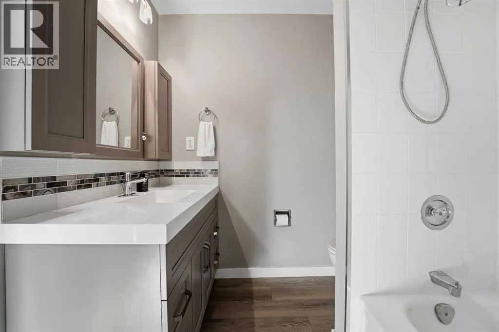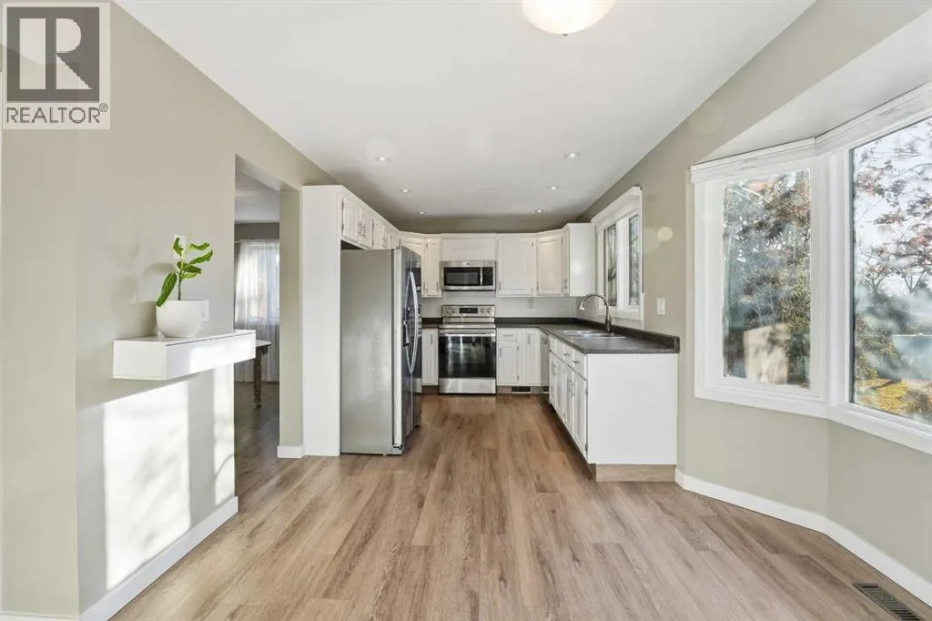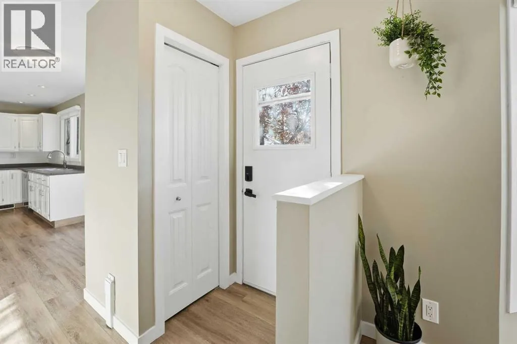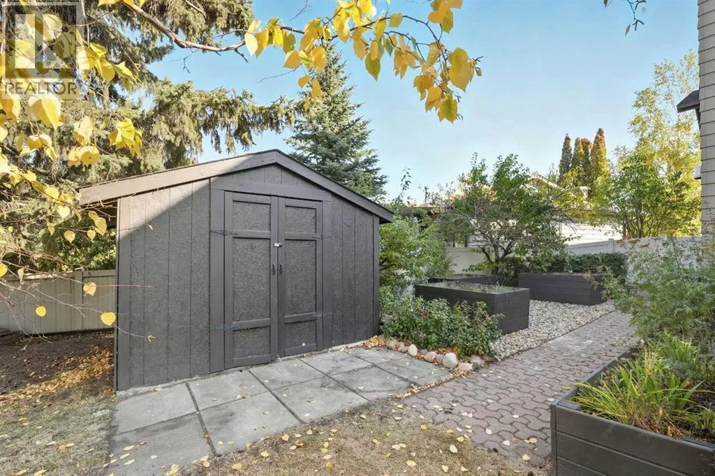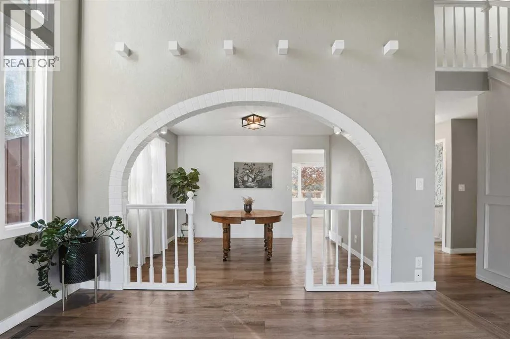Immaculate Fully Developed 2 Storey with Attached Double Garage on a Quiet Close in desirable Clearview Meadows! Step inside and youâre greeted by the vaulted wood accented ceiling, a floor-to-ceiling stone masonry mantle that surrounds a natural gas-fireplace in the front living room, plus a beautifully updated staircase with white railing & wood paneling accenting the stairs. From the bright east facing living room is access to the formal dining room and kitchen. The kitchen is complete with stainless appliances, tile backsplash, and a breakfast nook. Off of the kitchen you will find the main floor laundry, access to the backyard, and an additional family room with built-in shelves and gas fireplace. The main floor is complete access to front attached double garage and a 2-pc washroom. Upstairs you will find the oversized primary bedroom, complete with double closets, built-in vanity, and 3-pc ensuite. There are 2 additional bedrooms and a 4-pc bathroom that complete the 2nd floor. The basement boasts a large rec room complete with a built-in Murphy Bed, Projector & Screen. There is a 4th bedroom and plenty of storage space in the utility room, plumbing roughed in for a bathroom, and under the stairs. The west facing backyard oasis is fully fenced and landscaped. This pie-shaped lot backs onto a greenspace / park. Enjoy the mature, private backyard from your maintenance free Trex deck with additional stone patio. The yard is complete with are raised garden boxes, fruit trees, shed, playhouse & swing set. Recent Updates: Fridge (2025), Dishwasher (2024), Light Fixtures, Vinyl Plank Flooring, Paint, Baseboards, & NEW Shingles (November 2025) (id:27476)
