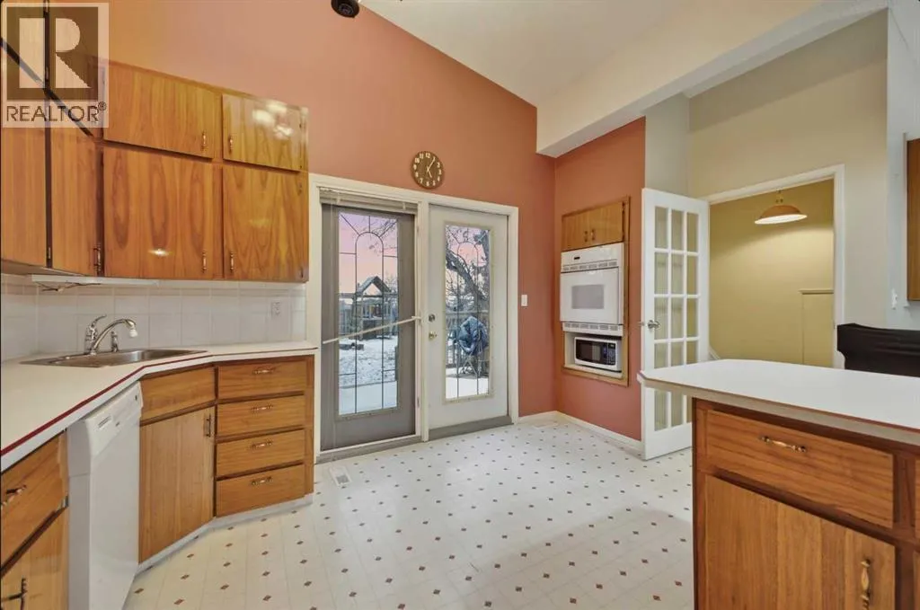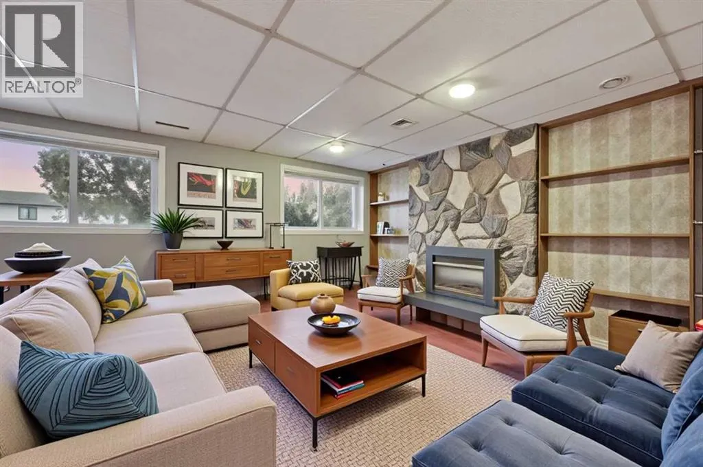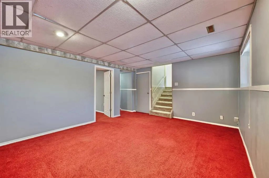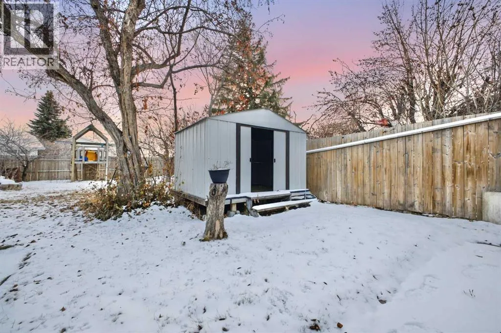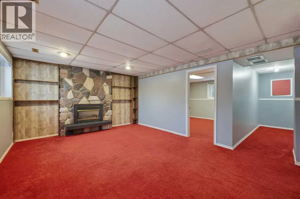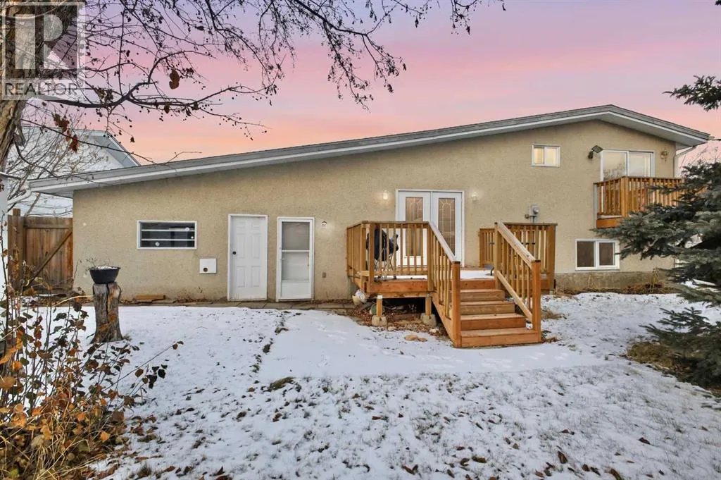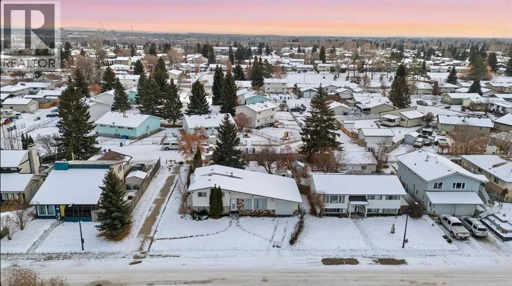 Step into this classic 4-level split, filled with unmistakable 70s character and some thoughtful updates. The main floor greets you with soaring ceilings and large front windows that instantly open the space and set the tone for the home. Upstairs features three comfortable bedrooms, including a primary suite with its own private deck and ensuite. A full bathroom completes this level. The first lower level offers a warm and inviting family room centered around a gas fireplace, along with a fourth bedroom (note: no closet). The lowest level includes the laundry area, a 3-piece bathroom, plenty of storage, and a convenient staircase that provides direct access to the backyard, the garage, and all the way up to the main level. The deep 27.5' single attached garage offers excellent parking and workspace options. Outside, enjoy a large and private yard with newer fencing and a newer shed. Recent updates include shingles (2020), rebuilt rear and primary bedroom decks (2024), and fresh paint and lighting (2024). Located near the recreation centre, complete with a fitness facility, pool, library, arena, and water park, and within close proximity to schools, this home blends charm, function, and convenience in one inviting package. **Some photos are virtually staged** (id:27476)