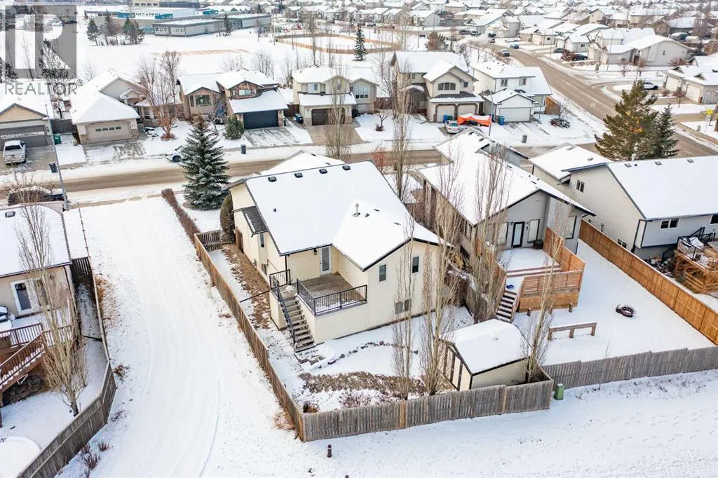Immaculate bi-level home fully finished from top to bottom with every space maximized for function. Located in a family friendly community with quick access to schools, parks plus shopping amenities. Professionally landscaped not only for lovely curb appeal but also offers a low maintenance lifestyle. The welcoming front entrance offers plenty of space to greet guests in style but also provides room for boots,bags and everyday flow. Enjoy the sun filled living space enhanced by vaulted ceilings for a spacious, uplifting feel. Timeless antique white cabinets elevate the kitchen, which opens beautifully to the dining area for an elegant, cohesive space. Kitchen is also complimented with a raised eating bar, wrap around counter space, pantry closet plus an upgraded insert gas stove. Generous main bathroom offers a large full length vanity with storage cupboards and drawers. Primary bedroom is roomy enough for a King size bed, dual closets for all your attire plus your own private three piece en suite for added comfort. Additional main floor bedroom is great for guest or even a nice studio/office space for yourself. Head down to the finished basement and find a large yet cozy family room where everyone can relax, play or spend quality time together. Two additional bedrooms ideal for extended family over the holidays or for the independent teens looking for their own sanctuary. Basement bath is also enhanced with a roomy walk in shower great for limited mobility plus large vanity as well. Enjoy the comforts of the under floor heat during these colder months ahead but also relish in the summer with the AC once the warm weather hits. Other upgrades were newer shingles approx 7-8 years ago, updated furnace, both Hot Water tanks have been replaced plus a Ecowater conditioning system installed. The attached garage with in floor heat is especially appreciated this time of year with evaporation pit for snow melt. A nice size back patio offers a gas line for the bbq plus additio nal closed storage underneath excellent for the patio furniture. The well placed columnar trees give added privacy to the back yard plus the additional features of a small RV parking area, dog run plus the extra garden storage shed add to the value experience of the yard. Make this house your home for the holidays. (id:27476)