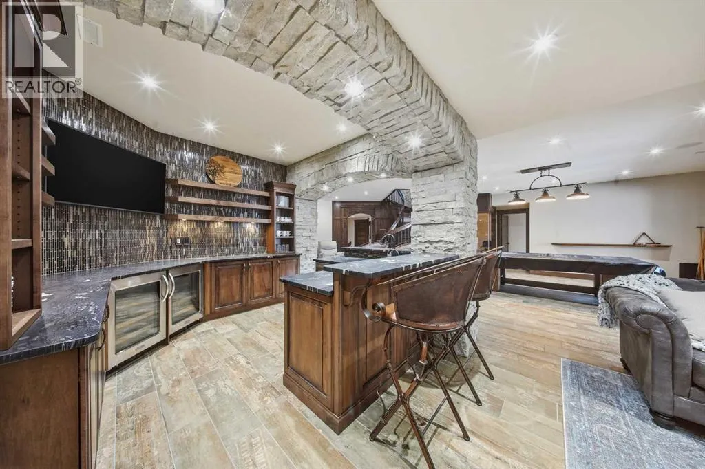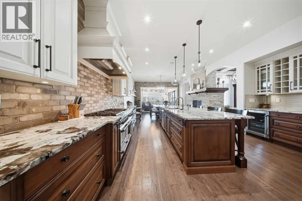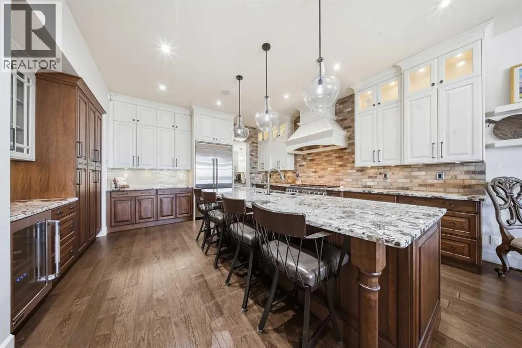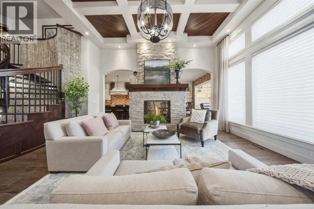 Prepare to be completely captivated by this EXTRAODINARY SHOWHOME, a masterpiece of craftsmanship and LUXURY DESIGN. From the moment you step inside, the grandeur of the 10 ft ceilings sets the tone, creating an airy, OPULANT ATMOSPHERE that flows effortlessly throughout the main floor. At the heart of the home, you'll find stunning stone feature walls paired with 2 two-sided gas fireplaces. a SHOWSTOPPING architectural statement that blends warmth, artistry & modern ELEGANCE! The gourmet kitchen is a chefs dream, complete with a butlerâs pantry, prep sink, professional grade appliances and rich granite countertops that anchor the space with TIMELESS SOPHISTICATION. BEAUTIFUL hardwood flooring sweeps throughout, adding warmth & refinement at every step. A curved open riser hardwood staircase leads to the upper floor (LOFT) that is beautifully finished with a spacious bedroom, 4-piece bath and bonus room, ideal for guests or teenagers. Other great features include, triple pane windows, custom draperies, HUNTER DOUGLAS motorized blinds, steam shower, water softener, 2 air conditioners, incredible 2-piece powder room with custom maple vanity & upgraded lighting! The LUXURIOUS Primary suite is perfectly positioned to capture the natural beauty of the Piper creek valley and offers uninterrupted views of rolling landscapes and paved walking trails, with lots of natural light that pours through the expansive windows & a private door that opens directly onto the west facing balcony. A space designed for peace, rejuvenation, & beauty at every angle. The 6-piece ensuite is nothing short of a spa sanctuary. Outfitted with sleek QUARTZ COUNTERTOPS, a steam shower, free standing soaker tub, a striking feature stone wall, every detail whispers LUXURY! From the ensuite step seamlessly into the walk-through closet featuring many custom built in cabinetry- beautifully designed with organization & style in mind, This smart layout continues directly into the connected laundry room, of fering UNMATCHED functionality and ease. Just off the main floor, a gentle step down leads you to an oversized, versatile room that immediately impresses with its sense of space & character, currently styled as a grand office, this incredible room features VAULTED CEILINGS, gorgeous chandelier, and charming shiplap walls, a large fully finished closet making the space even more flexible in its uses. The WALKOUT basement is nothing short of an entertainers dream- Designed with LUXURY, lifestyle & pure enjoyment in mind. A CUSTOM wet bar, ice maker, 2 wine fridges & dishwasher. Large bedroom with a 4-piece ensuite, GYM, theatre room, and completed with GOLF SIMULATOR! Walkout onto an aggregate screened room that overlooks the maintenance free backyard! Tripe HEATED GARAGE features, epoxy flooring, 2 man doors, high ceilings & central vacuum. Other features include: Misting system, synthetic grass, professional landscaping, control 4 surround, BEAMED CEILINGS, REVERSE OSMOSIS, built in BBQ. (id:27476)