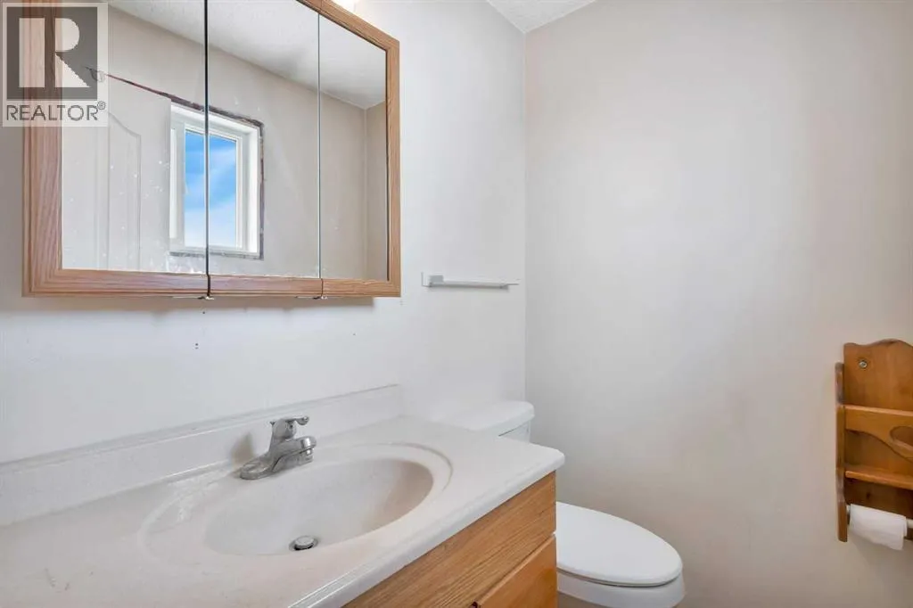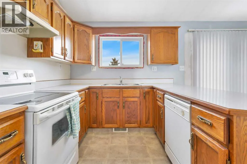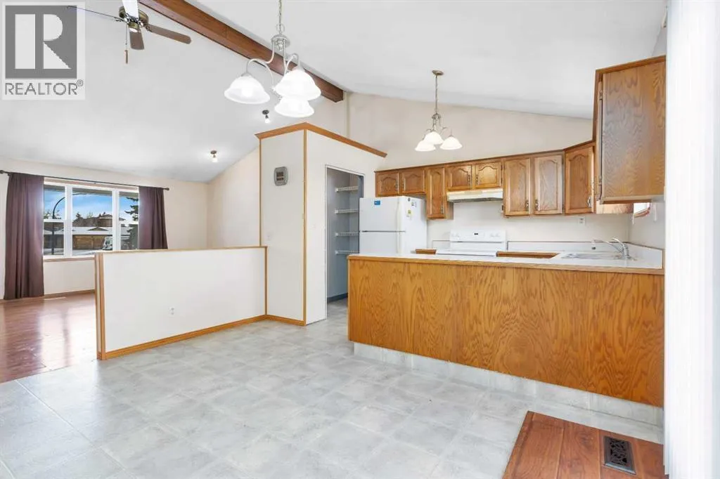 Lots of space and loads of potential! This 3 bedroom + den bi-level sits on a corner lot in a desirable Close with green space in the middle. The front entryway is spacious and the living room and kitchen are bright and open with some new windows and impressive vaulted ceiling. The u-shaped kitchen has lots of counter space and built in pantry. Good dining area with patio doors to back deck. 4 piece bathroom has tiled bath-tub & sky-light and both bedrooms are sized well with a 2 piece ensuite & double closets in the Primary. The basement has a separate entry and 1 bedroom, plus a den (needs a closet) with a 3 piece bathroom. Numerous windows let in lots of natural light and the good sized family room has a wood burning stove. Separate entry boot room area accommodates laundry with shelving and storage. The backyard is fully fenced and the detached garage is oversized with shelving and work benches. Close to shopping and transit and easy highway access! (id:27476)