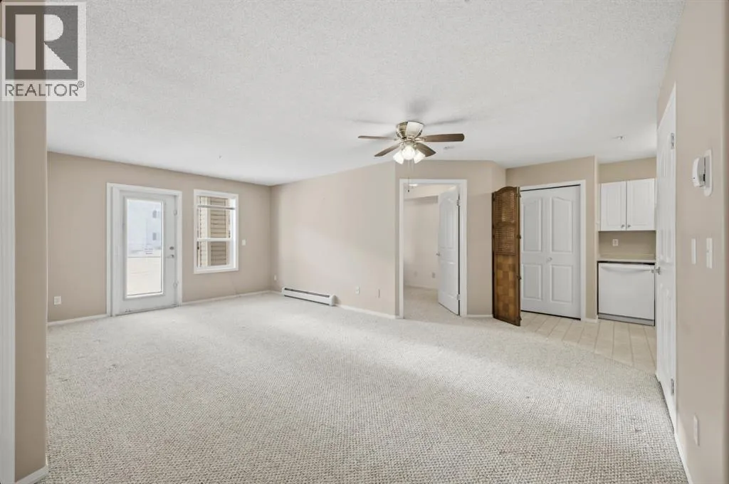 Welcome to Worry-Free Living at Legacy Estates, a 60+ Adult Community. Quick possession is available on this beautifully maintained main-floor, south-facing condo located in Clearview Meadows. This bright and comfortable two-bedroom, one-bath home offers exceptional convenience, updated features, and access to an impressive list of amenities designed for easy, enjoyable living. Inside, youâll find a functional layout with a cheerful white kitchen, full set of appliances, and a brand-new dishwasher. The spacious four-piece bathroom is thoughtfully designed to accommodate mobility needs. In-suite laundry features a stackable washer and dryer, and the unit includes durable flooring and a generous enclosed storage room with space for a deep freeze. The cozy living room opens onto your private, south-facing ground-floor patio, perfect for enjoying morning coffee or offering easy access for guests. This impeccably kept, no-pet, no smoking building offers a comfortable and community-oriented lifestyle and is wheel chair accessible throughout. The condo fee of $606.52 per month includes all utilities except phone, internet and cable, simplifying monthly expenses. The home also comes with a heated, titled underground parking stall, and storage cages can be be rented. Residents of Legacy Estates enjoy optional chef-prepared meals, lunch and supper weekdays, breakfast on weekends, dining area, elevators, an exercise/fitness room, an on-site hair salon, library and lounge areas, and even a guest suite, a beautiful outdoor courtyard with gazebo, and a wide range of organized social activities. The building is conveniently located close to walking trails, shopping, and transit, offering both independence and connection. This well-cared-for condo is move-in ready and an excellent opportunity to enjoy low-maintenance living in a warm and welcoming community. Quick possession is available. (id:27476)