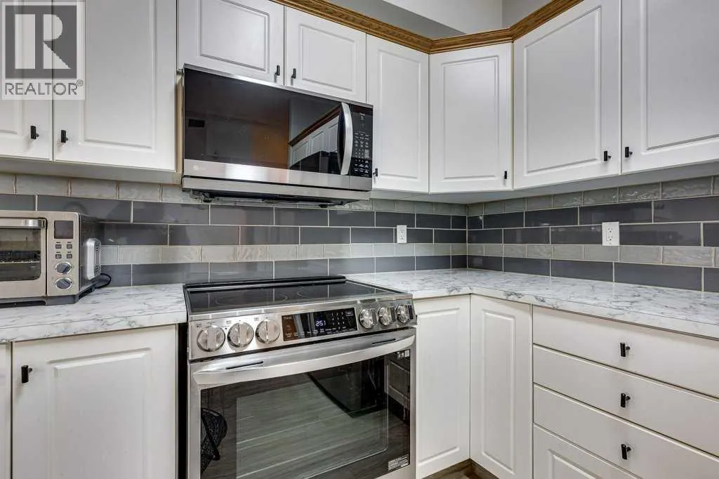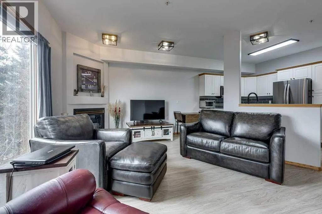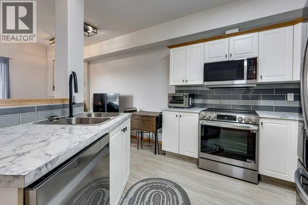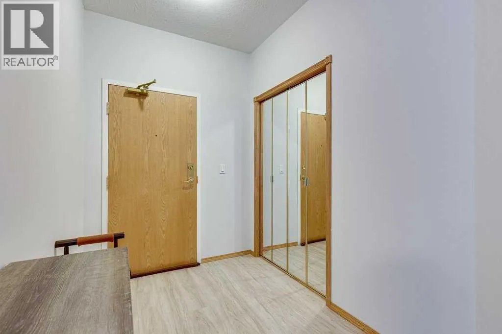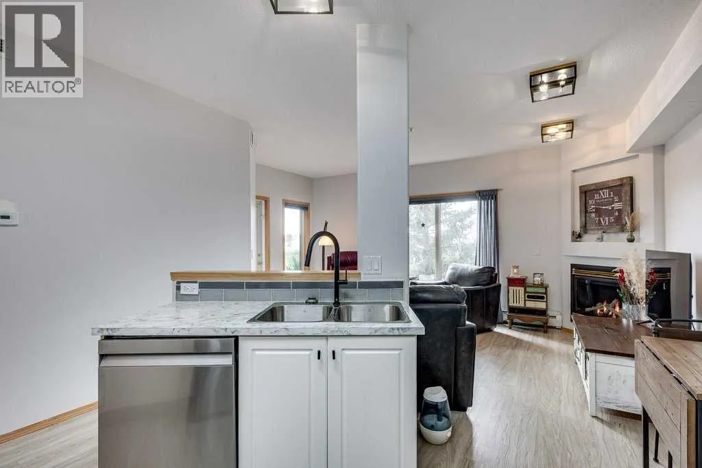Welcome to this beautiful, renovated condo in the sought after building of Sierras of Heritage Village. Walk into the nice sized entrance and onto the kitchen that has plenty of cabinets and counter space, which is open to the living room, making this a great space to entertain your friends or spend time with family. The primary bedroom is a great size and allows for a king bed with plenty of closet space. Off the living area - there is a covered private deck. There is a beautiful vinyl plank floor throughout, new counter tops, updated plumbing fixtures, appliances, all blinds and window coverings. The condo offers an abundance of large windows throughout the home that lets the natural light soar through making it a bright and sunny space. This building is designed for active adult living, it is a 55+ building and offers an abundance of amenities including a games room, community center with a full kitchen, library, workshop, fitness center, crafts room and a pool with a hot tub. There are several extras and upgrades including , A/C, natural gas to the deck, an underground titled parking stall and storage unit. No pets allowed. Underground parking is titled. Storage spot is labelled DD and the parking stall is 00. (id:27476)