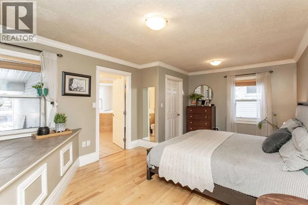 Beautifully renovated and rebuilt 2 story home situated on a gorgeous tree lined street. Exceptional curb appeal this home stands out from the rest. Offering a fenced front yard section for added privacy, huge covered front porch ideal for relaxing and savoring a morning coffee on plus decorative stone pillars give it a rustic wood feel. Follow inside to find the open and inviting floor plan. Complimented with maple hardwood floors and ceramic tile throughout for durability. Large family room with picture window allows plenty of natural light to come in plus the crown molding along the ceiling lines add to the finishing. An absolute chefs dream for a kitchen design offering full surround Silestone quartz counters, undermount sink, built in oven and microwave, loads of cabinet space and drawers, coffee bar station plus a center island with gas cook top, hanging exhaust fan and Butcher Block counter top. Huge walk in pantry with floor to ceiling shelving plus there is a trap door leading to an additional storage space below. Enjoy the crackling free standing wood fireplace just off the dining area adding ambience to a winter day. The sumptuous main level Primary bedroom is a true retreat away. Plenty of room for your King size furniture, large walk in closet plus a spa like en suite offering dual vanity, walk in double shower plus a soothing two person corner air tub. Head upstairs and you will find three large, comfortable bedrooms with ample space providing flexibility for growing families or guest accommodations. Fully developed basement offers a great amount of space for recreation and entertainment. Enjoy your favorite streaming in the private media room with trayed lighting plus your own wet bar. Games area perfect for the kids to have fun in plus the office/den is great for work space or studio area. The mechanical/laundry room is equipped with wash basin, functioning toilet, two newer hot water tanks, high efficiency furnace plus built in vac. Main plumbing stack has been replaced with back water valve plus new electrical panel in home as well. Home was also renovated to incorporate thermal break technology. Staggered stud framing greatly mitigates cold penetration, manages heat penetration and also minimizes noise transfer for added comfort. There is a spacious covered back deck which even offers a gas line for the bbq allowing you to grill year round. The beautiful mature yard comes with its own food forest label boasting raspberry, blueberry, black current bushes plus an apple tree. Firepit area great for sitting around and making memories. Large 24 x 24 heated garage ideal for vehicle storage plus there is even room for RV parking as well there is a garden shed perfect for seasonal items. Home is perfectly located just a short block to the incredible Waskasoo trail system and within walking distance to a number of schools, Kerry Wood Nature Center and for entertainment head to the Memorial Center for live performances. (id:27476)