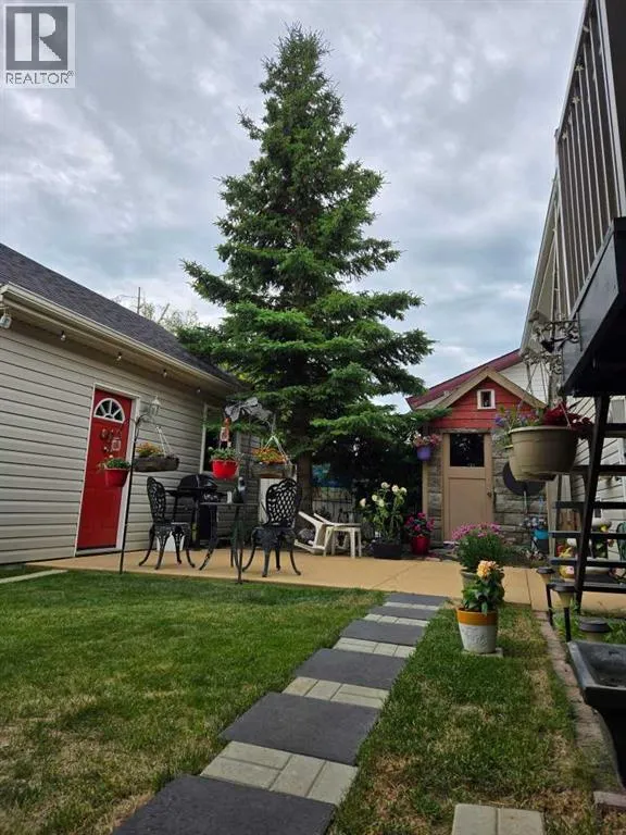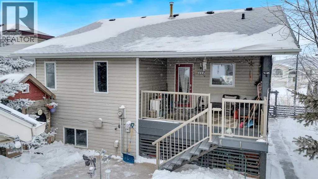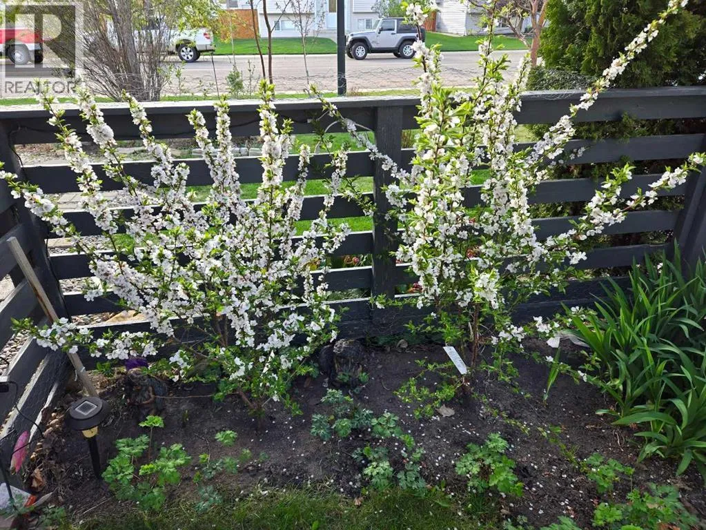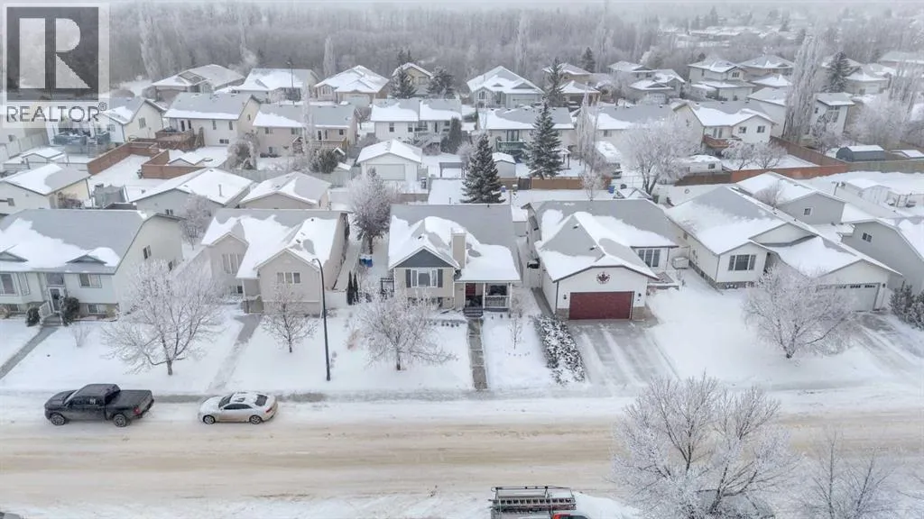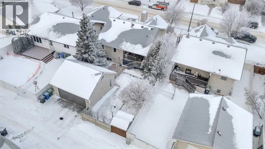 FULLY DEVELOPED 3 BEDROOM, 2 BATHROOM BI-LEVEL ~ EXTENSIVELY UPDATED MECHANICALS ~ IMMACULATELY LANDSCAPED YARD ~ DOUBLE DETACHED GARAGEThis well-maintained home is surrounded by stunning, mature landscaping featuring an abundance of flowering perennials, established trees, and vibrant shrubs that create incredible curb appeal and a private, park-like setting ~ Peace of mind comes with major updates completed within the last year, including the furnace, humidifier, hot water tank, and central air conditioning, while the garage door and kitchen appliances (fridge, stove, dishwasher, and microwave) are all under five years old ~ The front yard showcases lush gardens and mature trees, while the west-facing covered veranda offers the perfect place to relax and enjoy evening sun ~ Inside, the open concept main floor is highlighted by vaulted ceilings and rich hardwood flooring, enhancing the sense of space ~ The bright living room features a stylish fireplace with built-in shelving and a large picture window overlooking the front yard ~ The spacious dining area easily accommodates family gatherings and entertaining ~ The functional U-shaped kitchen offers ample cabinetry and counter space, with an eating bar, full tile backsplash, window over the sink, wall pantry, and garden door access to the covered deck ~ The primary bedroom comfortably fits a king-size bed, includes dual closets, and offers private access to the main four-piece bathroom through a cheater door ~ A second generously sized bedroom completes the main level ~ The fully developed basement features large above-grade windows, a spacious family room with a cozy gas-burning stove, a versatile flex area with mirrored closets, an additional bedroom, a three-piece bathroom, laundry area, and plenty of storage ~ The backyard is a true retreat with meticulously maintained gardens, mature trees, colorful flowers, garden beds, two sheds, enclosed storage under the deck, a loft in the garage, and multiple outdoor li ving spaces including a covered deck, lower concrete patio, and firepit area ~ Fully fenced with alley access to the double detached garage ~ Located close to multiple schools, parks, playgrounds, walking trails, the YMCA, shopping, and a wide range of amenities. (id:27476)