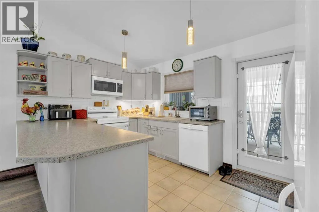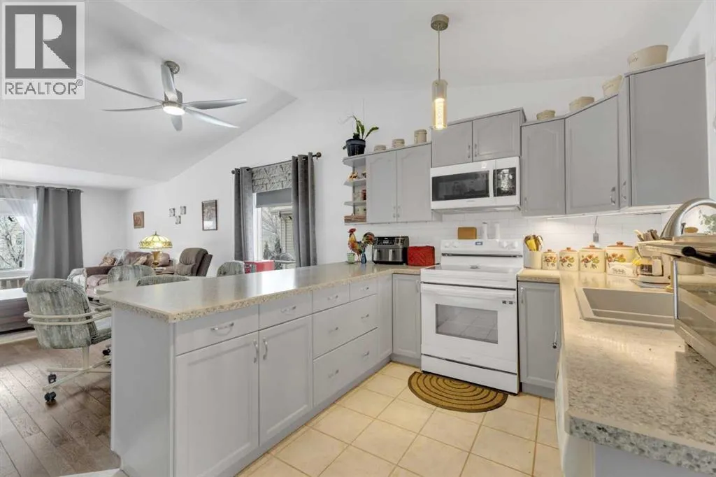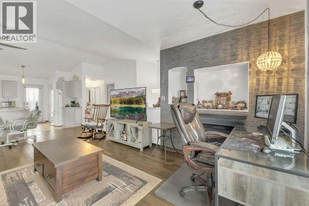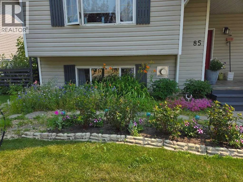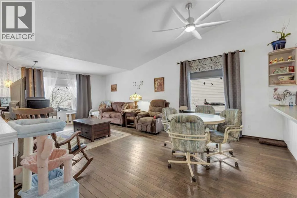 FULLY DEVELOPED 3 BEDROOM, 2 BATHROOM BI-LEVEL ~ EXTENSIVELY UPDATED MECHANICALS ~ IMMACULATELY LANDSCAPED YARD ~ DOUBLE DETACHED GARAGEThis well-maintained home is surrounded by stunning, mature landscaping featuring an abundance of flowering perennials, established trees, and vibrant shrubs that create incredible curb appeal and a private, park-like setting ~ Peace of mind comes with major updates completed within the last year, including the furnace, humidifier, hot water tank, and central air conditioning, while the garage door and kitchen appliances (fridge, stove, dishwasher, and microwave) are all under five years old ~ The front yard showcases lush gardens and mature trees, while the west-facing covered veranda offers the perfect place to relax and enjoy evening sun ~ Inside, the open concept main floor is highlighted by vaulted ceilings and rich hardwood flooring, enhancing the sense of space ~ The bright living room features a stylish fireplace with built-in shelving and a large picture window overlooking the front yard ~ The spacious dining area easily accommodates family gatherings and entertaining ~ The functional U-shaped kitchen offers ample cabinetry and counter space, with an eating bar, full tile backsplash, window over the sink, wall pantry, and garden door access to the covered deck ~ The primary bedroom comfortably fits a king-size bed, includes dual closets, and offers private access to the main four-piece bathroom through a cheater door ~ A second generously sized bedroom completes the main level ~ The fully developed basement features large above-grade windows, a spacious family room with a cozy gas-burning stove, a versatile flex area with mirrored closets, an additional bedroom, a three-piece bathroom, laundry area, and plenty of storage ~ The backyard is a true retreat with meticulously maintained gardens, mature trees, colorful flowers, garden beds, two sheds, enclosed storage under the deck, a loft in the garage, and multiple outdoor li ving spaces including a covered deck, lower concrete patio, and firepit area ~ Fully fenced with alley access to the double detached garage ~ Located close to multiple schools, parks, playgrounds, walking trails, the YMCA, shopping, and a wide range of amenities. (id:27476)