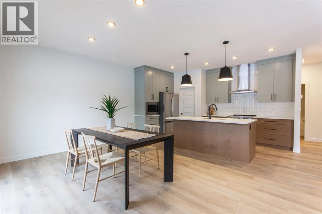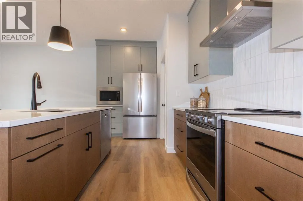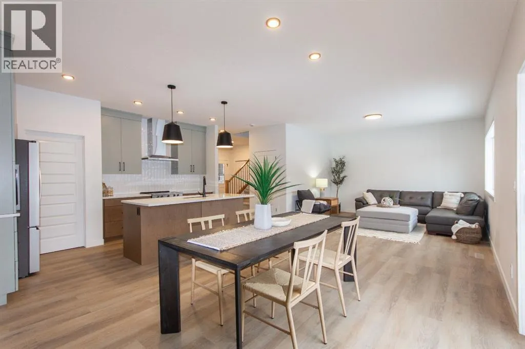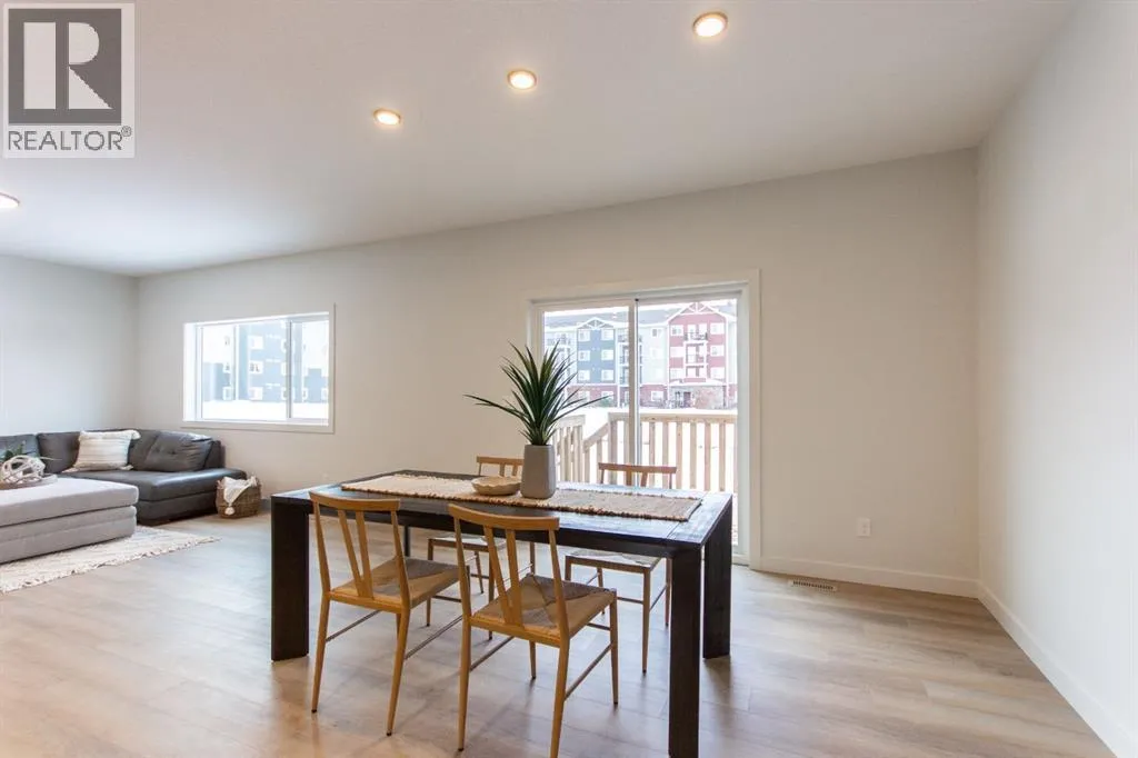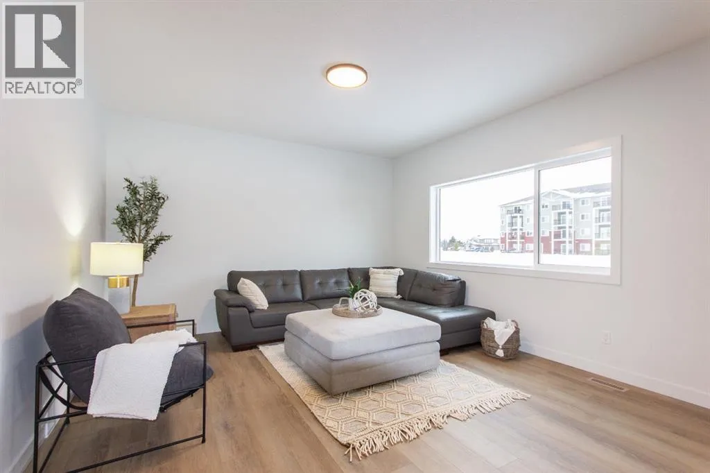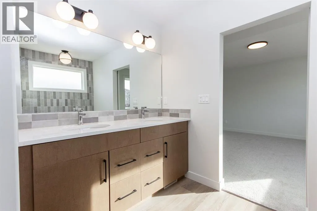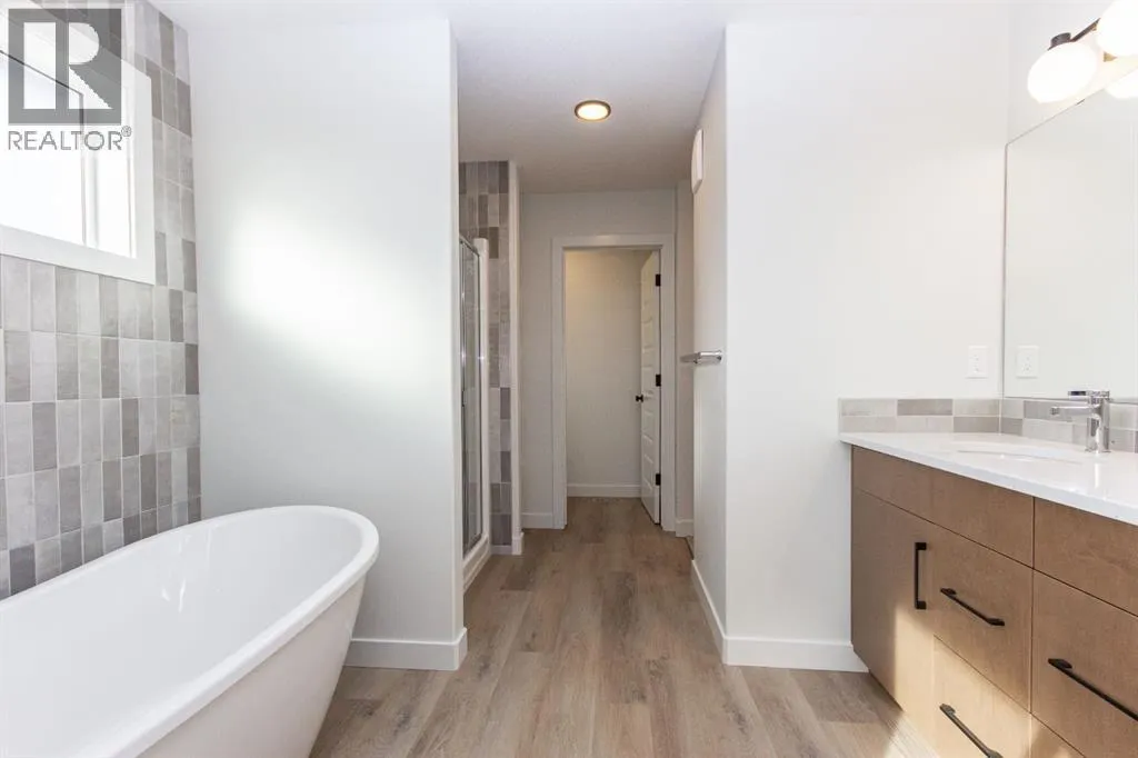Situated close to the numerous amenities of Timberlands and Clearview Market, a school, and numerous parks and playgrounds, this brand new Laebon home is the perfect place to grow your family! This best selling floor plan offers 9' ceilings on the main floor, pot lighting, large windows, and a spacious open living space that is perfect for entertaining. Luxury vinyl plank runs throughout the main floor for the best in low maintenance and durability. This spacious kitchen offers raised two tone cabinetry, quartz counter tops, stainless steel appliances, island with eating bar and under mount granite sink, and a walk in pantry, while the adjacent eating area is large enough to accommodate the whole family. The living room and dining space enjoy views over the yard, and a sliding glass patio door provides access to the rear deck. The second floor offers a spacious and bright bonus room, two generously sized kids rooms that share a 4 pce bath, and convenient upper floor laundry. The primary suite is large, and the ensuite is a great place to start and end your day, with dual sinks, a freestanding soaker tub, oversized shower, water closet, and spacious walk in closet. The attached garage offers a floor sump and is insulated, drywalled, and taped. If you need more space, the builder can complete the basement development for you, and allowances can also be provided for blinds, and a washer and dryer to make this a completely move in ready package. 1 year builder warranty and 10 year Alberta New Home Warranty are included. Immediate possession is available, and GST is already included in the purchase price. Taxes have yet to be assessed. (id:27476)