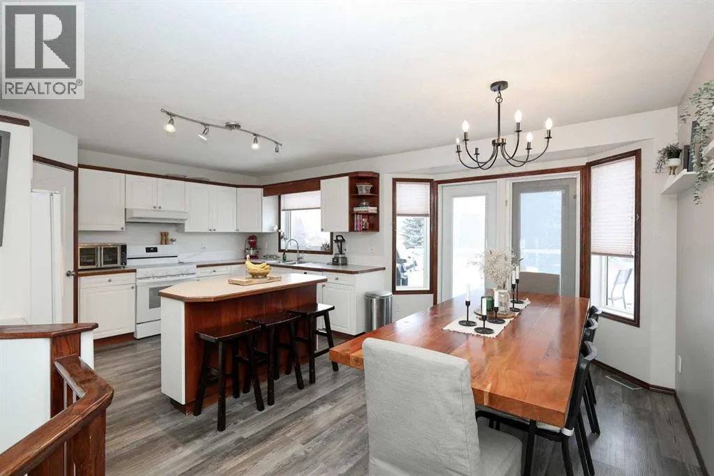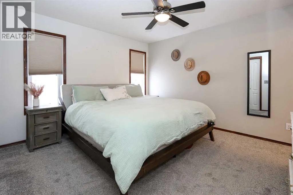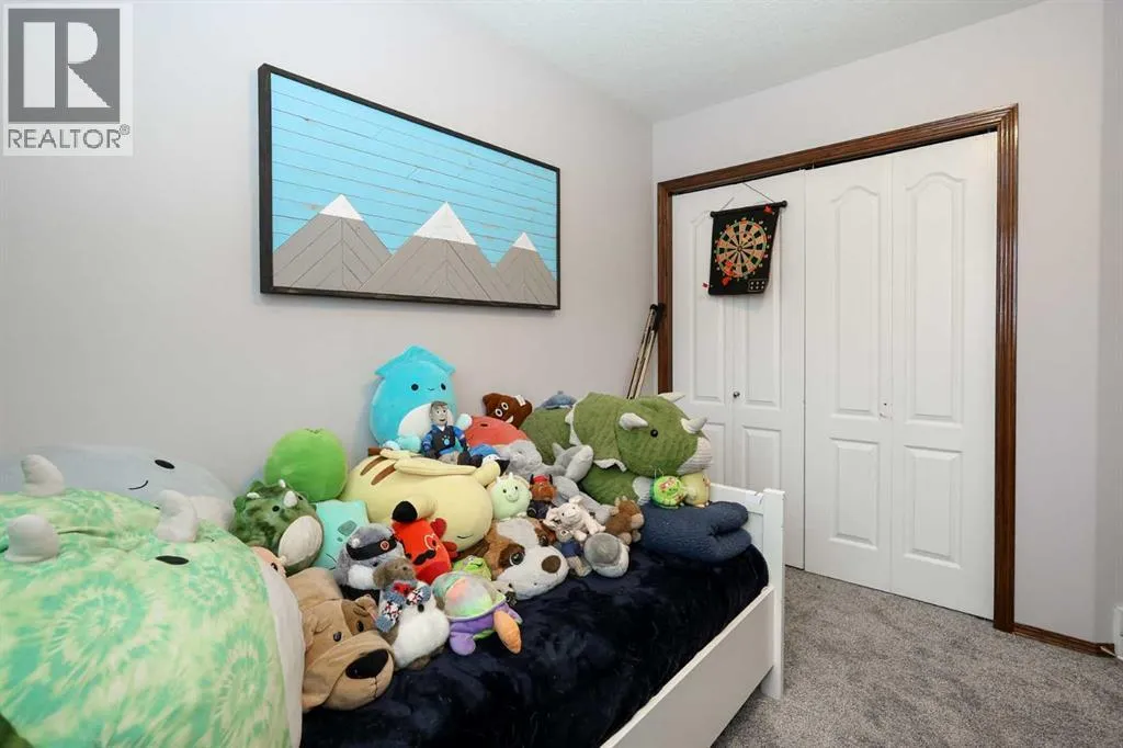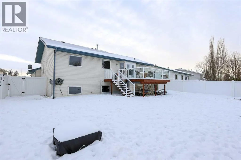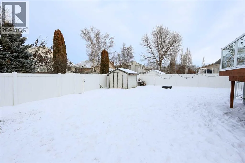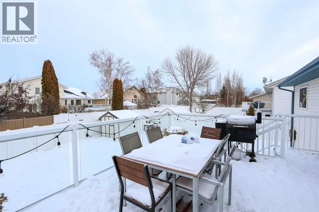 FULLY DEVELOPED MODIFIED BI-LEVEL LOCATED ACROSS FROM A GREEN SPACE & PARK ~ 24' X24' DOUBLE ATTACHED GARAGE ~ IMMEDIATE POSSESSION AVAILABLE ~ Landscaped south facing front yard overlooks the large, treed park space just across the street that features a community hall, sports courts/fields, playgrounds and walking trails ~ A sun filled foyer welcomes you and opens to a generous size living room with large windows offering natural light and soaring vaulted ceilings, creating a feeling of spaciousness ~ Open staircase leads to the upper level dining room where you can easily host large gatherings ~ The kitchen offers a functional layout, and offers tons of cabinet and counter space, island with an eating bar, built-in desk, walk in pantry and a window above the sink that overlooks the deck and backyard ~ Garden doors from the dining room lead to the large deck with glass and aluminum railings ~ The primary bedroom can easily accommodate a king size bed plus multiple pieces of furniture, has dual closets, and a 3 piece ensuite with a walk-in shower and oversized vanity ~ 2 additional main floor bedrooms are both a generous size with ample closet space ~ 4 piece main bathroom with an extra deep soaking tub ~ The fully finished basement has large above grade windows and offers tons of additional space including an L-shaped family room, 4th bedroom, large bathroom, laundry in it's own room with built in cabinets, and a huge crawl space offering endless storage ~ Central air conditioning ~ 24' x 24' double attached garage is insulated, finished with painted drywall, has two windows for natural light and a convenient man door to the front yard ~ The large backyard is landscaped, has poured concrete pad with wiring for a hot tub, a garden shed plus space for storage below the deck and is fully fenced with vinyl fencing, convenient gates on both sides of the house and one to the back lane ~ Located in desirable Rosedale Meadows, with tons of parks, green spaces, and walking trails plus easy access to shopping, schools, and all other amenities ~ Seller is offering a $2,000 credit for paint. (id:27476)
