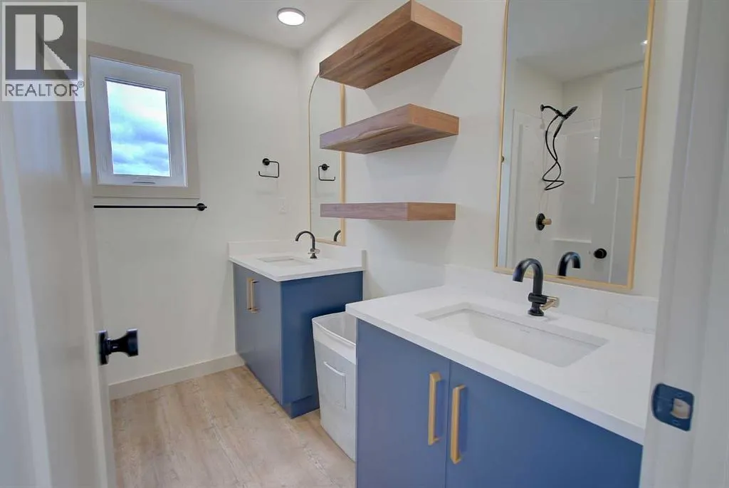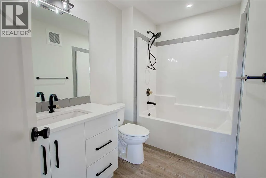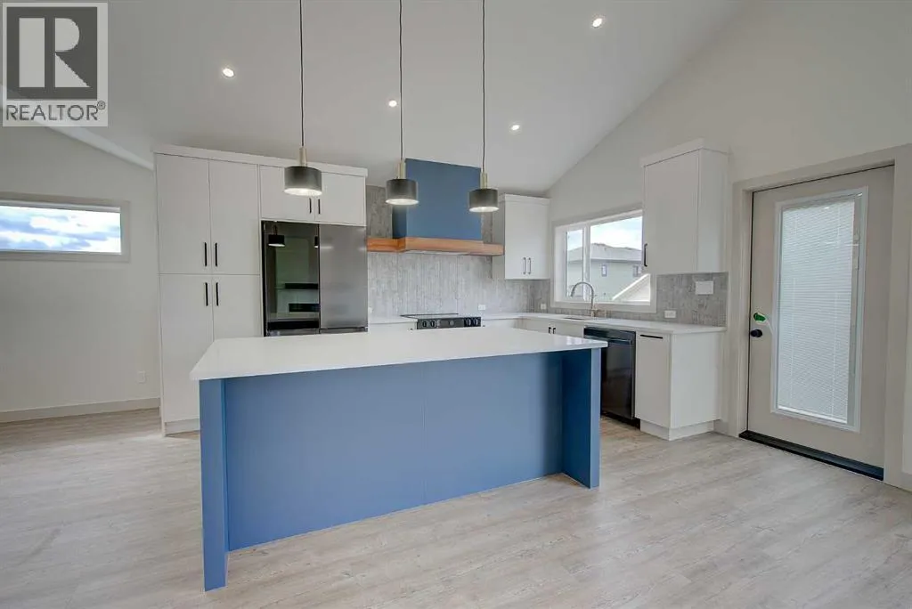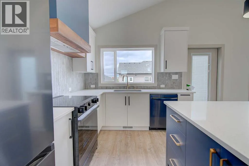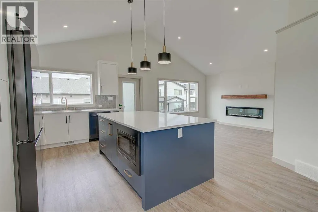 IMMEDIATE POSSESSION AVAILABLE! TRIPLE GARAGE. Brand new FULLY Developed (2141 SQ. FT. OF LIVING SPACE) 3 bedroom 3 bathroom modified bi-level with TRIPLE attached garage. This fabulous home is located in Timberlands North, close to shopping, schools, Canyon Ski Hill, Riverbend golf course with easy access to the highway and north/south Red Deer. The main floor has a beautiful open kitchen/dining room living room design. The kitchen is finished with quartz counter tops, a large Island and black stainless steel appliances. The living room has plenty of natural light and a large linear electric fireplace-flooring is luxury vinyl plank. There is also a 4 piece bathroom on the main floor and a good sized spare bedroom. The master bedroom is located up a few stairs with large walk in closet with custom shelving and a 4 piece ensuite with his/hers sinks and stand up shower. The lower level also has an abundance of natural light and has a spacious family room, finished laundry room with black stainless steel washer dryer, 4 piece bathroom and another bedroom-flooring is carpet. The lower level has roughed in under slab heat, roughed in central vac. Outside you will find a finished rear deck with aluminum railing, a gas line for barbecue, a fully sodded front yard and rear fence. This home comes with a 10 year new home warranty. (id:27476)