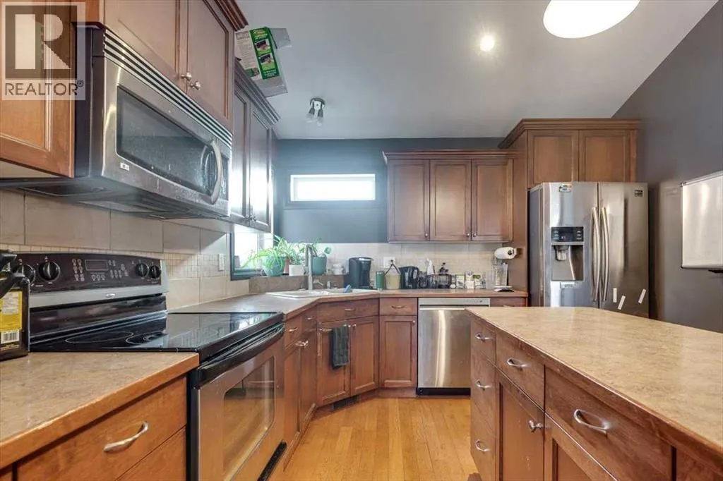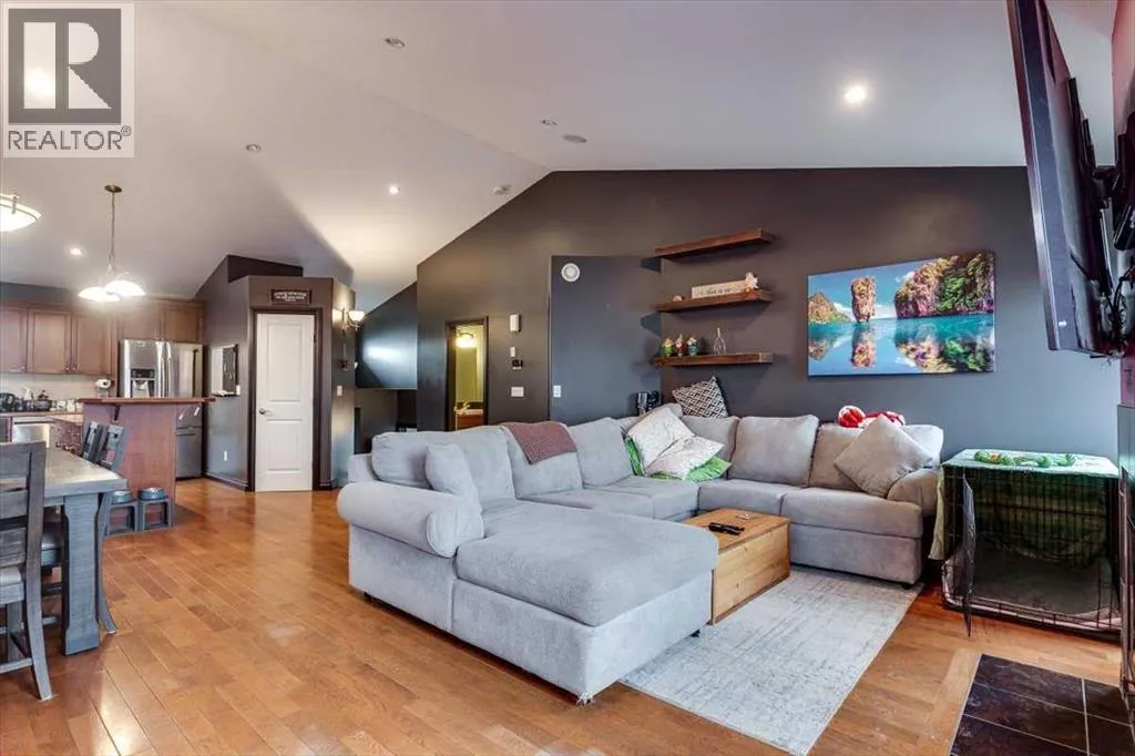 Located on a fairly quiet street in the desirable community of Johnstone Crossing in Red Deer, this well-laid-out 3-storey split offers plenty of space and flexibility for a variety of lifestyles. Upon entering, an office sits to the left, ideal for working from home or easily converted into a home gym, while the right side provides direct access to the double attached garage, perfect for keeping vehicles protected during winter months. A few steps up leads to the main living area, designed with an open floor plan that includes a spacious living room featuring two large windows, a cozy wood-burning fireplace, and a door that opens onto the back deck and yard. This level also offers a generous dining area, a kitchen with a breakfast bar for casual meals, and a convenient 2-piece powder room. The primary bedroom is located on this floor and includes its own 5-piece ensuite bathroom, creating a comfortable and private retreat. The finished basement level adds even more living space with a large recreation or games room, two additional bedrooms, and a 4-piece bathroom, along with a dedicated laundry room and utility room. Outside, the fully fenced backyard offers room to enjoy outdoor living and includes space for RV parking, making this a practical and versatile home in a great Red Deer location. (id:27476)