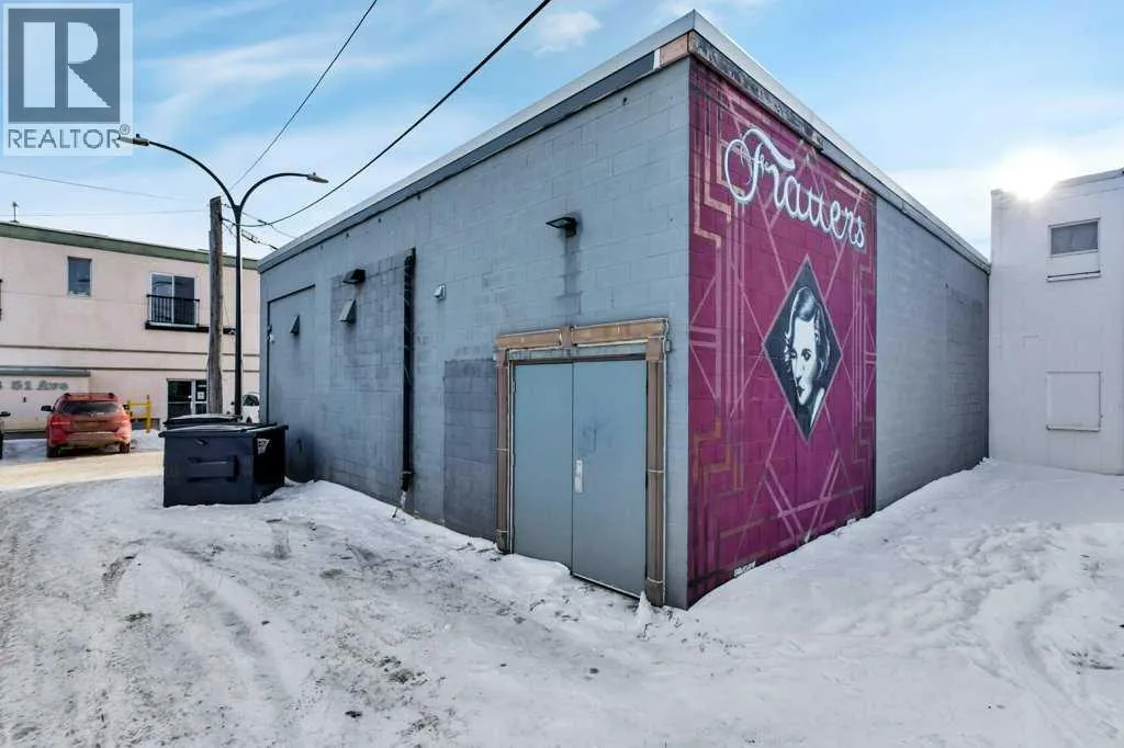 Now offering For Sale an Iconic 5450 sqft end unit building in downtown Red Deer, AB. This building has had some extensive renovations over the past few years. Upgraded electrical, plumbing, heating and sprinkler system. The building is currently set up as a boutique / cafe / night club for music venues, comedy and various entertainment. Comes equipped with a kitchen, entertainment stage, sound booth, eat up bar, tables and chairs. Employee lounging area is located on the upper level and features an outdoor patio. The main level has custom 2 tiered seating area, coat check and updated customer washrooms. Plenty of parking available with metered street parking and a large metered parking lot across the road. Also available "For Lease" under MLS# A2279511 (id:27476)