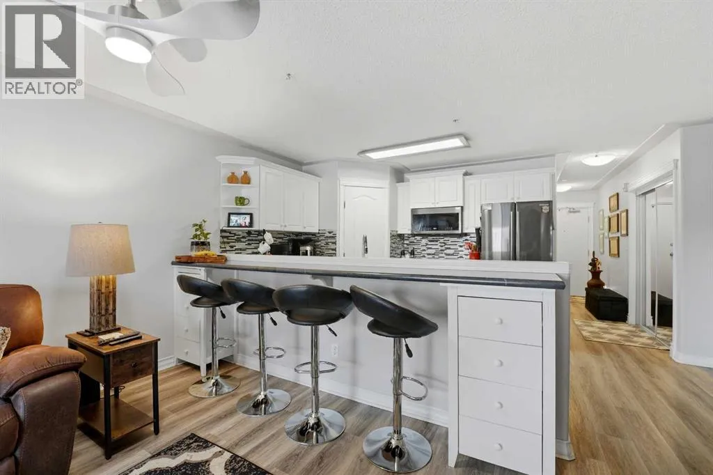 Beautifully updated CORNER- UNIT, ground-floor 2 bedroom, 2 bathroom condo, with an ELEVATOR, in the building, in a quiet adult building (45+), located in one of Red Deerâs most walkable and senior-friendly areas. Directly across from the Golden Circle and Recreation Centre with swimming, fitness classes, and social activities. Steps to medical specialists, dentists, walk-in clinic, pharmacy, and the Sorenson bus terminal with connections throughout the city and Ebus to Calgary & Edmonton. One cat allowed with board approval.This bright open-concept unit features updated appliances, vinyl plank flooring, neutral paint, updated lighting, countertops, and an eat-up breakfast bar, corner pantry in kitchen. Thoughtful upgrades include: newer air- conditioner, gas fireplace, gas hook up for BBQ on balcony, high-mount toilets and grab bars for added comfort and safety. The spacious primary bedroom offers a walk-in closet and private 3pc ensuite, plus a second bedroom and full bath for guests or office space. Good- sized laundry room which has additional space for storage. Visitor parking just outside garden sliding doors for added convenience.Assigned UNDERGROUND PARKING and ample visitor parking. Condo fees include heat, water, sewer, garbage, snow removal, exterior maintenance, parking, reserve fund, management, and common facilities. (id:27476)