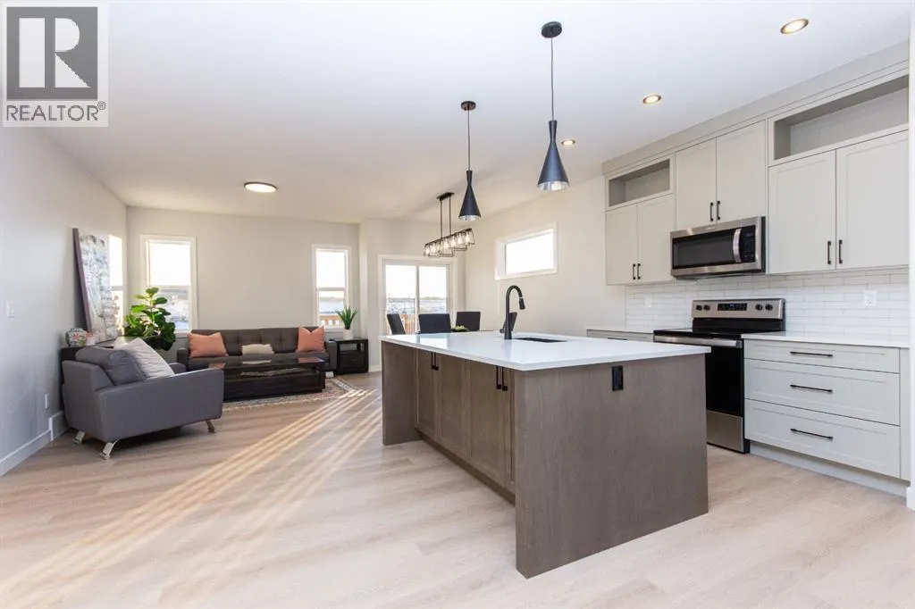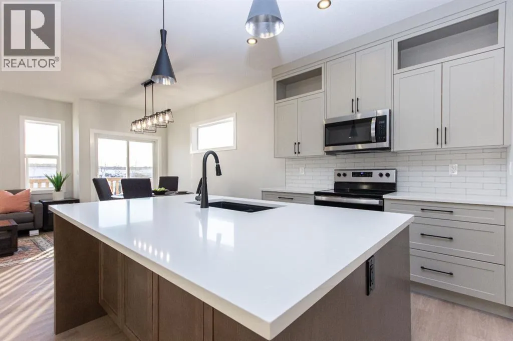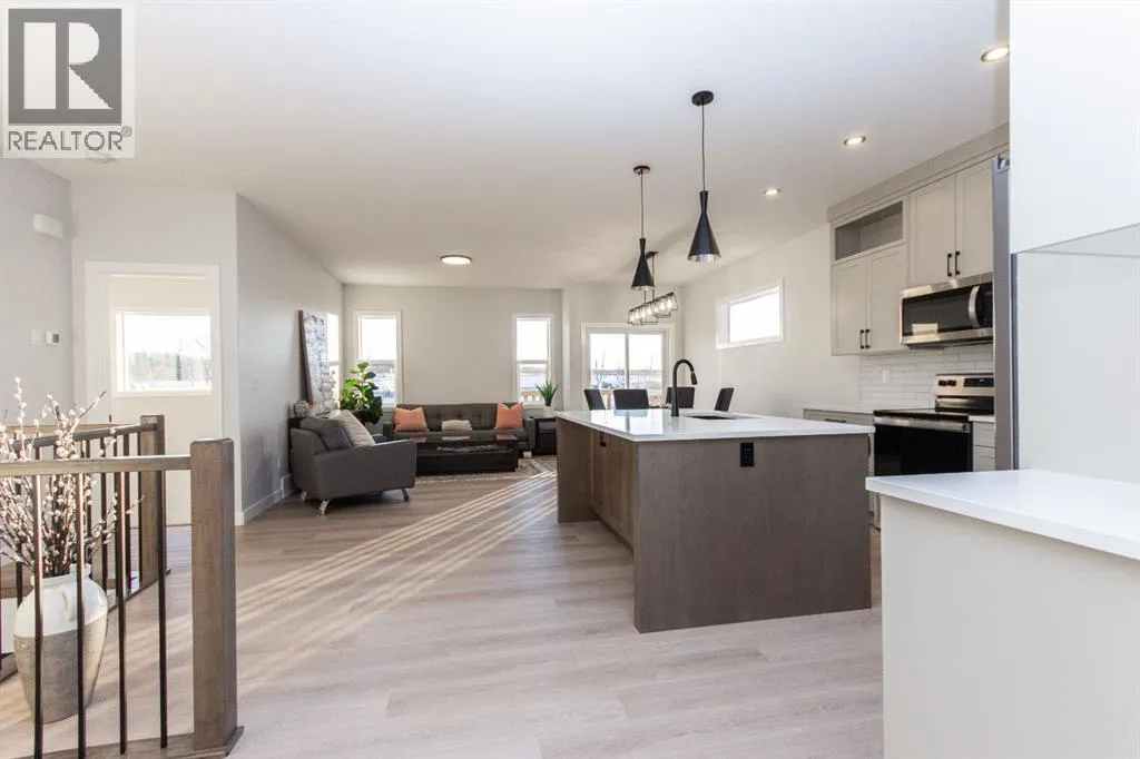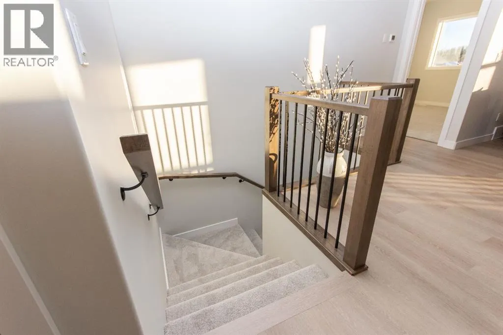 BRAND NEW BUNGALOW ON A PIE LOT! Welcome to maintenance free living in The Timbers, one of Red Deerâs most sought after communities! This stunning community offers executive single-family homes that come fully fenced and landscaped, with no restrictions on age or pets, and all of your yard work, mowing, and shovelling in the winter are taken care of for you! The Rochester is a bright and open floor plan offering 1,217 sq ft above grade, 9' ceilings, main floor laundry, and vinyl plank flooring throughout the main living space. The two tone kitchen offers raised cabinetry, stainless steel appliances, quartz countertops, a large island with under mount granite sink and bar seating, and a spacious corner pantry. Sliding patio doors off the dining area lead out to a spacious deck overlooking the yard, and the adjacent living room is a great place to relax and unwind. The primary bedroom features a large walk in closet and a beautiful spa like ensuite with a freestanding soaker tub, walk in shower, and his and hers sinks. There is also a spacious den or office space at the front of the home, and a convenient powder room down the hall. The fully finished basement offers a huge family and rec room area, two large bedrooms, a 4 pce bath, and has also been roughed-in for in-floor heat. Condo fees of $223.98 cover lawn mowing, snow shovelling, and maintenance of common areas. Allowances can be provided for blinds, and a washer and dryer through the builders suppliers to make this a completely move-in ready package. GST is already included in the purchase price, and 1 year builder warranty and 10 year Alberta New Home Warranty are included. Taxes have yet to be assessed. This home has an estimated completion date of February 2026. (id:27476)