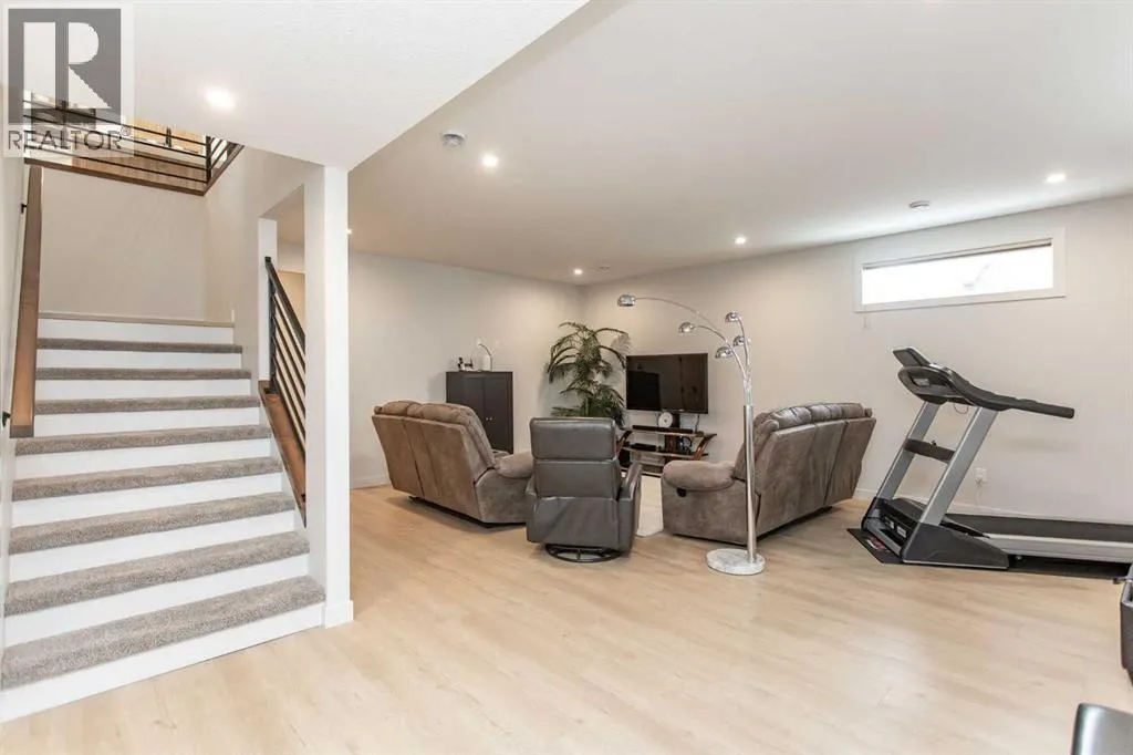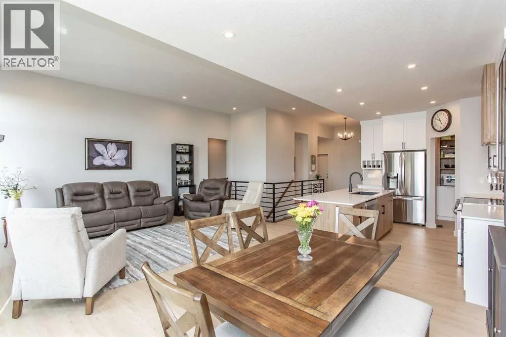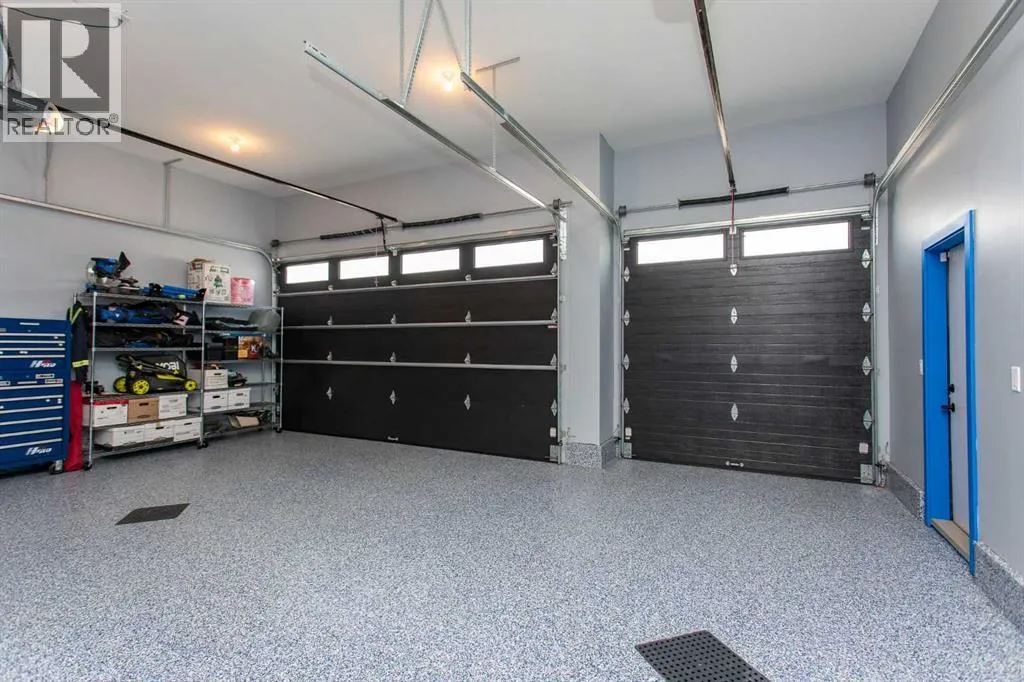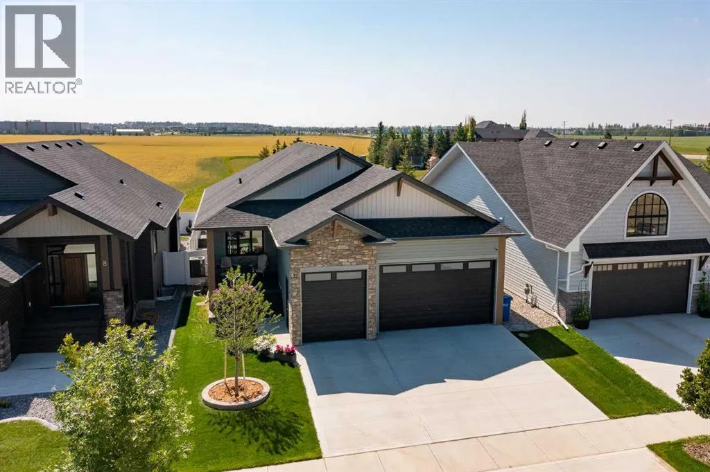 Explore this exquisite and spacious executive bungalow, featuring a three-car garage crafted by True-Line Homes. This residence showcases a unique layout that the builder has designed for the first time. Situated in the picturesque Evergreen neighborhood, this beautiful home presents an expansive open floor plan with soaring 11-foot ceilings and an abundance of south-facing windows, flooding the interior with natural light.As you step through the front door into the generous foyer, you'll immediately notice its convenient dual access with the entrance to the garage. This intelligently designed space includes a large foyer, a spacious closet, and custom shelving.The modern chef's kitchen is a culinary delight, boasting high-end appliances, ample cabinet and countertop space, and an impressive 8.5-foot island. Luxurious finishes include Quartz countertops, a Franke peak undermount granite double bowl sink, and a walk-in pantry with custom shelving for abundant storage. Attention to detail shines through with a custom wood range hood stained to match the island and stylish glass cabinet shelving.On the main floor, there's a versatile den currently utilized as an office, which could easily serve as a fourth bedroom. The spacious primary suite features a five-piece ensuite and a generously sized custom walk-in closet, expertly designed by Canadian Closet. An additional highlight is the expansive laundry room equipped with custom cabinetry and countertops, along with a pass-through window from the walk-in closet. This laundry space houses the LG 6.0 cu. ft. mega capacity Wi-Fi enabled front-load washer with the LG Sidekick mini washer in the pedestal along with a matching 9.0 cu. ft. dryer. Lastly, a two-piece powder room completes the main level.Descend the extra-wide stairs to the cozy family room, equipped with in-floor heating, ideal for movie nights or family game sessions. This level also includes two spacious bedrooms and a full four-piece bathroom, all enjoying the comfort of in-floor heating. The large storage area features durable painted floors, offering potential for an additional bedroom.This home boasts numerous upgrades, including a low-maintenance front verandah and a 10' x 18' back deck, central air conditioning, a water softener system, SunStop Low E argon-filled windows, and a fully finished heated triple garage with an epoxy-coated floor and two dry sumps. Custom Hunter Douglas blinds are fitted throughout, with motorized options in the living room, office, and primary bedroom.The professionally landscaped front and back yards feature stone elements and raised flower beds, enhancing the home's curb appeal. The Evergreen neighborhood offers extensive multi-use trails connecting to Red Deerâs extensive trail system, as well as two ponds with unique bridges and large playground and park facilities. Come and discover the elegance and comfort this remarkable property has to offer! (id:27476)