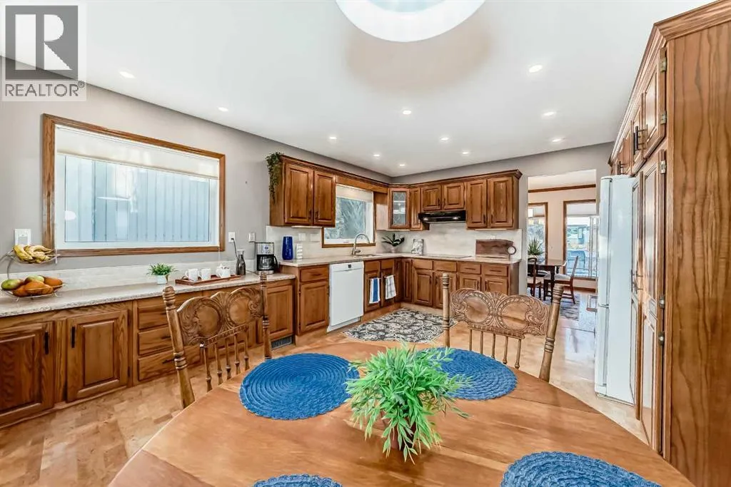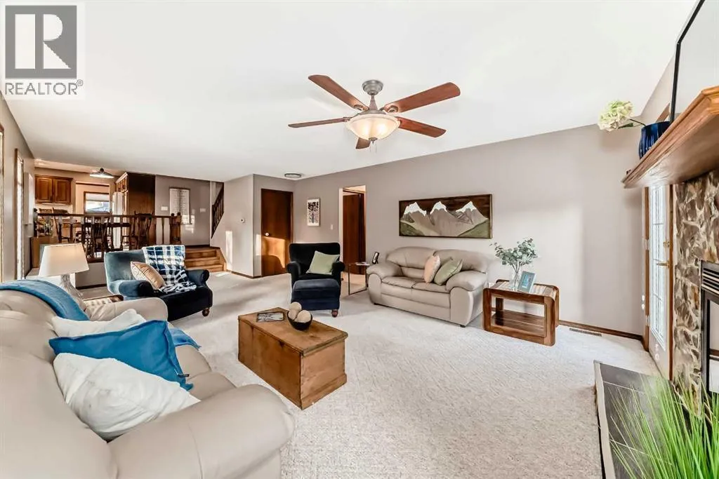 Welcome to 128 Dickenson Crescent. This beautifully cared for home in the mature and desirable community of Deer Park Village showcases true pride of ownership. The spacious layout offers two large living rooms, each with its own fireplace (wood and gas), creating warm and inviting spaces for everyday living and entertaining. The front living room features gleaming on site finished hardwood floors and flows into a bright formal dining area surrounded by windows. The functional kitchen includes upgraded cabinet fronts, Corian countertops, marble backsplash, upgraded appliances, and space for a breakfast nook overlooking the sunken family room. Upstairs offers 3 bedrooms, including a spacious primary suite with walk in closet and renovated 3 piece ensuite with in floor heating (renovated 2015). Two additional bedrooms, a large 4-piece bathroom, and ample linen storage complete the level.Off the sunken living room is a versatile main floor office with built-in bookshelf and closet â easily used as another bedroom. A nearby 3-piece bathroom and laundry for add convenience.The fully developed basement provides a third living area, large 5th bedroom with walk in closet, and exceptional storage space.Enjoy the landscaped south facing backyard and west facing deck for plenty of sunshine. The 20x26 heated garage fits two vehicles comfortably with extra storage. Major updates include most windows (2016â2019), furnace (2010), hot water tank (2016), shingles (2010), siding (2018), light switched and lighting (2023). (id:27476)