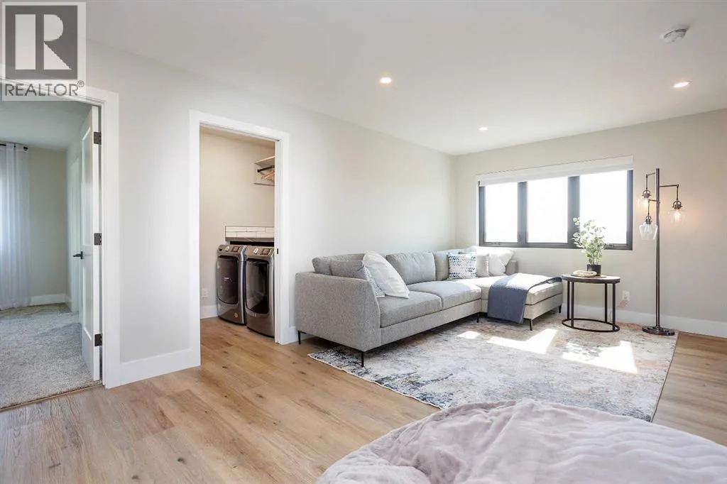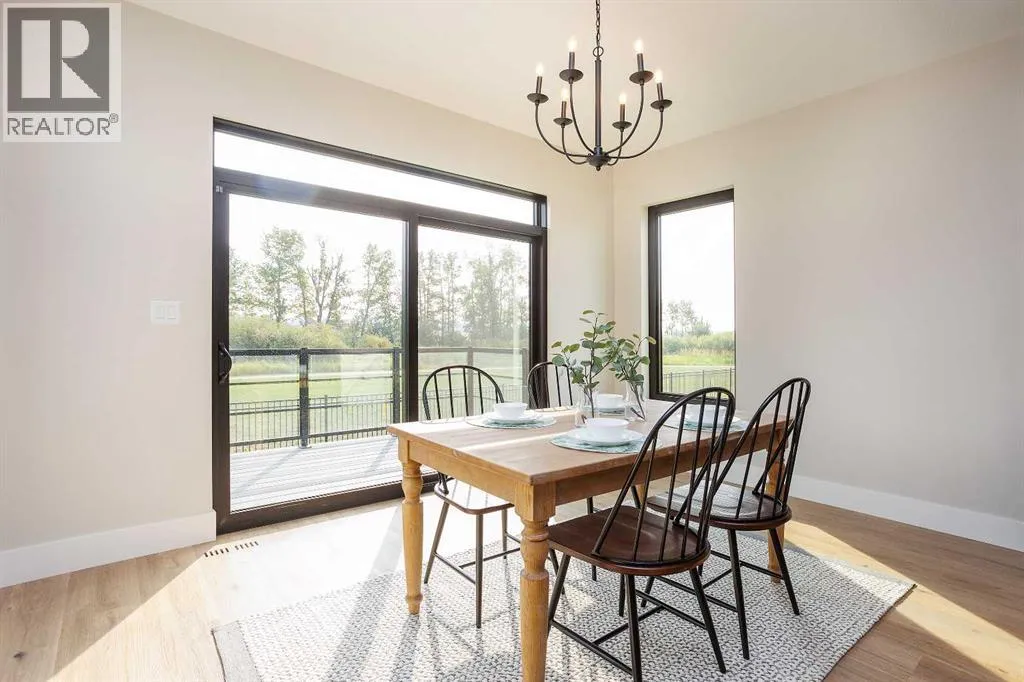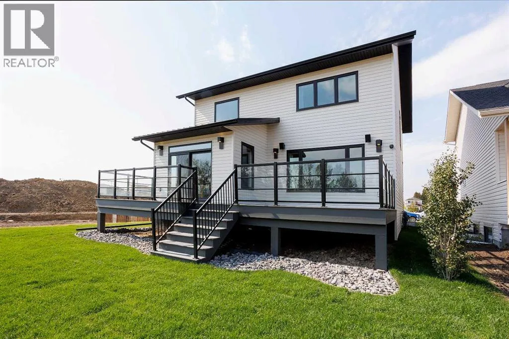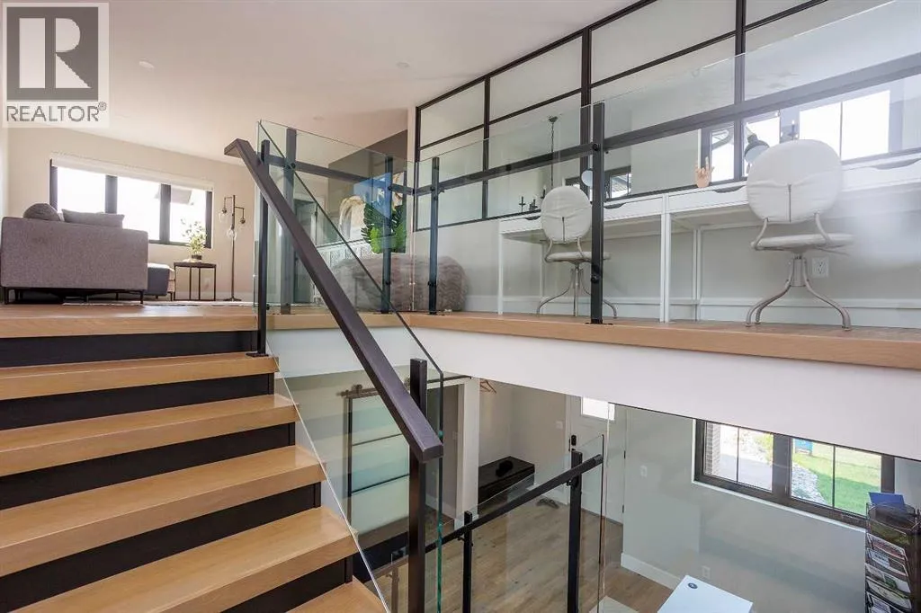 A brand new fully developed Larkaun Homes show home in desirable Evergreen. The curb appeal is accented by the aggregate front driveway & steps, the metal roof accents & vertical board & baton features. The front entryway greets you with towering 18' ceilings in the foyer & main floor office that overlooks the custom staircase with solid wood treads, two tone risers & custom glass guard rails. Ceiling height, soft close kitchen cabinets are accented by a massive island with an eating bar, full chevron tile backsplash, a Franke peak undermount granite bowl sink, a built in fridge/freezer combo, a gas stove with a pot filler, wine storage, a pantry style cabinet with pullouts, a custom wood hood fan & quartz countertops. Walk through the butler's pantry with a prep sink & beverage centre to the back entryway that has mirrored sliding closet doors, a bench seat & built in cabinetry for storage. The powder room has decorative wallpaper, a furniture style vanity accented by a hammered stainless steel under mount sink. The eating area has patio doors to the 14'x8' + 16'x14' composite rear deck. Relax in the living room next to the british fires forest 48" electric fireplace featuring matte black quartz slab surround. Follow the stunning custom staircase up to the bonus room that adjoins to the desk stations with a custom welded wall with glass inserts that overlook the main floor. The king sized primary bedroom has a large window that overlooks the back path & trees, a fan, reading lights on each side of the bed & an oversized walk in custom closet. The gorgeous 5 piece ensuite features heated tiled floors, a 60"x36" curbless walk in tile shower with a built in storage niche, dual heads including a rain head & a sliding hand shower, a freestanding tub below the picture window, double sinks, a makeup counter with an LED mirror, and a water closet with a window. There are two additional bedrooms, a 4 piece bathroom & a laundry room (smart drain under the washing machine) wi th builtins including baskets & a folding counter. The fully finished basement has operational in floor heat with a family room featuring a sports bar (includes a built-in ice maker & beverage centre), a 4th bedroom, an exercise room with full glass wall and a 4 pc bathroom. The fully landscaped yard backs onto a walking path & treed area. The oversized garage has premium flake epoxy floors, a gas heater, floor drains, a smart car plug in & a rear garage shed with backyard access through the 7'x7' overhead door. Features of the home include: Central air conditioning, basement & ensuite has in floor heat, window blinds, luxury vinyl plank flooring, high quality carpet with an 8lb underlay, solar panel ready, Lutron smart home system connects to the power blinds, pot lights and Sonos system, video doorbell and security cameras, Sonos speaker in the kitchen, living room and sun deck, central vac with floor sweeps & more! Evergreen is an HOA and the fees are $100/year at this time. (id:27476)
