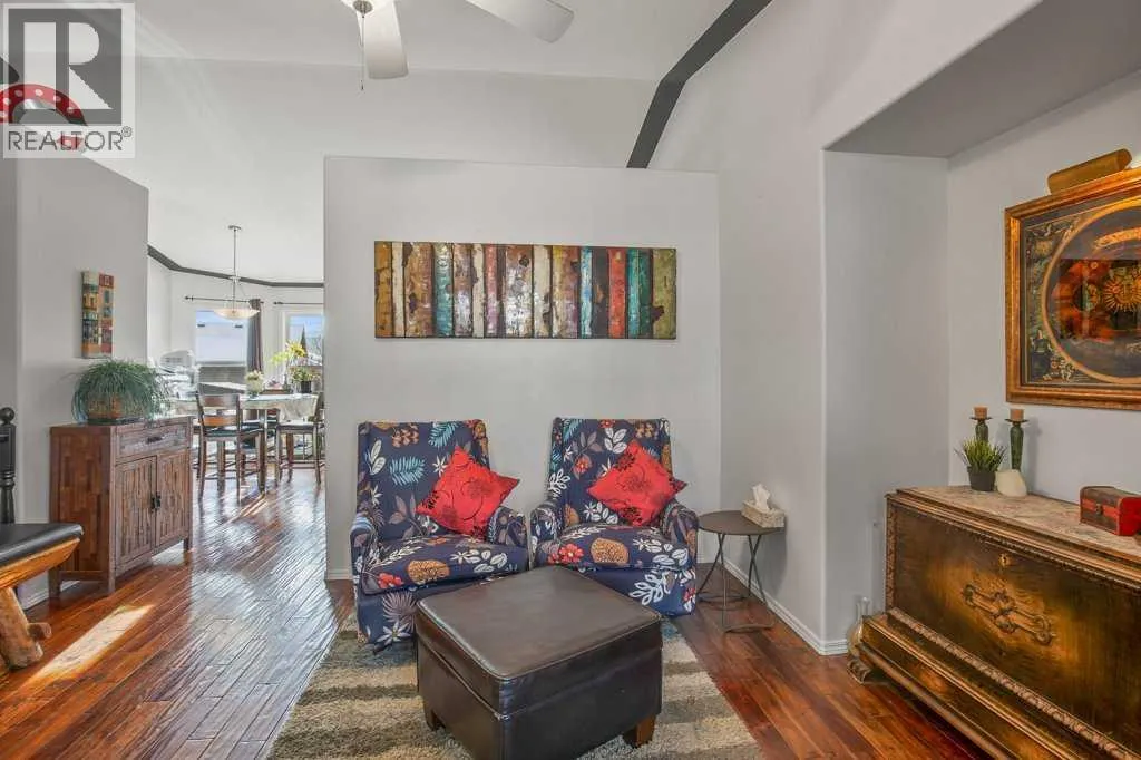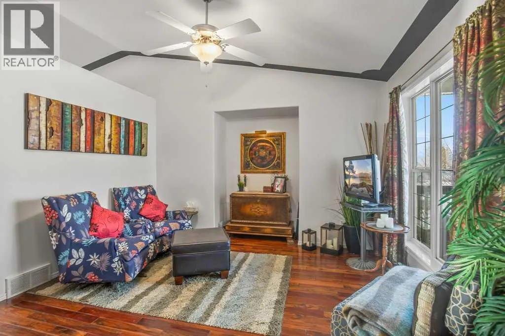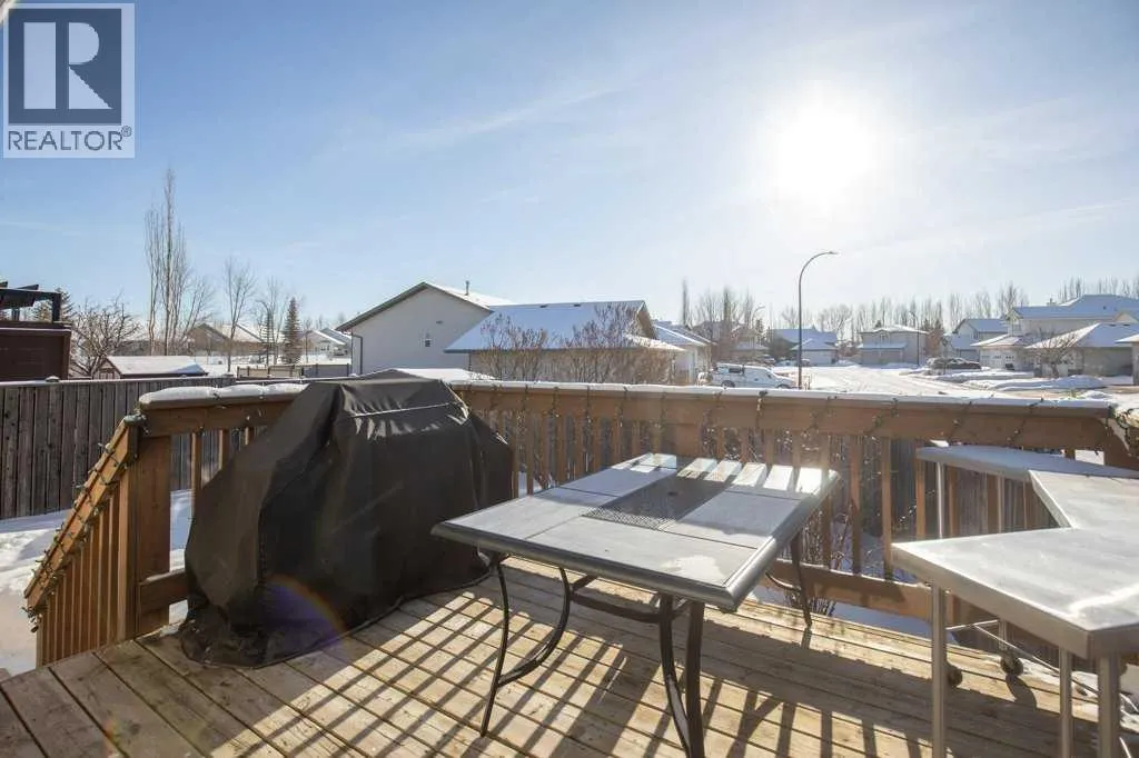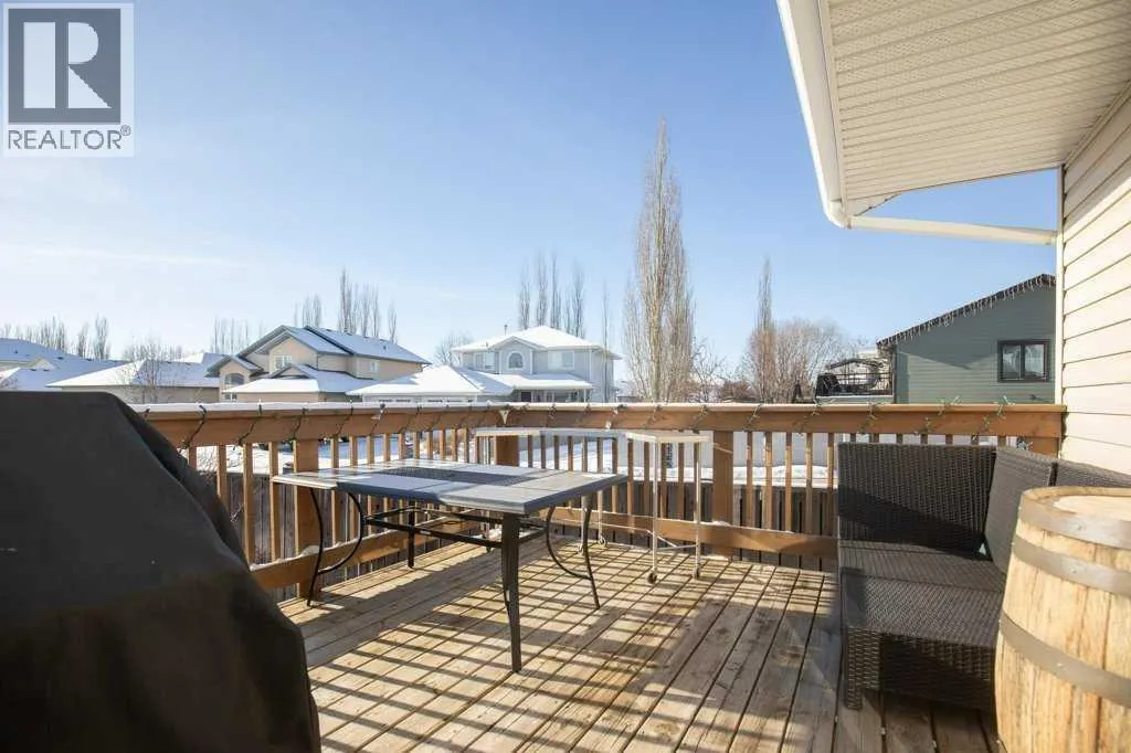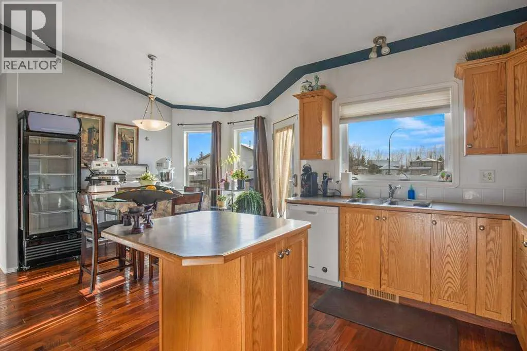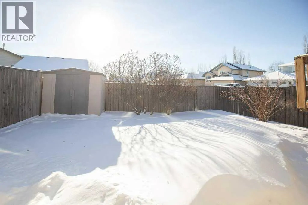 Welcome to this fully finished bungalow tucked away in the highly desirable Rosedale Meadows neighbourhoodâa mature, family-friendly community thatâs perfect for growing families. This solid home delivers over 2,065 square feet of developed living space with a practical, functional floor plan designed for real everyday life. On the main floor youâll find convenient main-floor laundry, a bright and spacious living room featuring beautiful Imperial Walnut hardwood flooring and vaulted ceilings, plus a generous kitchen with tons of counter space wrapped around a centre islandâmaking meal prep and family gatherings easy and enjoyable. Upstairs there are two large bedrooms, including the master suite with its own private 4-piece ensuite, and both bathrooms boast luxurious granite heated floors for that extra comfort. Downstairs opens to a massive family room anchored by a cozy gas fireplace with fanâideal for keeping everyone warm through those long Alberta wintersâalong with two more good-sized Jack & Jill bedrooms that share a convenient 4-piece bathroom, perfect for kids, guests, or teens who want their own space. Thereâs also plenty of open room for movie nights, watching the game, or even fitting a standard-sized pool table. Recent updates include a brand-new furnace and hot water tank installed in 2024, 30-year architectural shingles (2012), rough-in for central vacuum, and a handy tool/storage shed out back. Step outside to the rear deckâyour go-to spot for summer barbecues, family get-togethers, or just relaxing while you overlook the beautiful, mature yard thatâs fully fenced for privacy and peace of mind. Extra storage is sorted with the included toolshed for the mower and yard gear, and a 22Ã20â double attached garage that handles vehicles, toys, and more. This is the kind of move-in-ready family home in a great neighbourhood that checks all the boxesâcome see for yourself what Rosedale Meadows and this bungalow have to offer! (id:27476)
