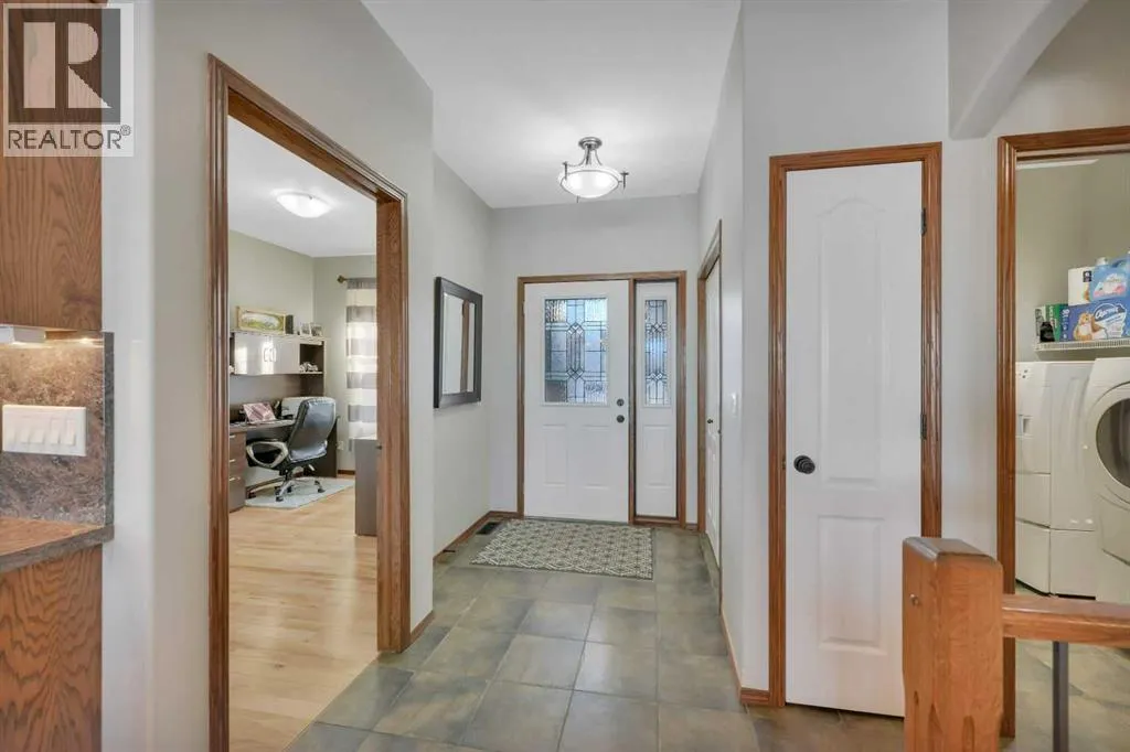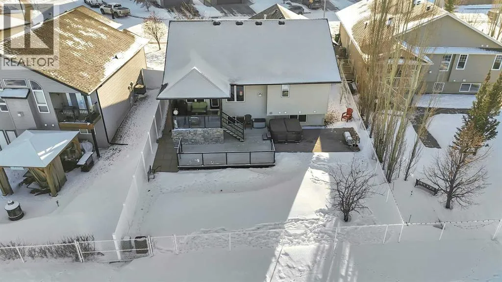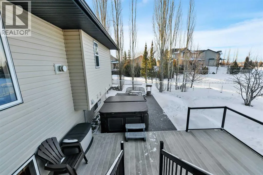 Backing onto a GREEN SPACE, this open concept bungalow is fully finished with FIVE bedrooms and a heated TRIPLE ATTACHED GARAGE!! The open concept main level is bright and inviting, there are hardwood floors throughout the main level, a large bank of windows allow natural light to fill the space, and there is a cozy gas fireplace in the living room. The kitchen includes a large center island, granite counter tops, a corner pantry and stainless appliances. The dining area is nicely connected to the kitchen and living room and offers ample room for family gatherings. There is a front bedroom/office and 2 additional bedrooms on the main level including the large main bedroom with it's own ensuite! Main floor laundry and a full bath complete the top level and once downstairs the fully finished basement comes with infloor heat, 2 large bedrooms, and big rec room and separate flex room - perfect for a craft room, media room, or home gym!! The rear yard is fully fenced and landscaped with a beautiful deck and the hot tub stays!! The large front driveway offers plenty of room to park your RV, there are underground sprinklers, floor drains in the garage and 8' garage doors. (id:27476)
