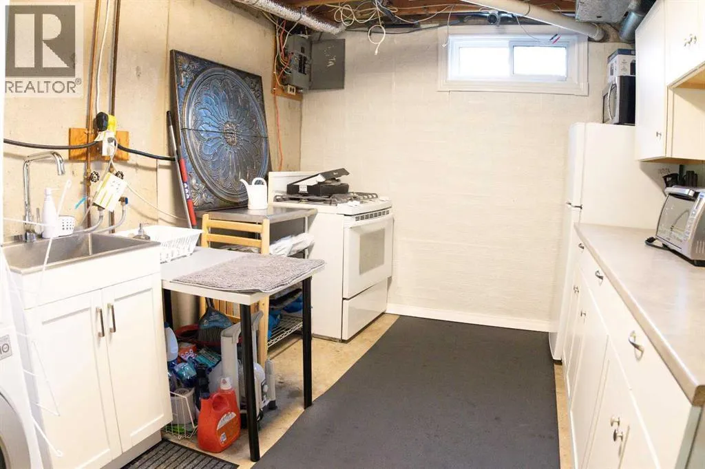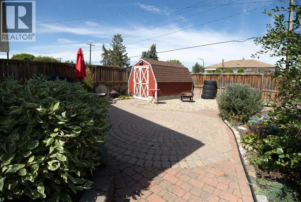 Excellent Investment or Multi-Use Opportunity in Westpark! This upgraded 4-bedroom, 2-bath duplex is perfectly located just a short walk to Red Deer Polytechnicâideal for students. Featuring an illegal basement suite, this home offers great flexibility. Inside, enjoy modern vinyl plank flooring, new 3 year old windows and doors and new trim around them, newer lighting throughout, a high-efficiency furnace, 8 year old hotwater tank and updated shingles. The main floor showcases a spacious kitchen with plenty of cabinetry, an elegant living room with hardwood floors. Bathroom features a new tub and surround. Downstairs, the basement is highlighted by a large family room with a gas fireplace, a 4th bedroom, a 3-piece bath, and a large kitchen/laundry area with built-in cabinets. Side entrance allows easy and private access to basement. There is two stackable washer and dryers located upstairs and in the basement. Step outside to an unbelievable landscaped yard, including newer fencing, interlocking brick patios and walkways, raised flower beds, trees, shrubs, and a firepit area. 8x12 shed with power and lighting. Gas line for your BBQ grill. This Westpark gem is move-in ready . (id:27476)