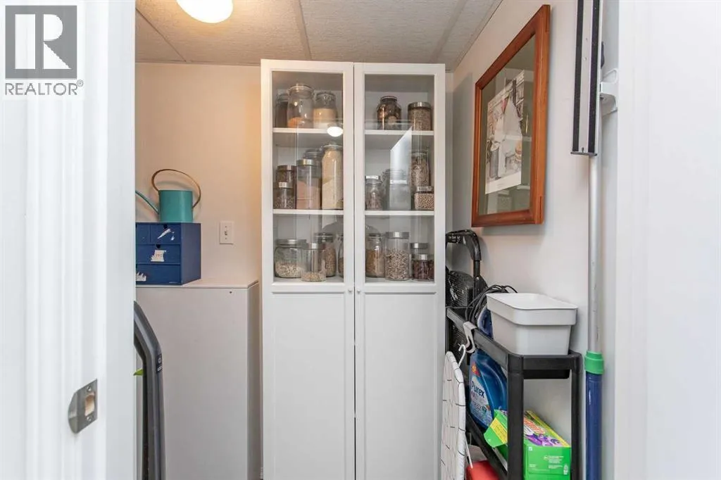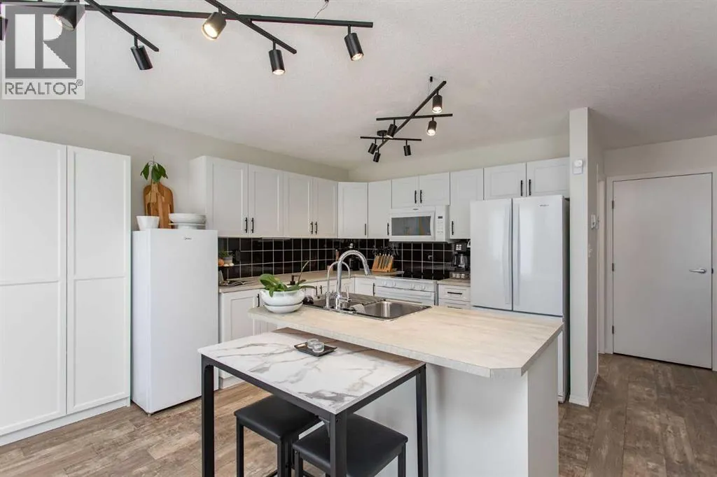 An elevated take on a condo lifestyle this exceptional ground level unit show cases a designer living straight from the pages of a magazine. Sparkling with cleanliness and filled with natural light this unique open concept unit is tailored to fit all of your needs. A beautiful chef-style kitchen is enhanced with top of the line Whirl Pool appliances ( still under warranty ), an abundance of cabinet space, large center island with 6 stage Reverse Osmosis System plus plenty of counter space making meal prep a delight. A soothing living space to enjoy is detailed with display cabinets, electric fire place and custom draperies. The intimate dining area also offers patio doors out to your own private West facing patio backing onto a green space where wild life can be seen along with the gorgeous sunsets. A generous size Primary bedroom offers room for Queen size furniture along with a custom illuminated wardrobe closet which is both luxurious and practical. A spa like main bath with a large walk in shower with dual sprayer heads, bidet, large vanity space plus linen storage. Added convenience of in suite laundry with large capacity Electrolux washer and dryer (still under warranty as well). The additional features of this unit include smart home integration, alarm system, motion sense lighting, storage room, brand new triple pane windows and humidity control. Low monthly condo fees which includes the exterior maintenance frees up your time to enjoy other lifestyle activities plus all your utilities excluding power for easy monthly budgeting. One designated parking stall is right outside your door plus plenty of visitor parking is available. The condo also offers a community bike shed plus pets are allowed with restrictions. Seller is also offering to sell the furnishings with the property ideal for someone looking for an investment or someone starting out. (id:27476)