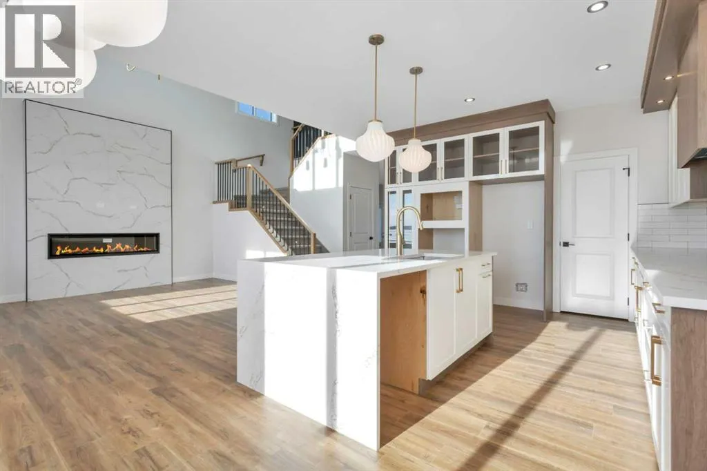 Be the first to own this large family home in the beautiful family oriented Evergreen neighbourhood! With over 2500 sq ft of living space, this 2 storey home offers a large TRIPLE ATTACHED front garage and an excellent floor plan! The modern and open concept main level includes large triple glazed windows at the rear to take advantage of the south facing backyard, soaring ceilings in the living room and a stunning feature fireplace. The kitchen is elegantly designed to satisfy the family chef, with quartz counter tops, a large center island, ample counter built ins and cabinet space and an amazing butler/spice kitchen! Quality vinyl flooring throughout the main level is clean and durable, there is a full bath on the main and a separate main floor bedroom or office! The upper level has a loft bonus room, full bath, separate laundry room, and three more bedrooms including the spacious main bedroom with it's own gorgeous 5pce ensuite and walk-in closet. The undeveloped basement provides for ample future development potential and a separate side entrance could be perfect for guests and family. Evergreen is a well designed community featuring walking and bike paths all maintained by an annual $136.50 HOA fee - close to schools, shopping and recreation! (id:27476)