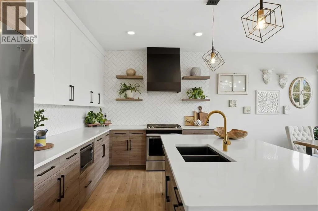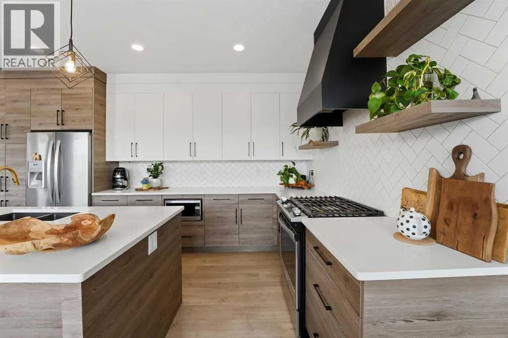 Set on a quiet, tree-lined street in a community known for character-rich properties, this beautifully finished two-storey offers a home that feels elevated yet comfortable for everyday living. The kitchen is a true showpiece featuring quartz countertops, two-toned cabinetry, a wall pantry, and striking herringbone tile backsplash. The spacious dining area with its wall of windows provides access to the composite deck and landscaped yard. Entertaining is effortless in the stylish living room thatâs anchored by a floor-to-ceiling tiled fireplace. Upstairs, the layout is equally impressive with three bedrooms and a bonus room the leads out to a covered, south-facing deck ~ a perfect place to unwind and enjoy! The primary suite is an upscale retreat with a walk-in closet and a beautifully finished ensuite with dual sinks, a custom tiled shower, and a deep soaker tub. The fully developed basement leaves nothing to do but move in and enjoy the extended living space thatâs perfect for guests or teens. Additional highlights include central air conditioning, upgraded lighting, ample storage, basement in-floor heat, and low-maintenance outdoor living. Evergreen is an edge-of-the-City community that offers walking paths, parks, and natural surroundings with urban amenities only minutes away. (id:27476)